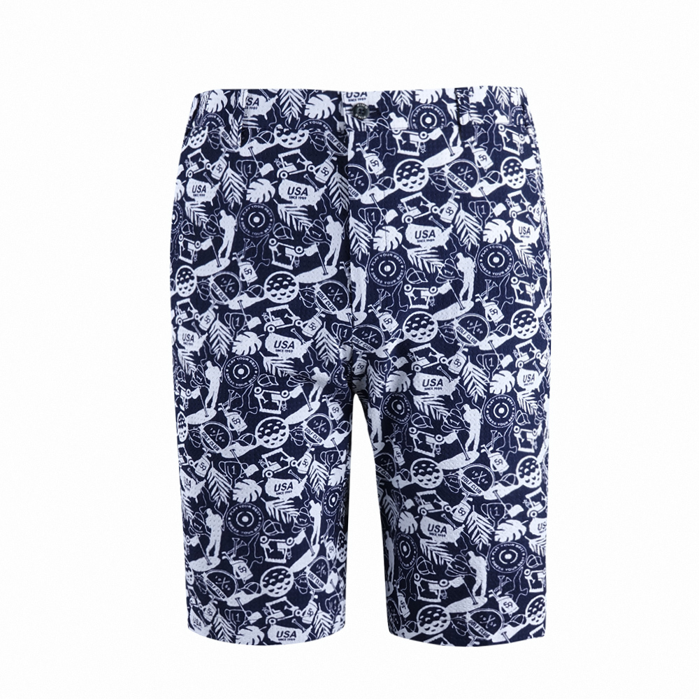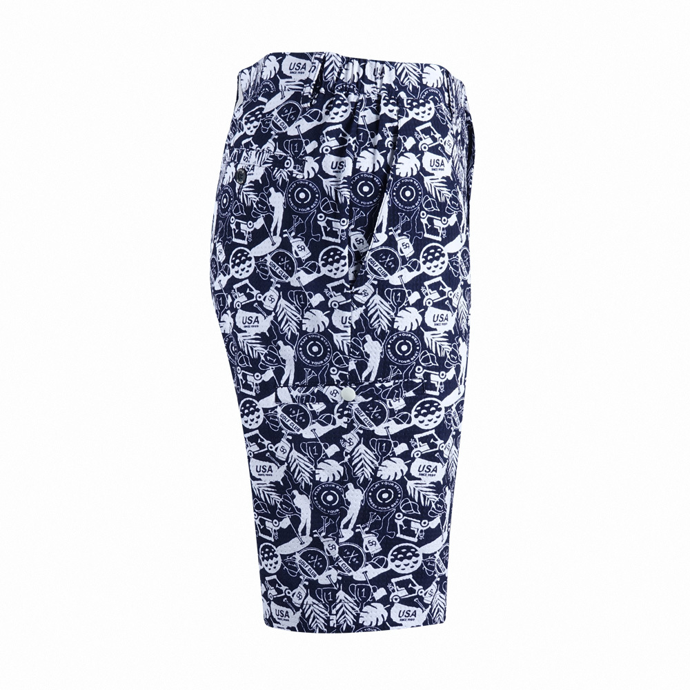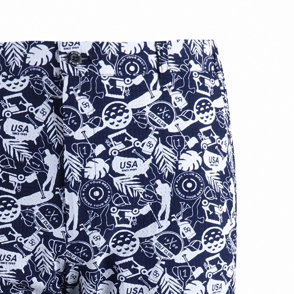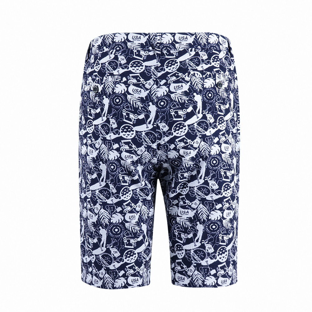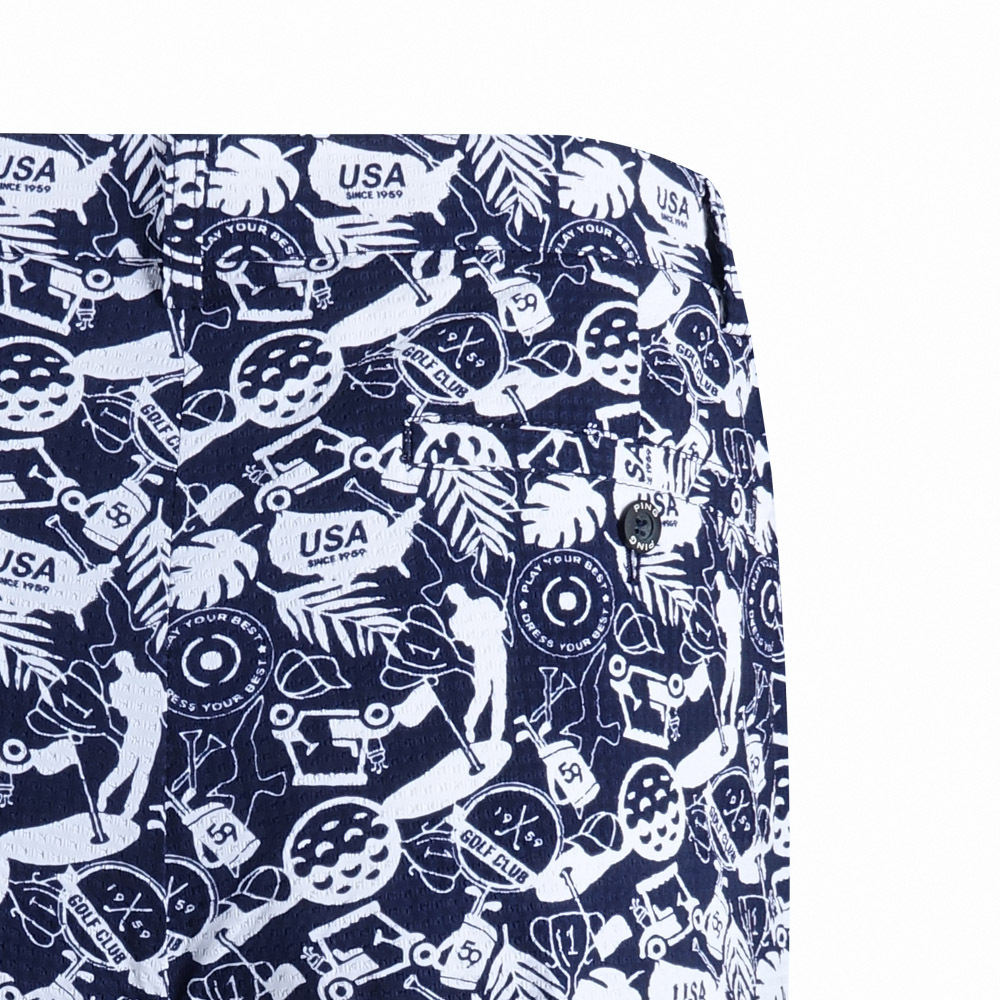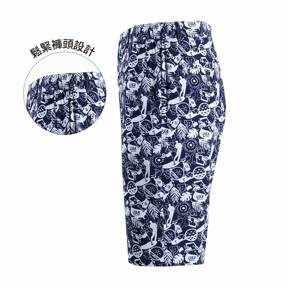 【PING】男款GOLF印花涼爽速乾休閒短褲-深藍 / PD24110-58