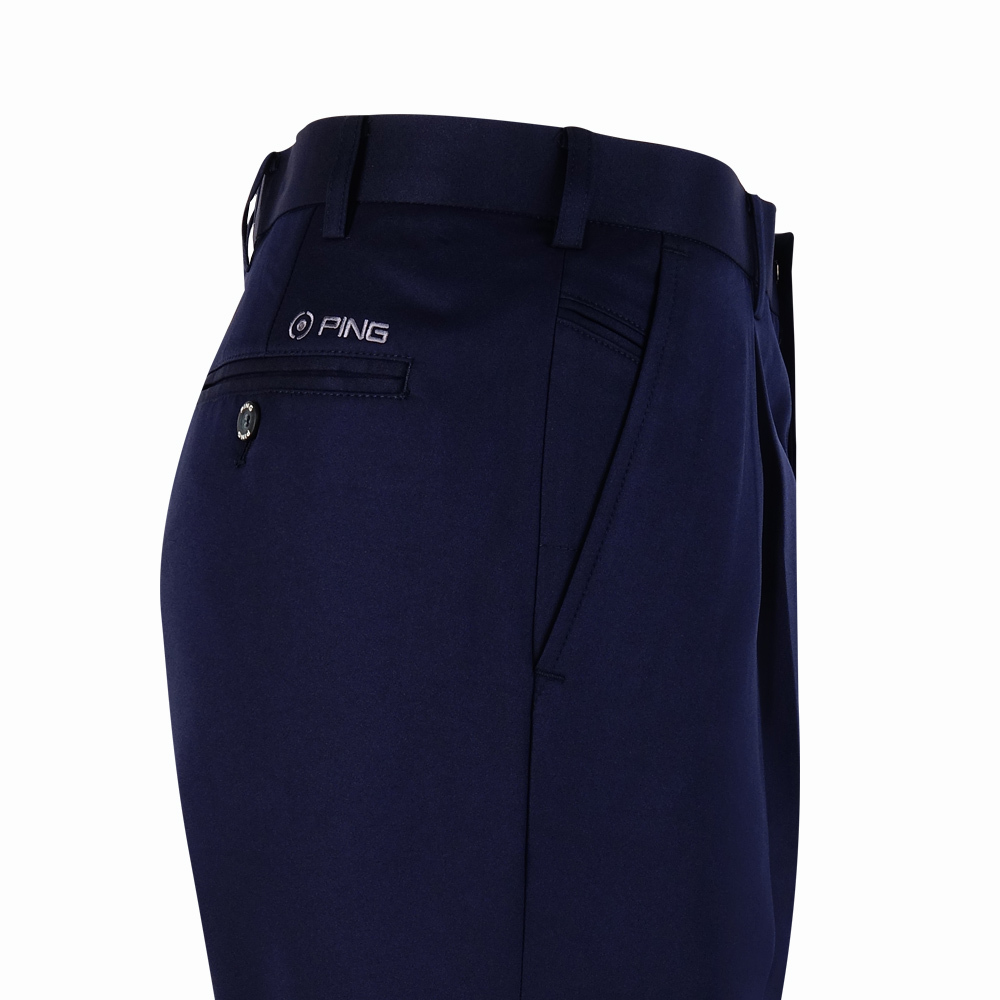 【PING】男款吸濕排汗抗UV單褶休閒長褲-深藍 / PE25101-58