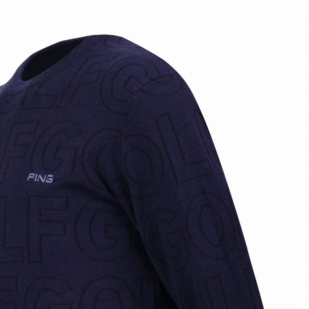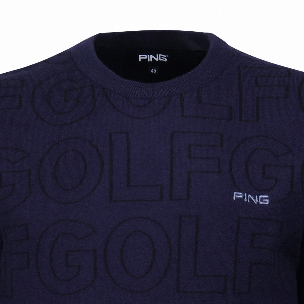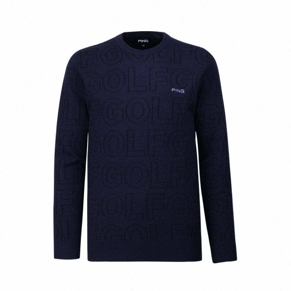 【PING】男款GOLF字母圓領長袖線衫毛衣-深藍 / PH23221-58