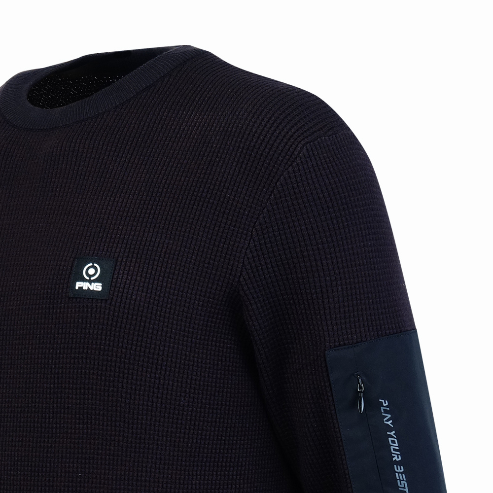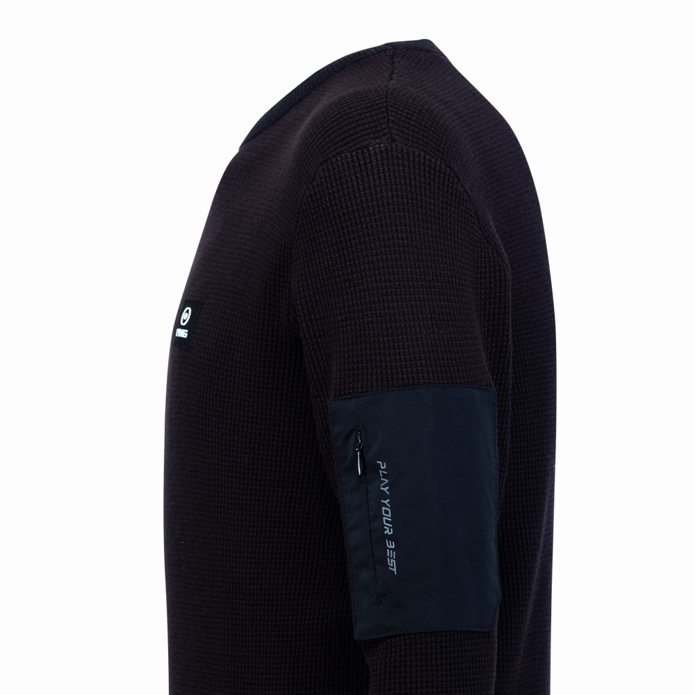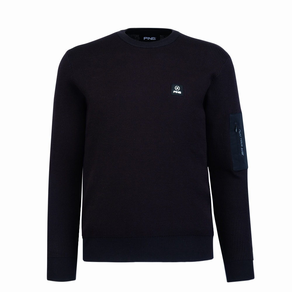 【PING】男款袖子拉鍊口袋長袖針織毛衣-黑 / PH24220-88