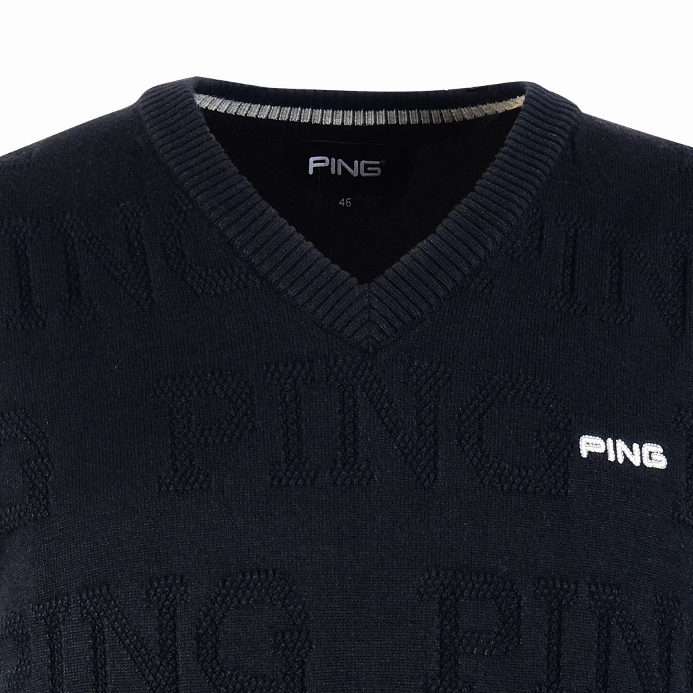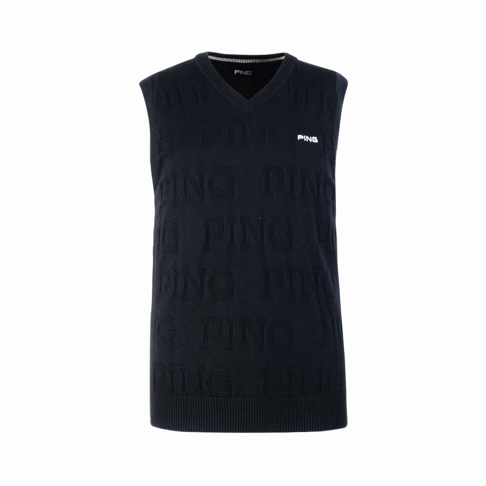 【PING】男款緹字V領無袖毛線背心-黑 / PH25210-88