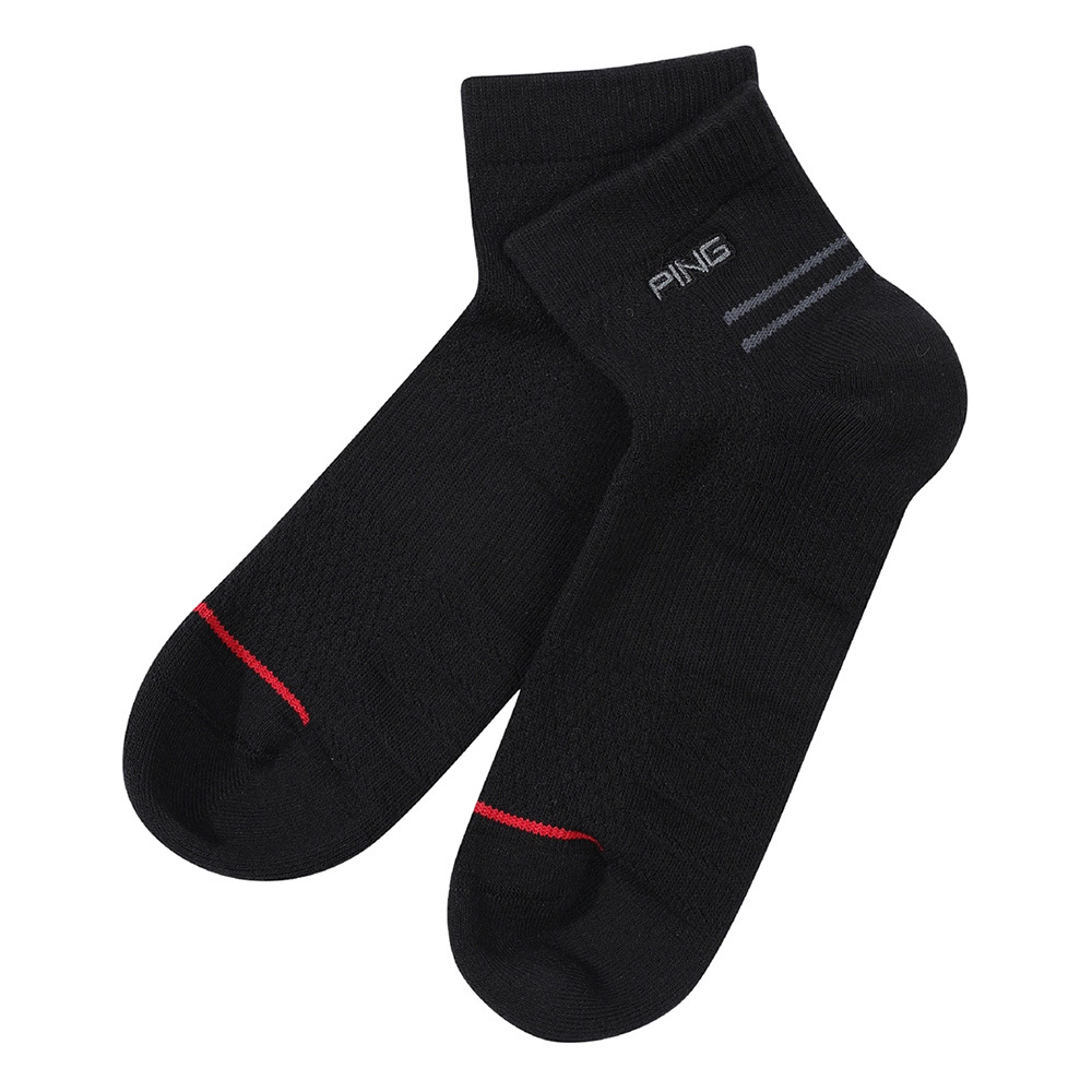 【PING】男款橫條短筒運動襪-黑 / PO24250-88