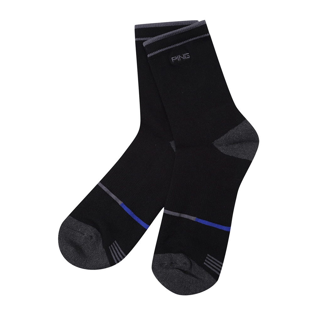【PING】男款拚色線條中筒運動襪-黑 / PO24252-88