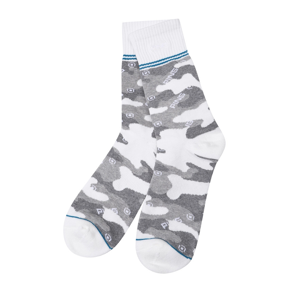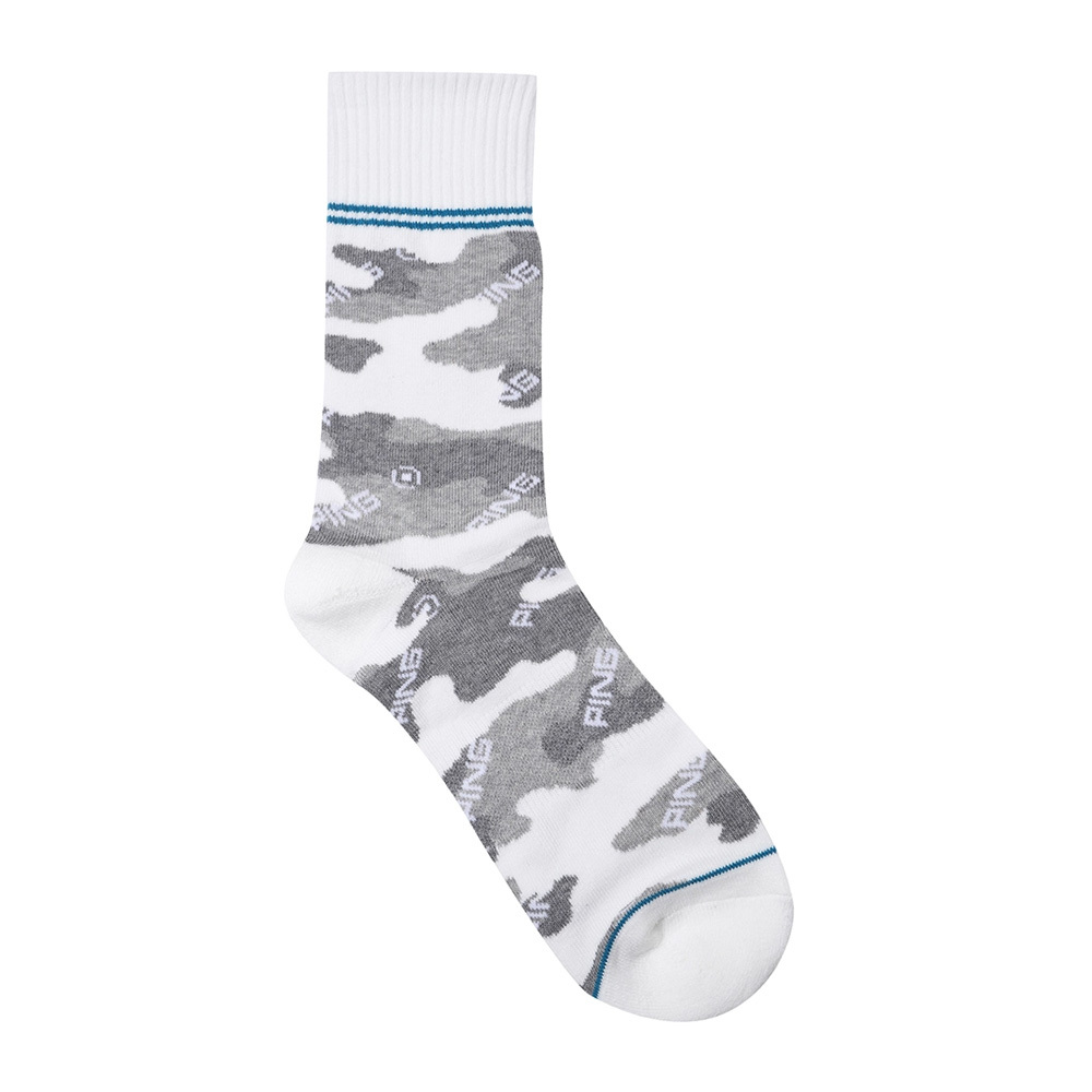 【PING】男款迷彩中筒運動襪-白 / PO24253-87