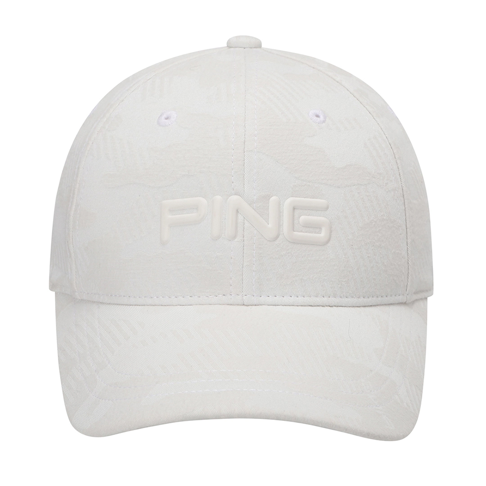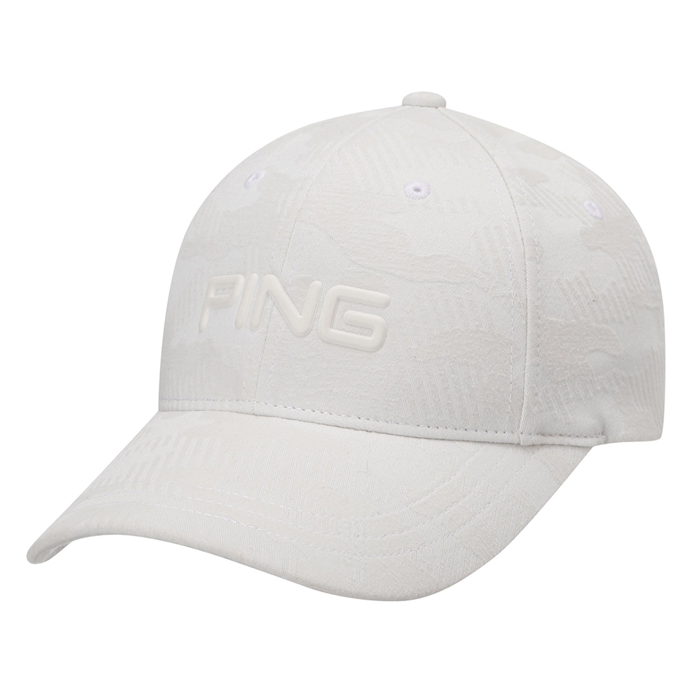 【PING】男款LOGO迷彩緹花高爾夫球帽-白 / PQ24252-87