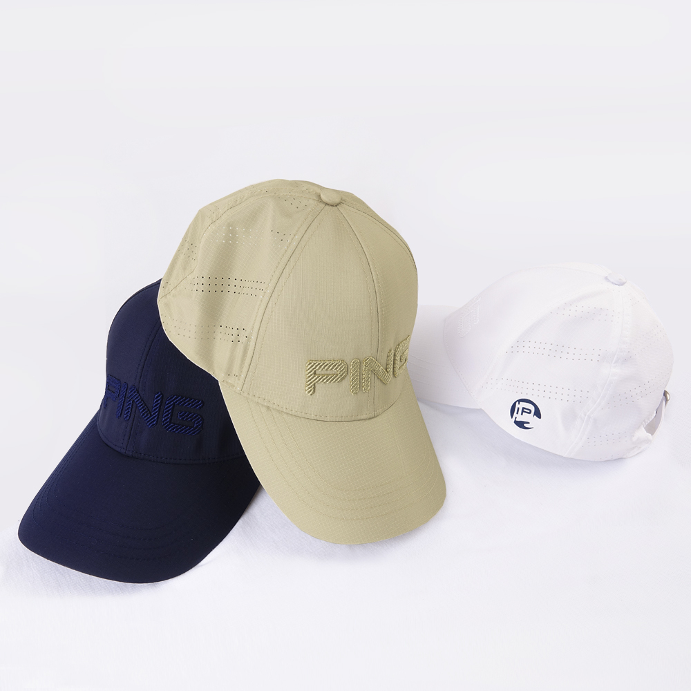 【PING】男款LOGO透氣沖孔高爾夫球帽-卡其 / PQ25103-75