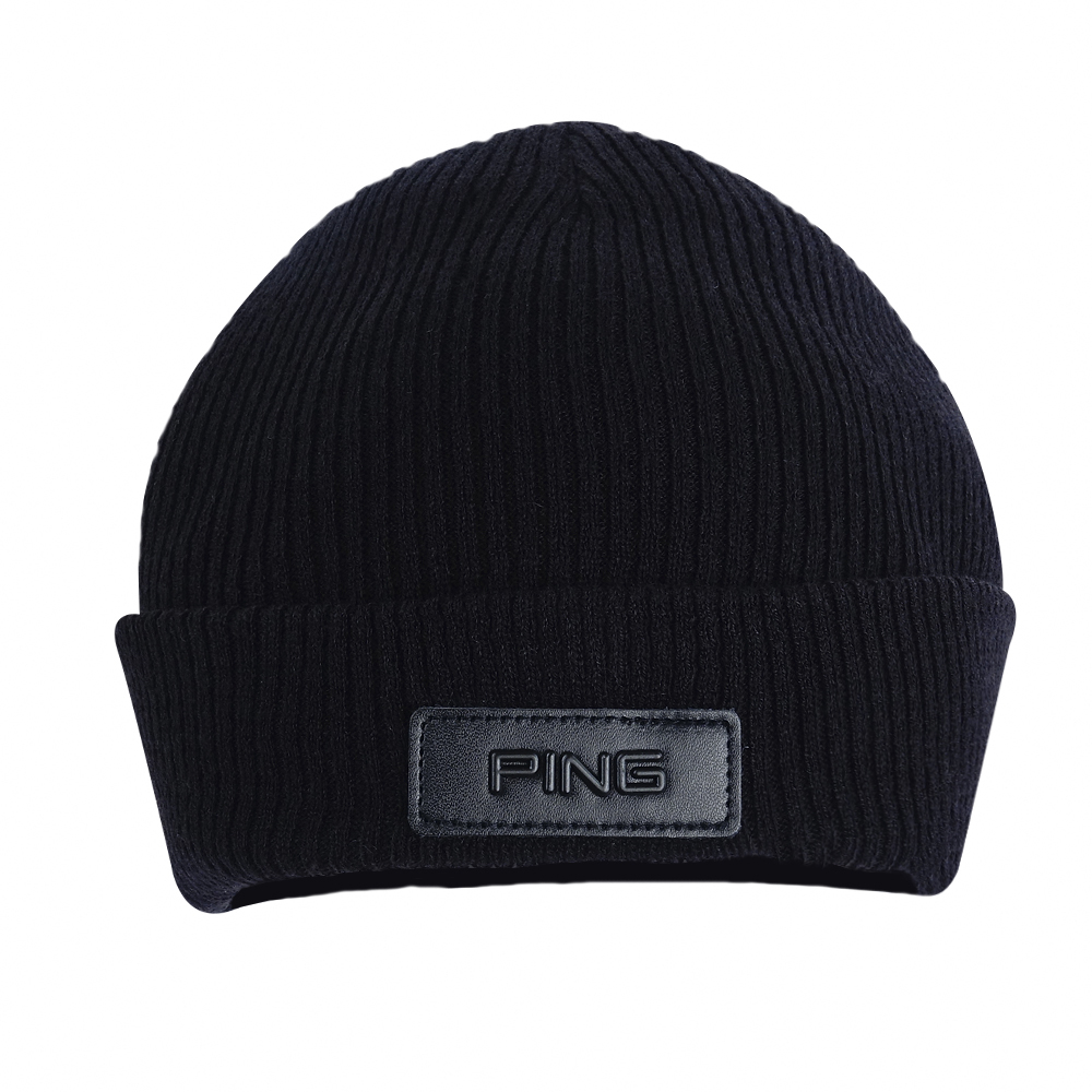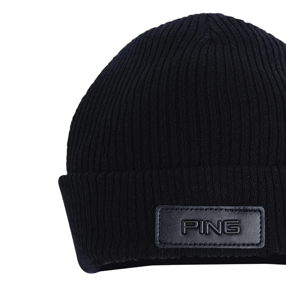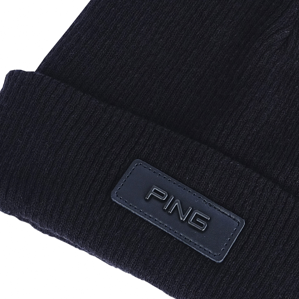 【PING】男女款皮標LOGO毛線帽-黑 / PQ25201-88