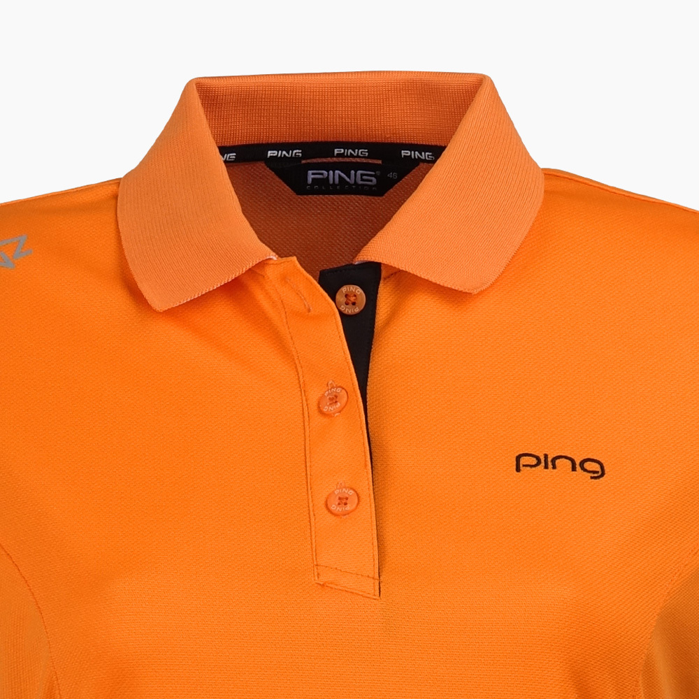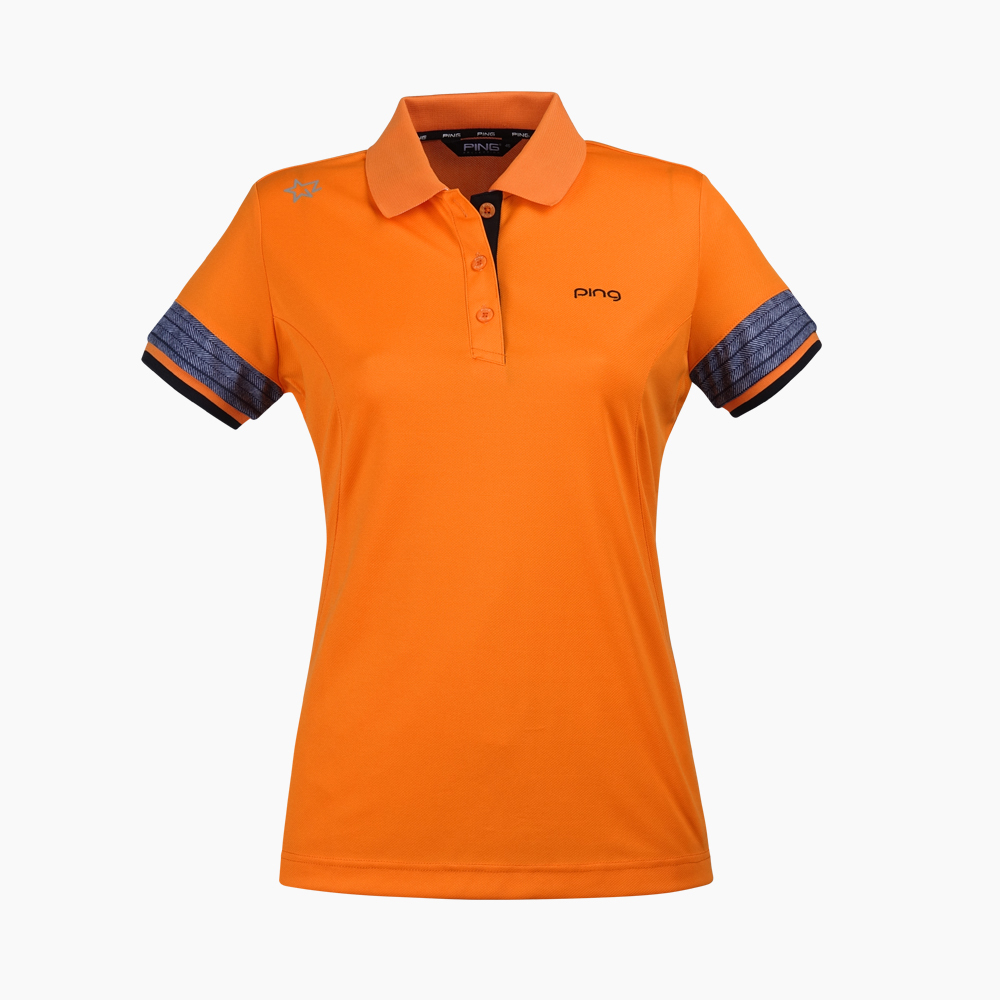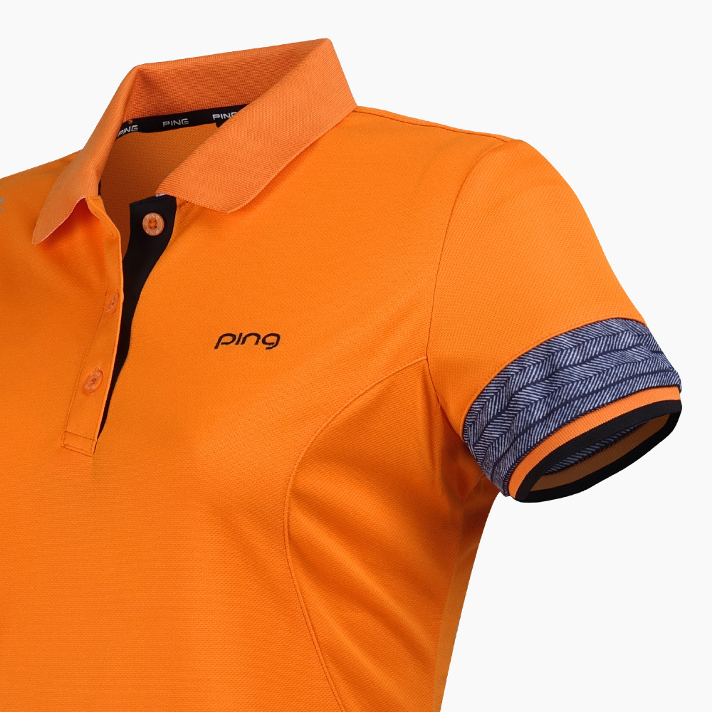 【PING】女款素面袖口印花高爾夫短袖POLO衫-橘 / RA18116-25