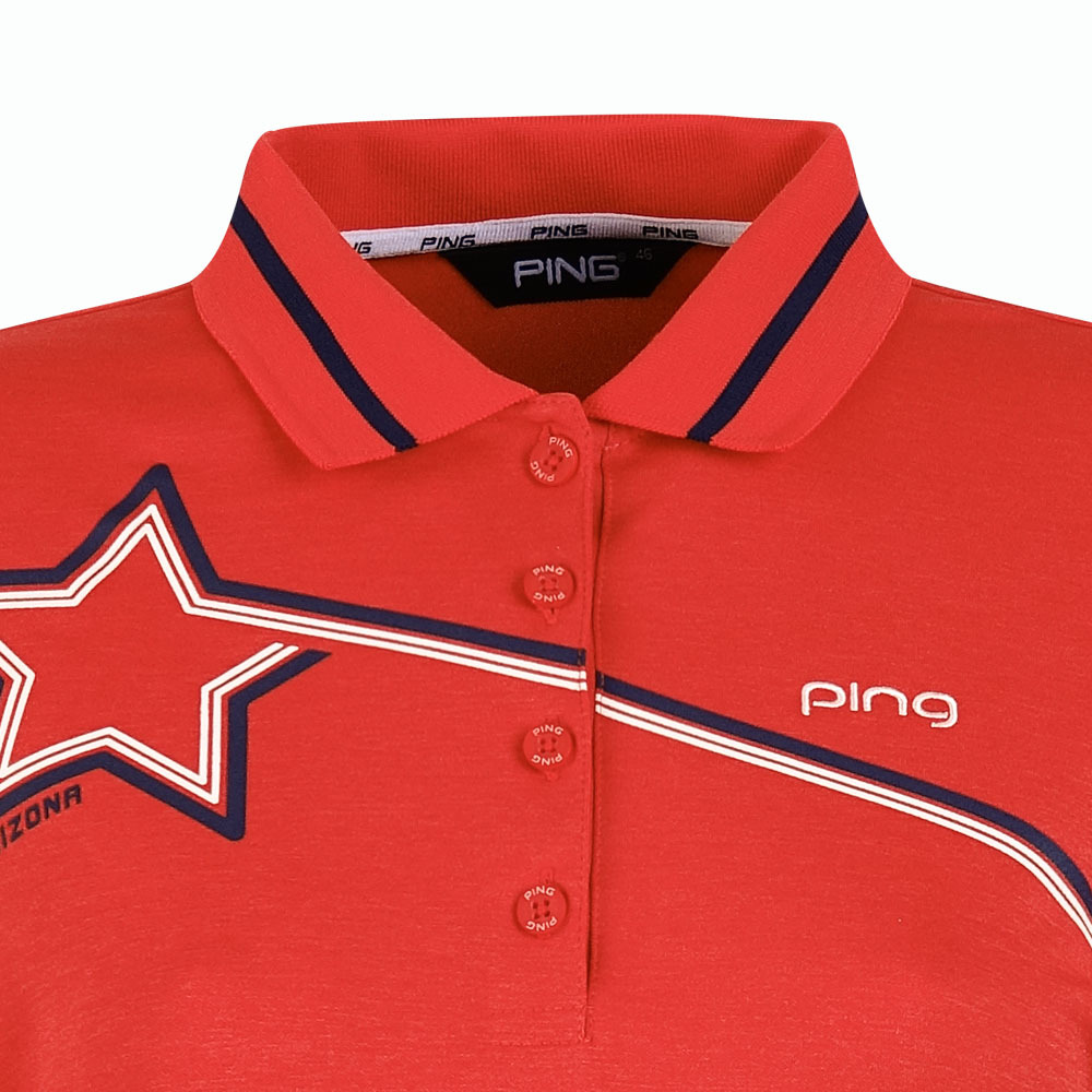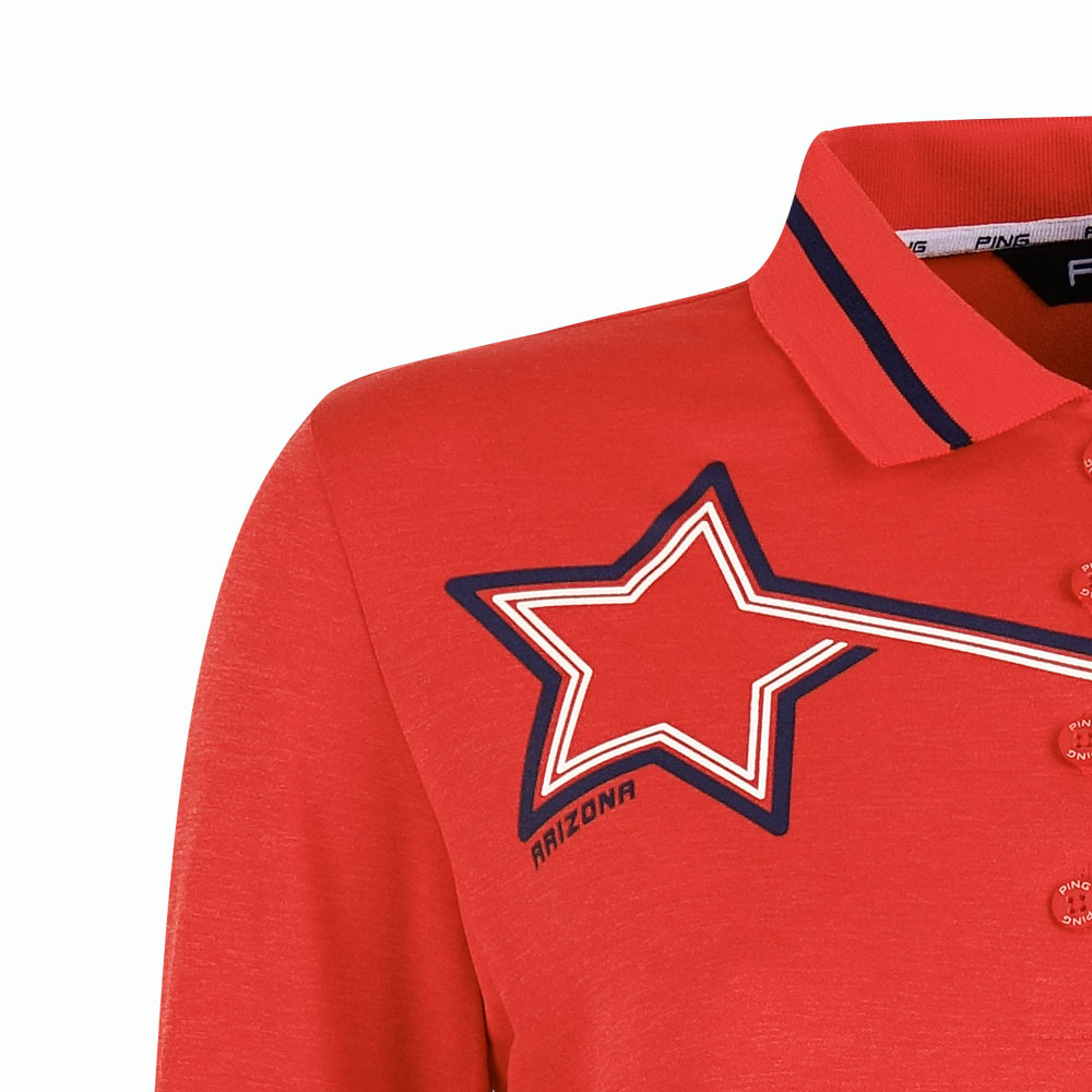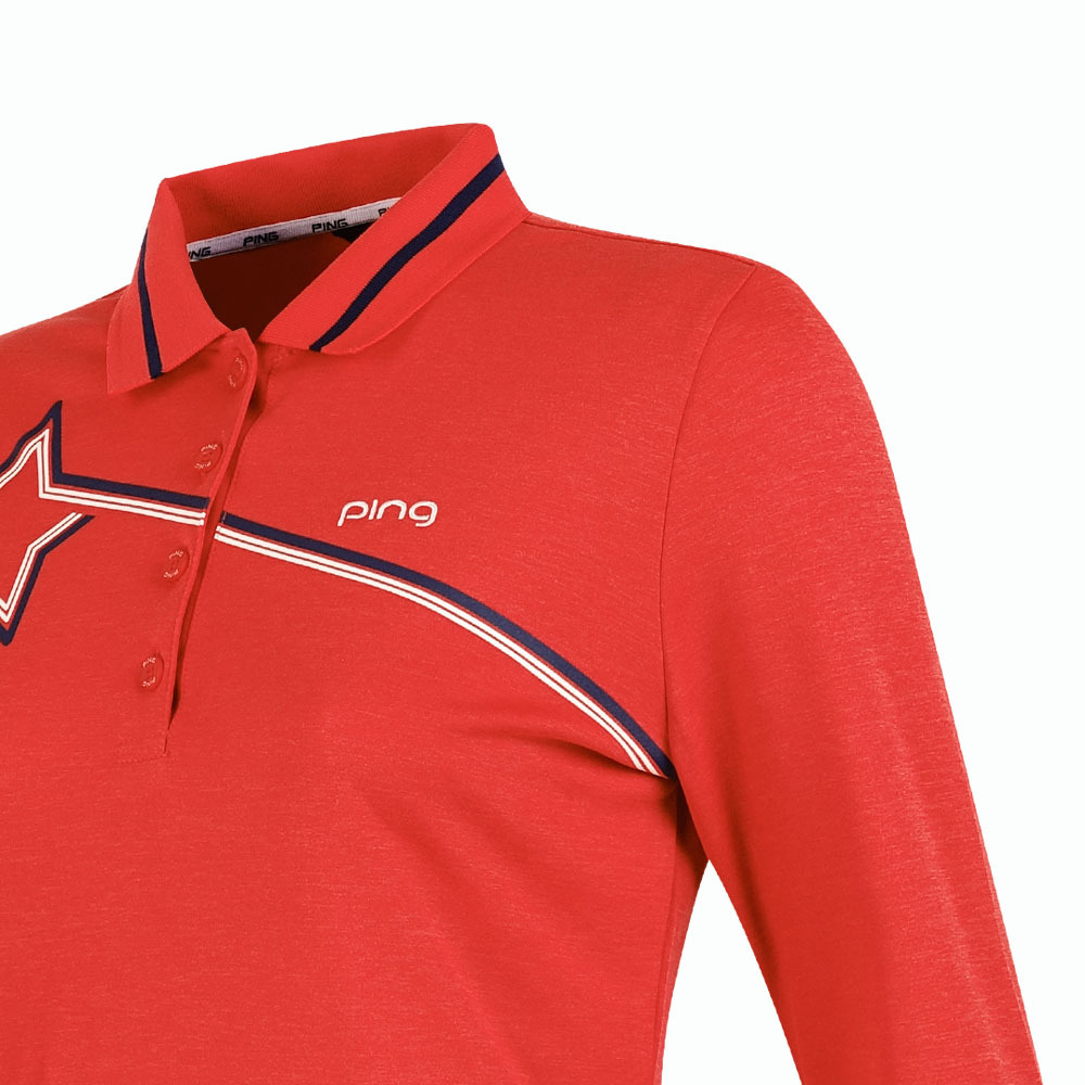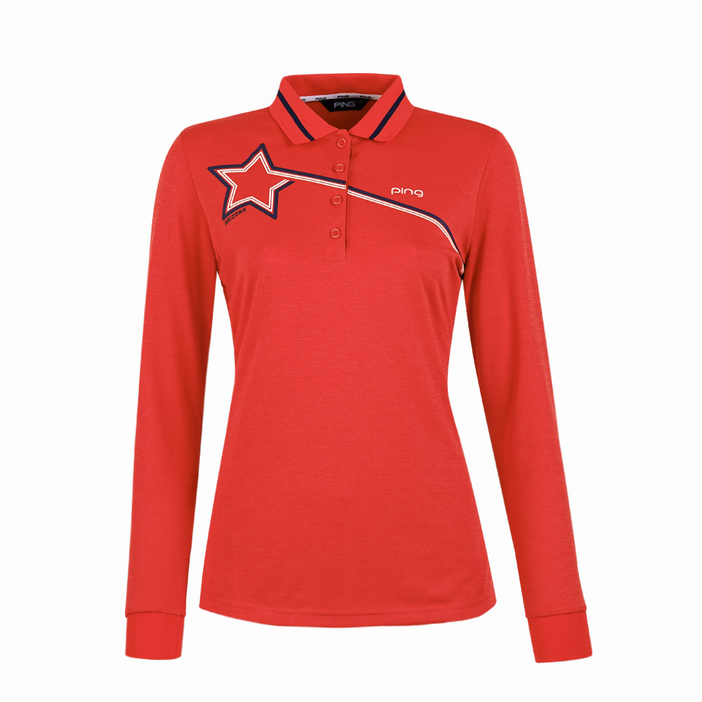 【PING】女款星星高爾夫長袖POLO衫-橘紅 / RA19202-28