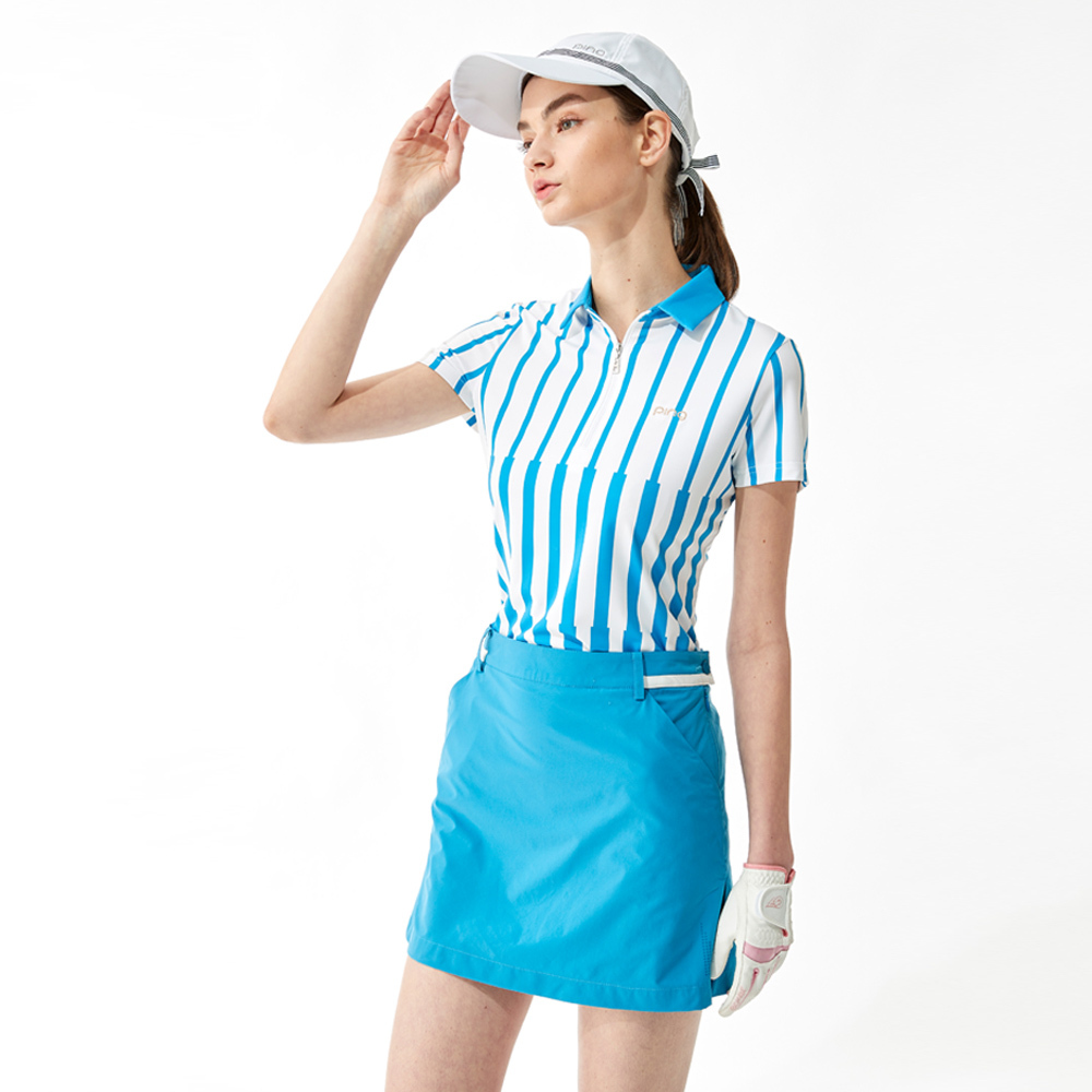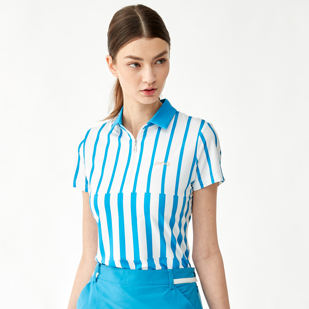 【PING】女款直條短袖POLO衫-藍 / RA23108-56