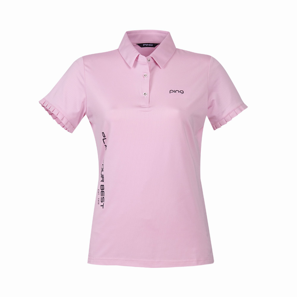 【PING】女款素面運動短袖POLO衫-粉紅 / RA23109-15