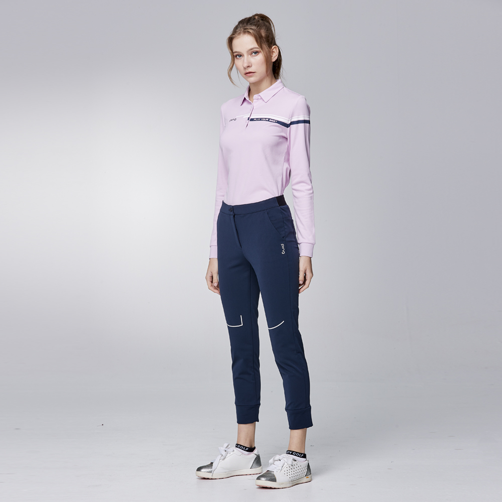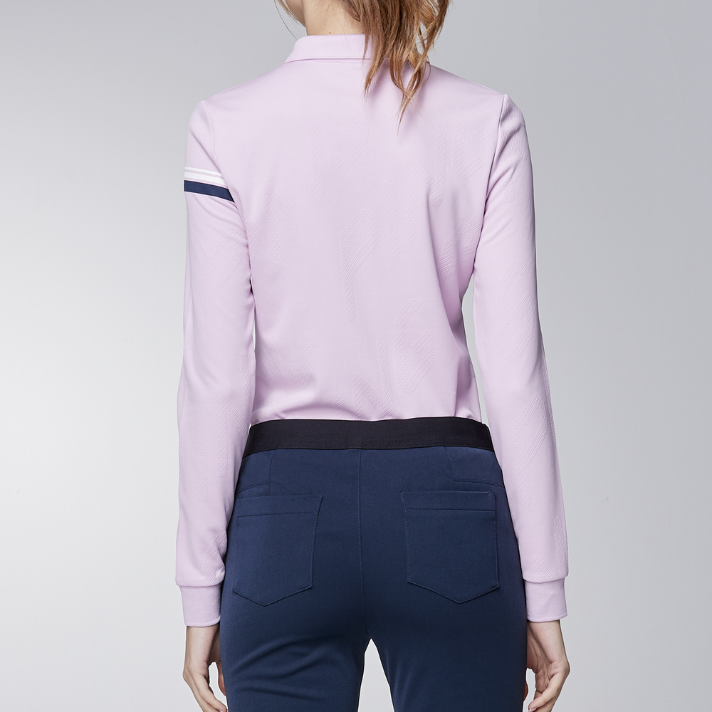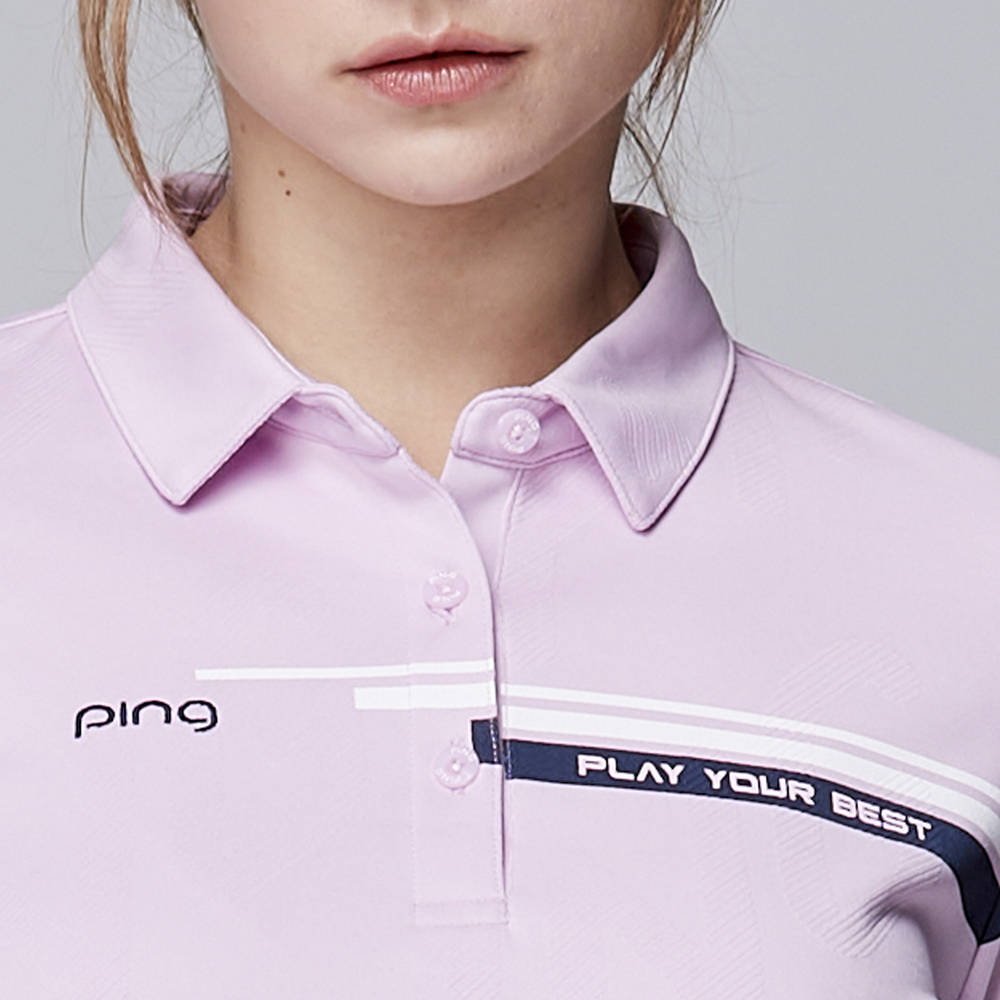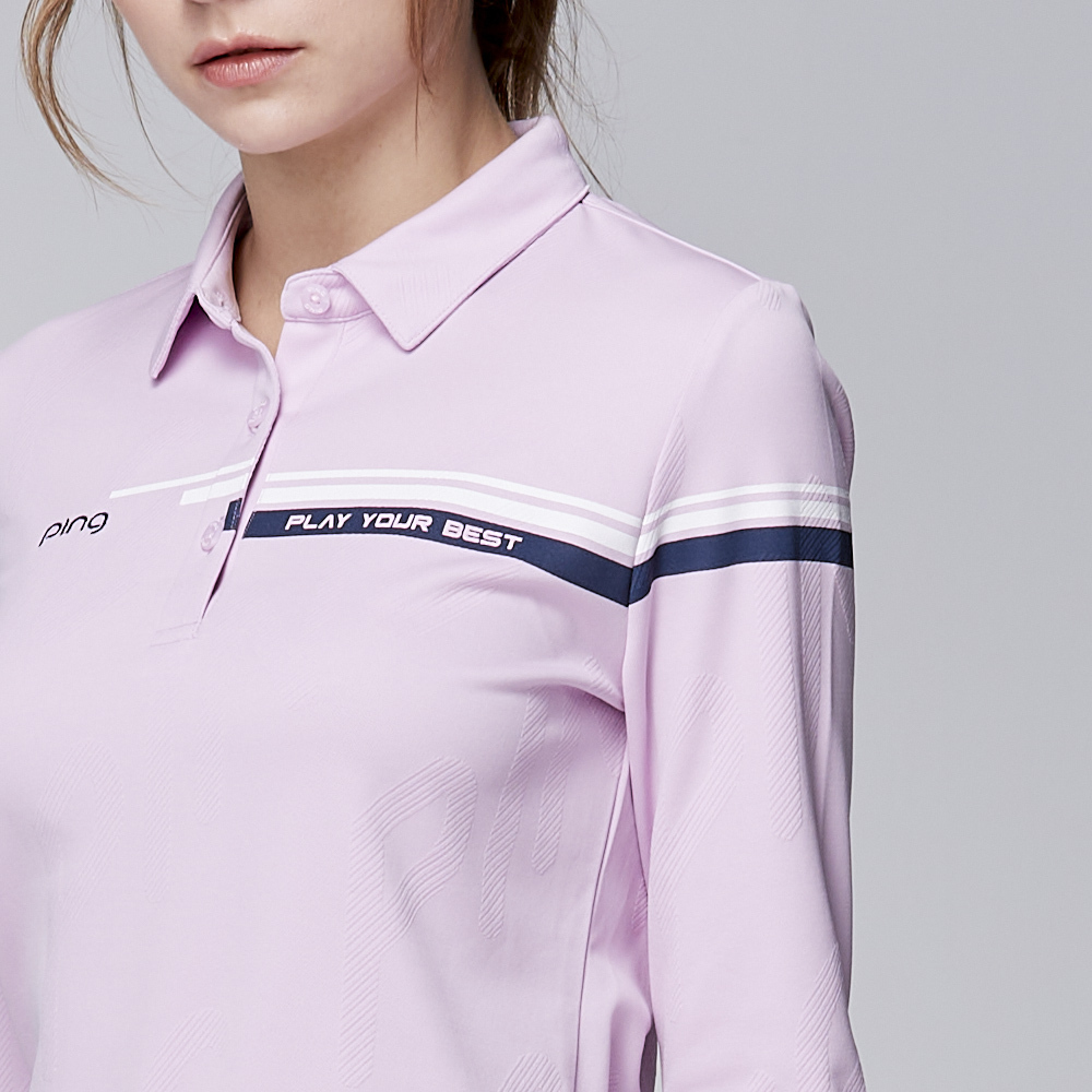 【PING】女款LOGO緹花吸濕排汗薄長袖POLO衫-粉紅 / RA23202-13