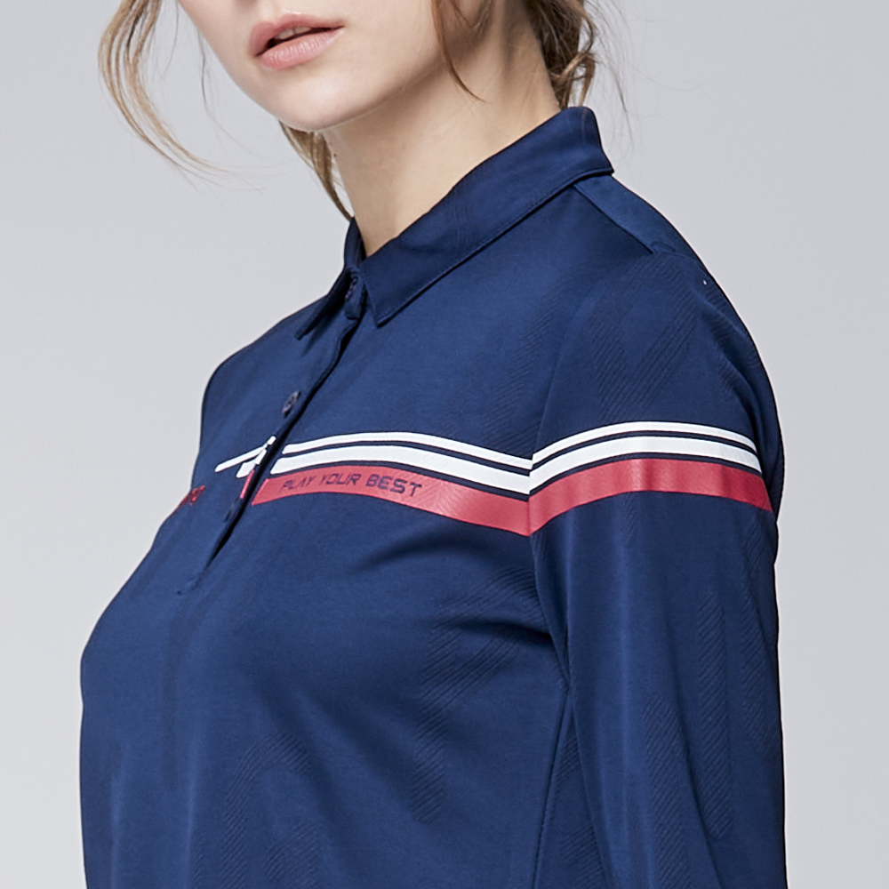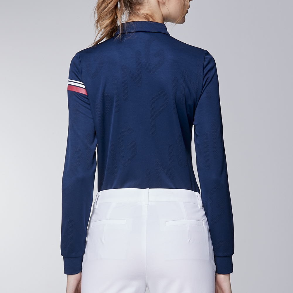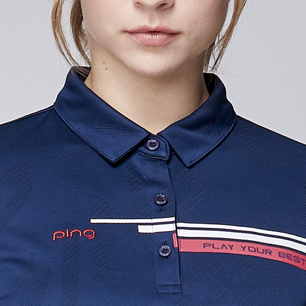 【PING】女款LOGO緹花吸濕排汗薄長袖POLO衫-深藍 / RA23202-58