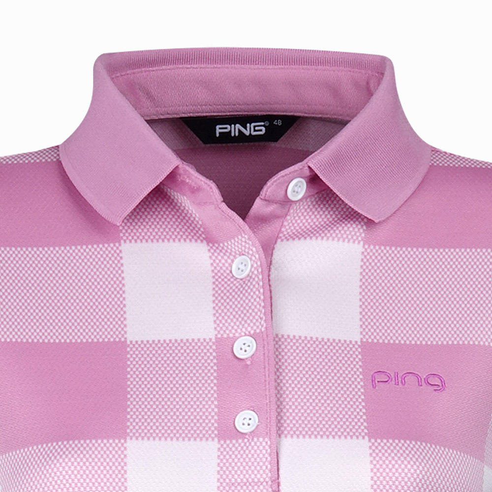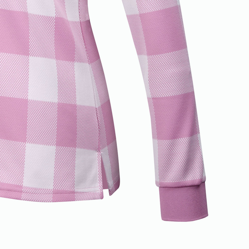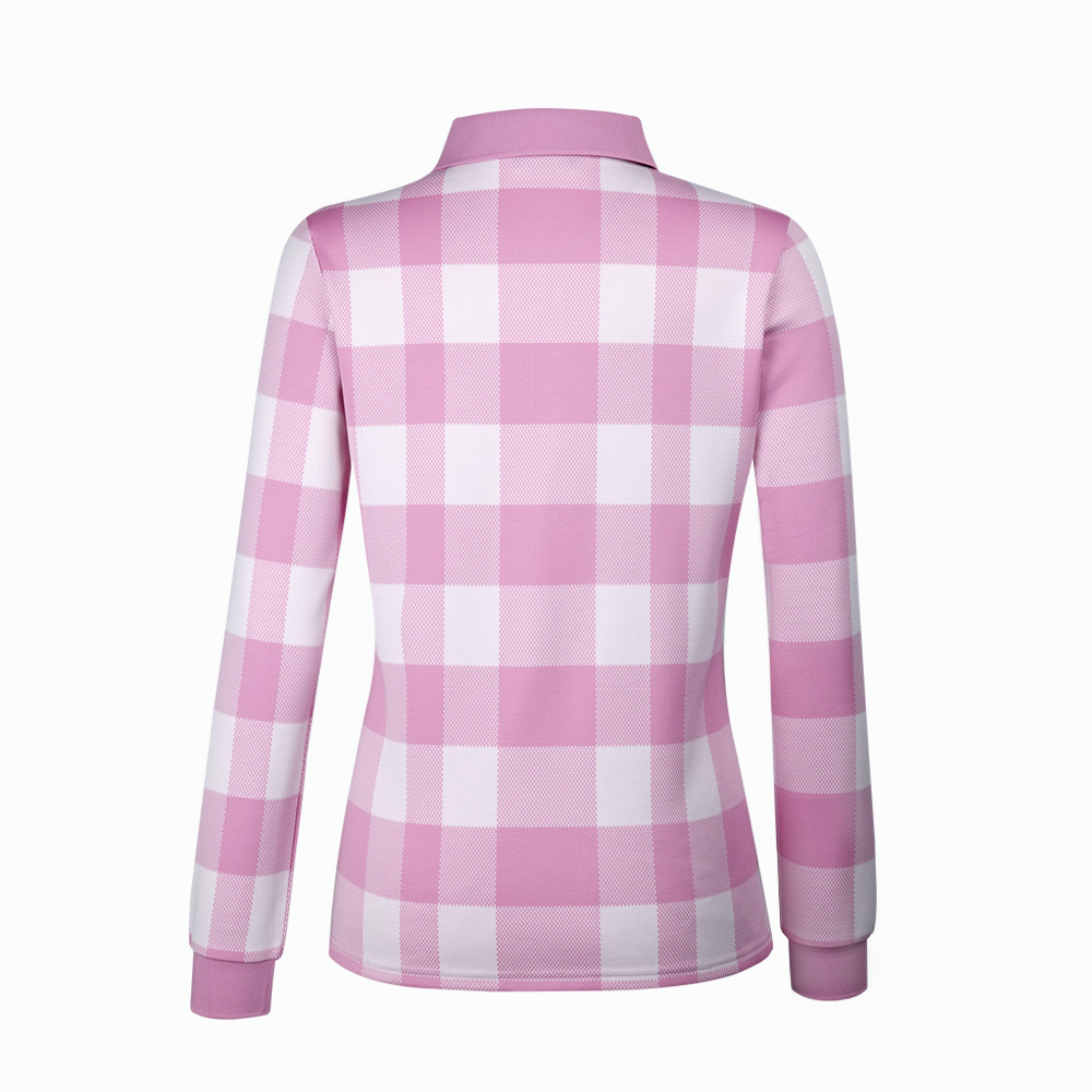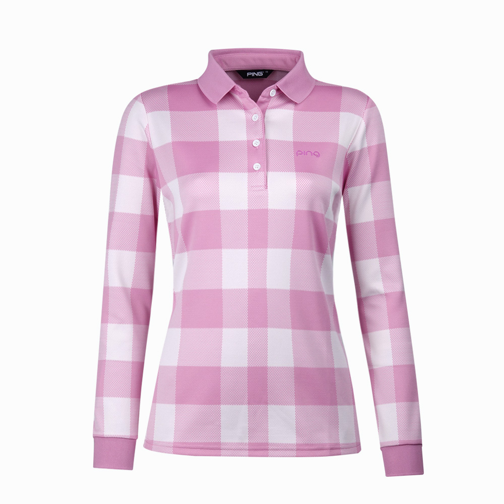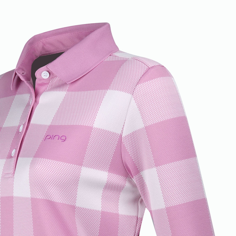 【PING】女款格紋吸濕排汗蓄熱保溫長袖POLO衫-粉紅 / RA23205-13