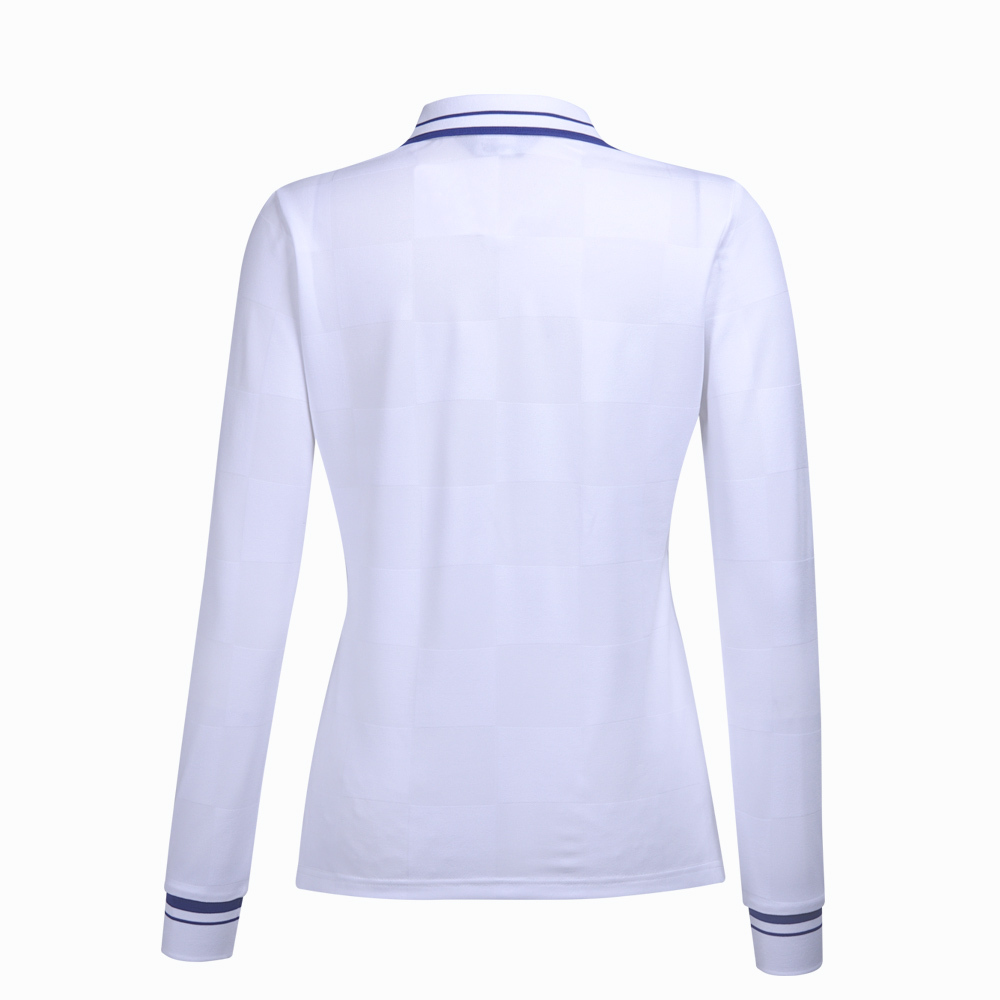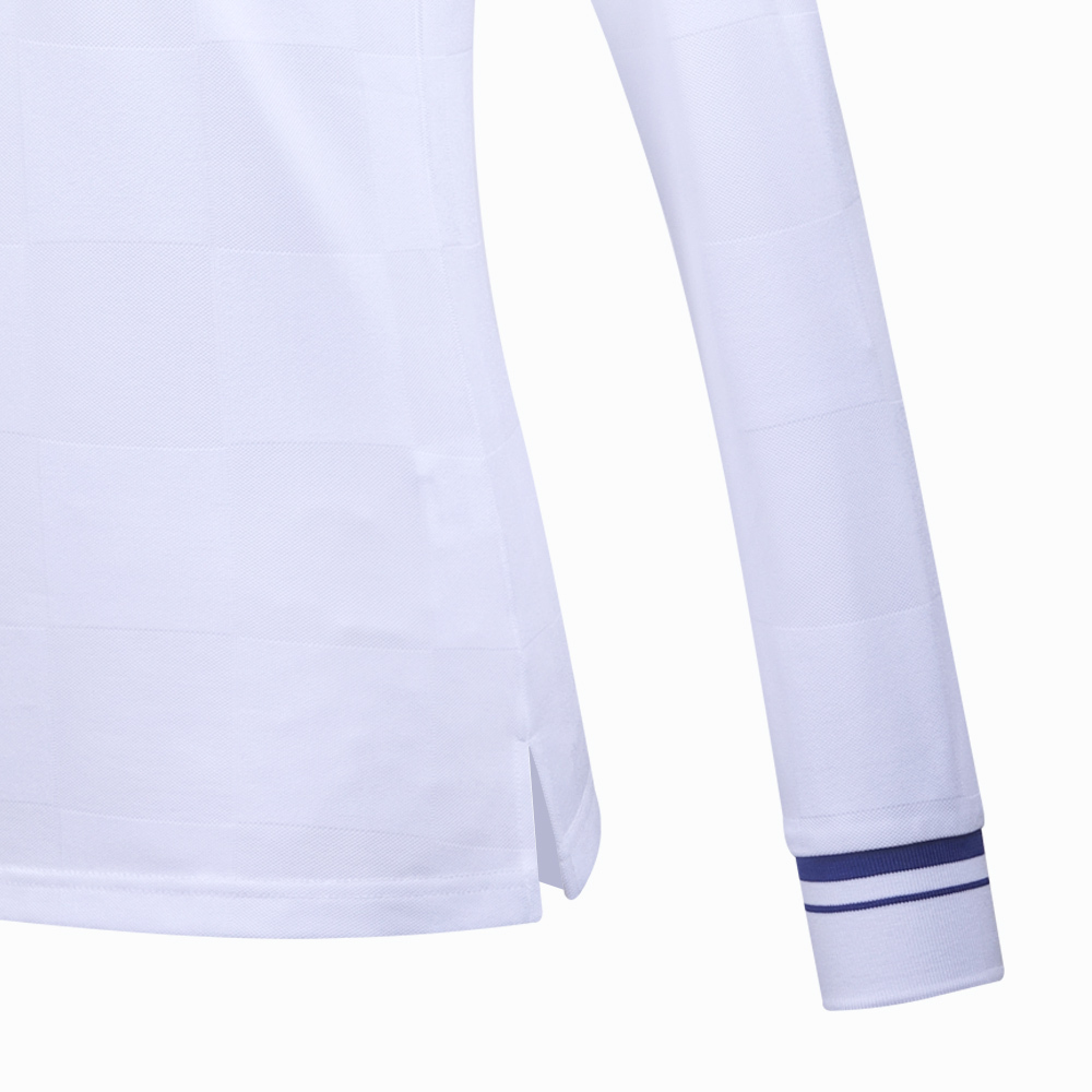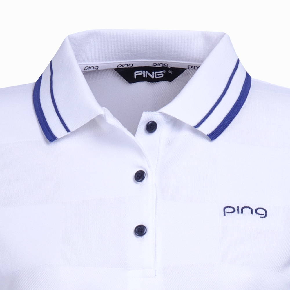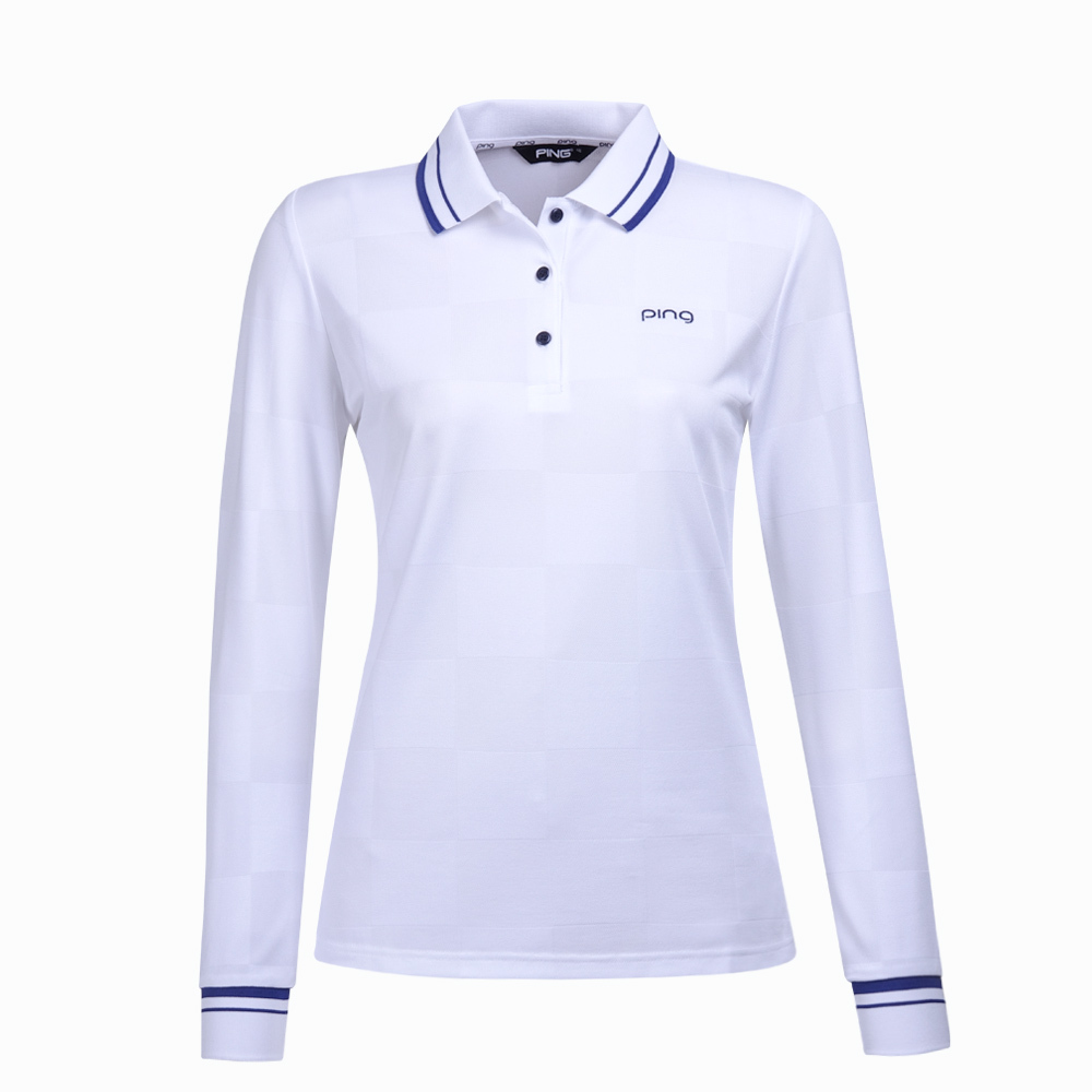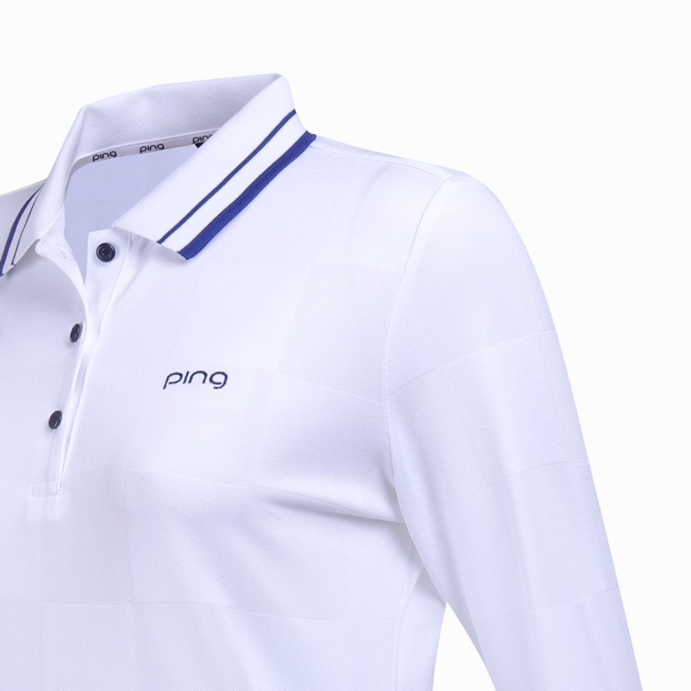 【PING】女款方格緹花吸濕排汗抗UV薄長袖POLO衫-白 / RA23206-87