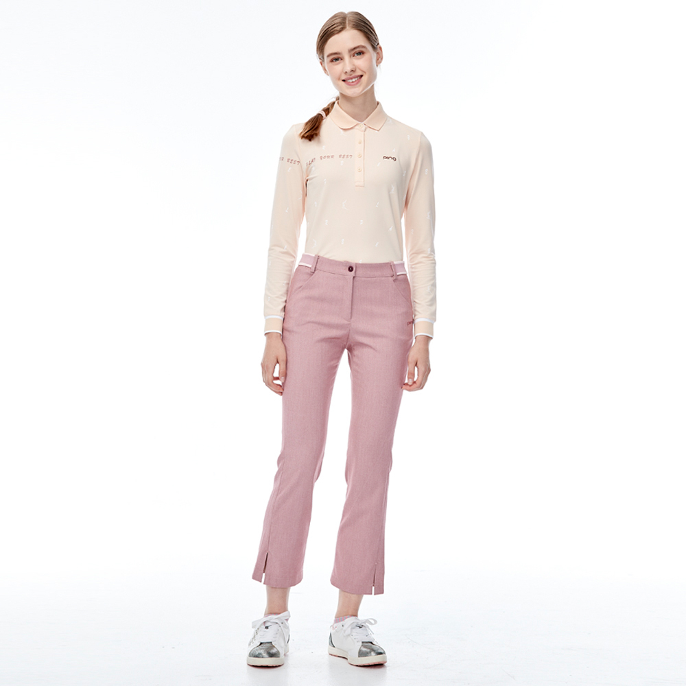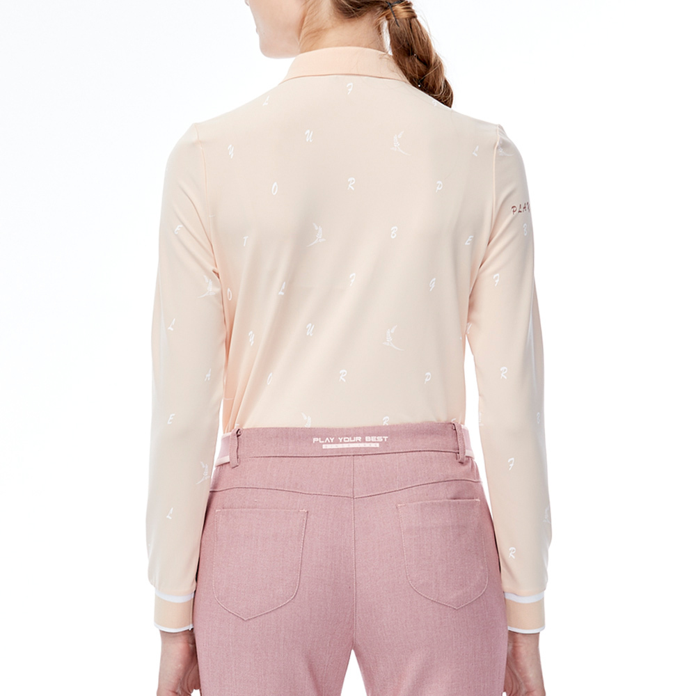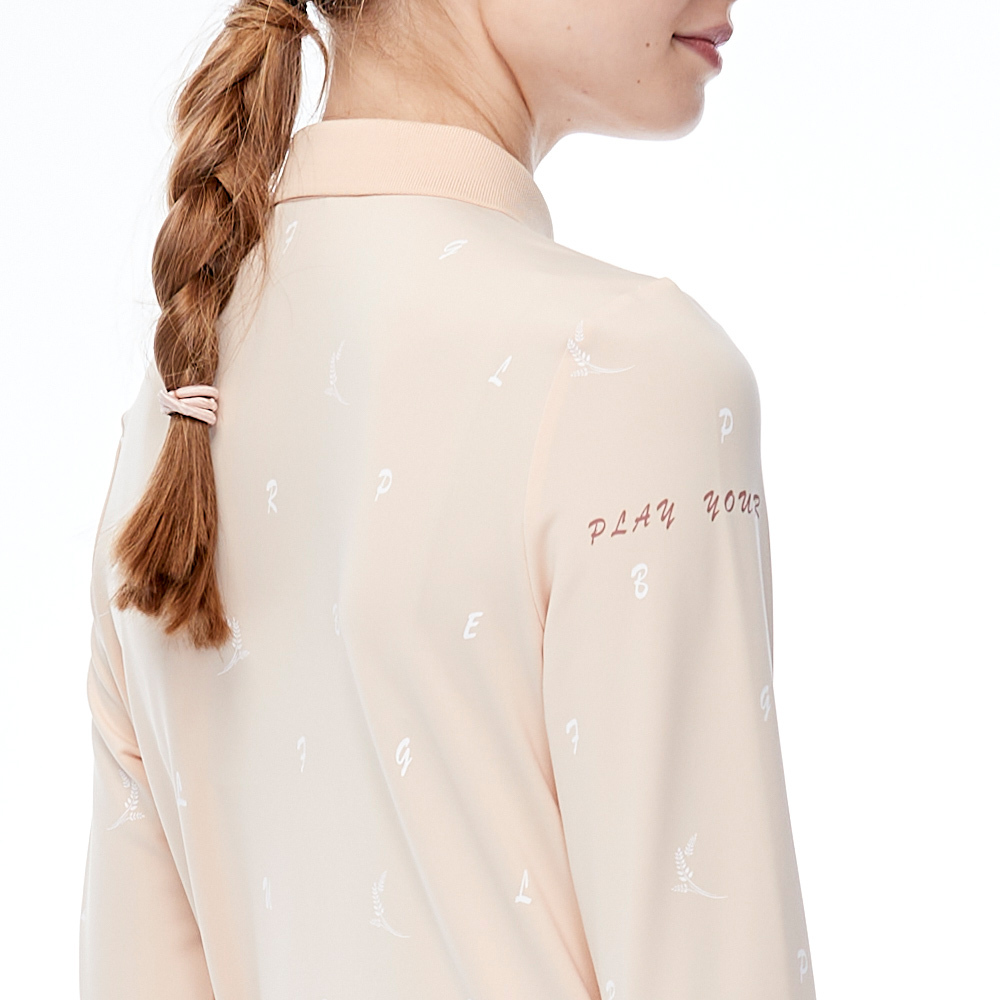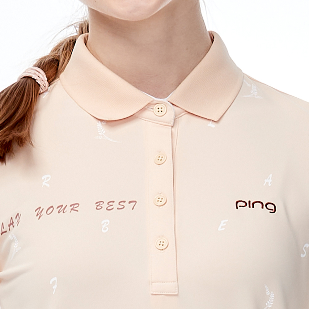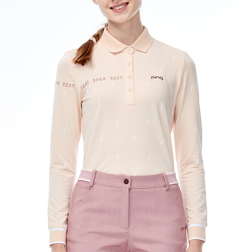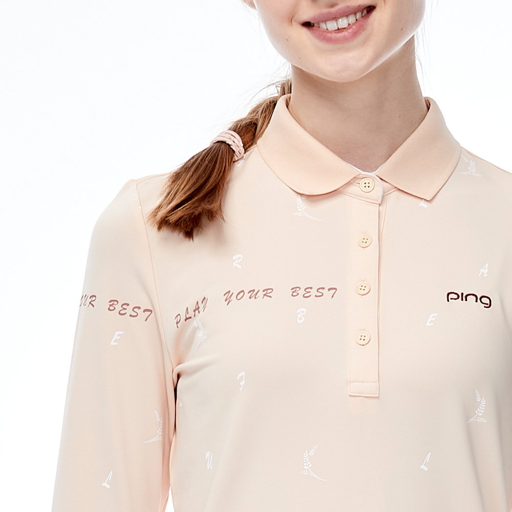 【PING】女款麥穗印花吸濕排汗薄長袖POLO衫-黃 / RA23207-35