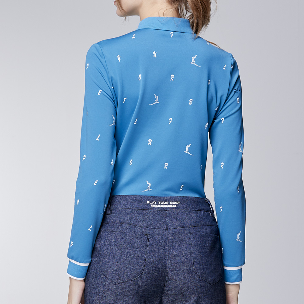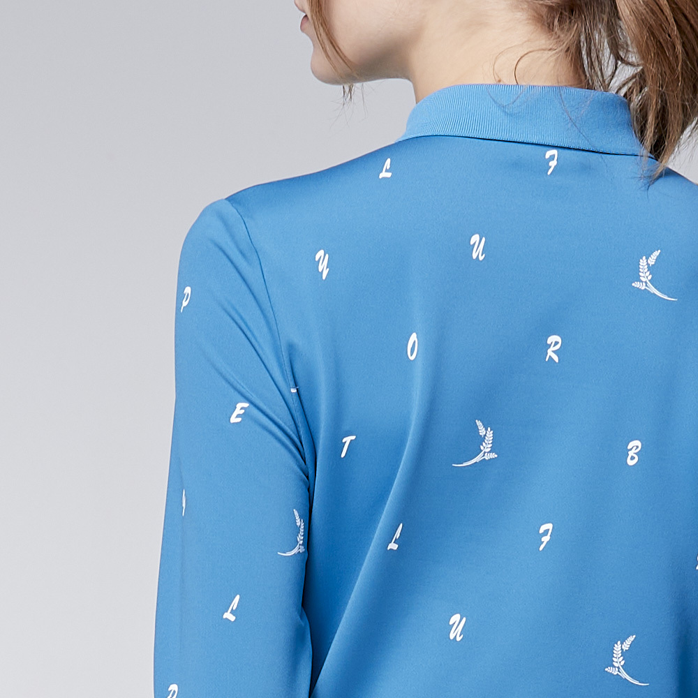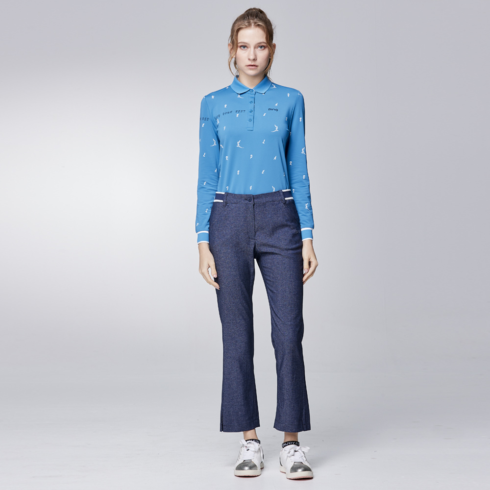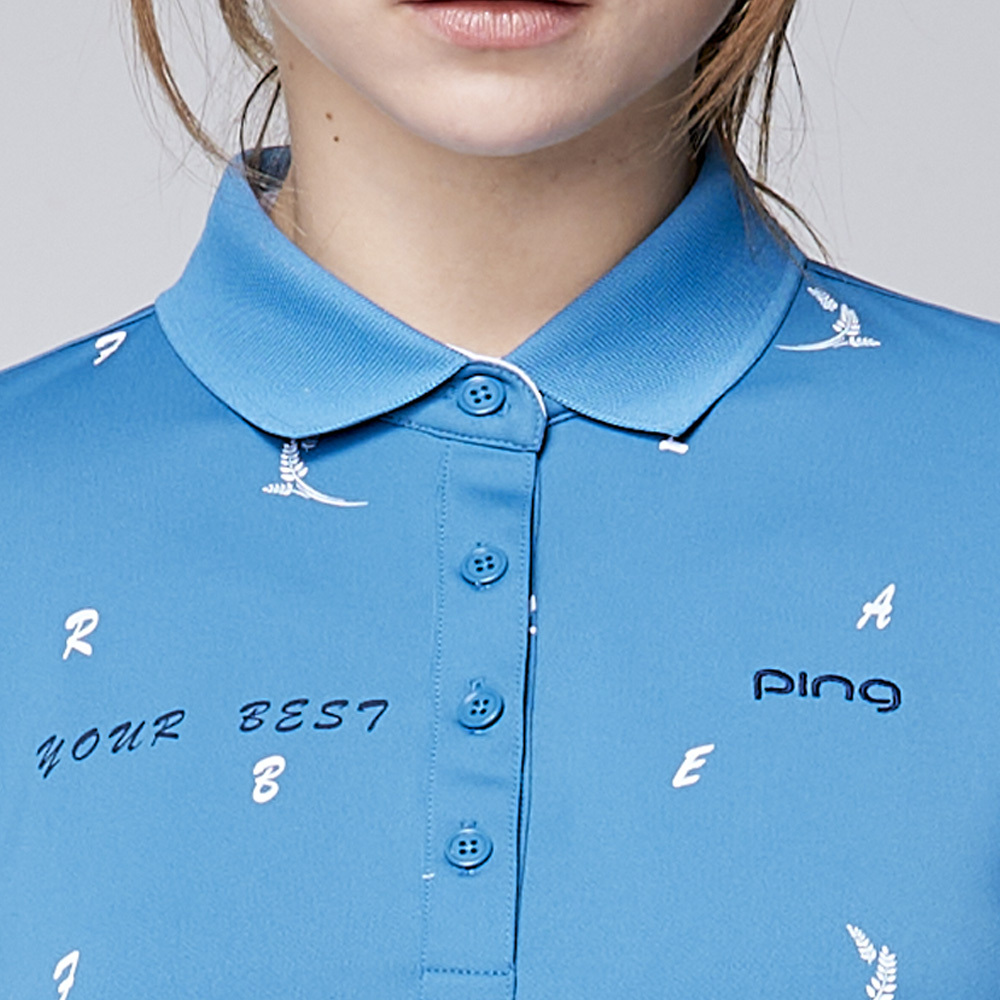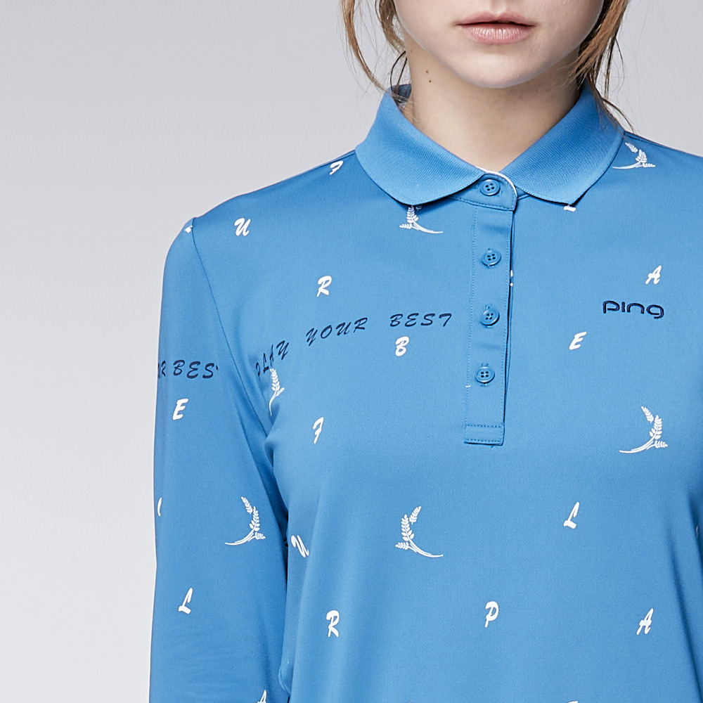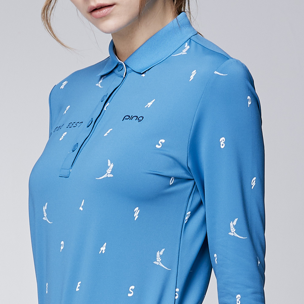 【PING】女款麥穗印花吸濕排汗薄長袖POLO衫-藍綠 / RA23207-56