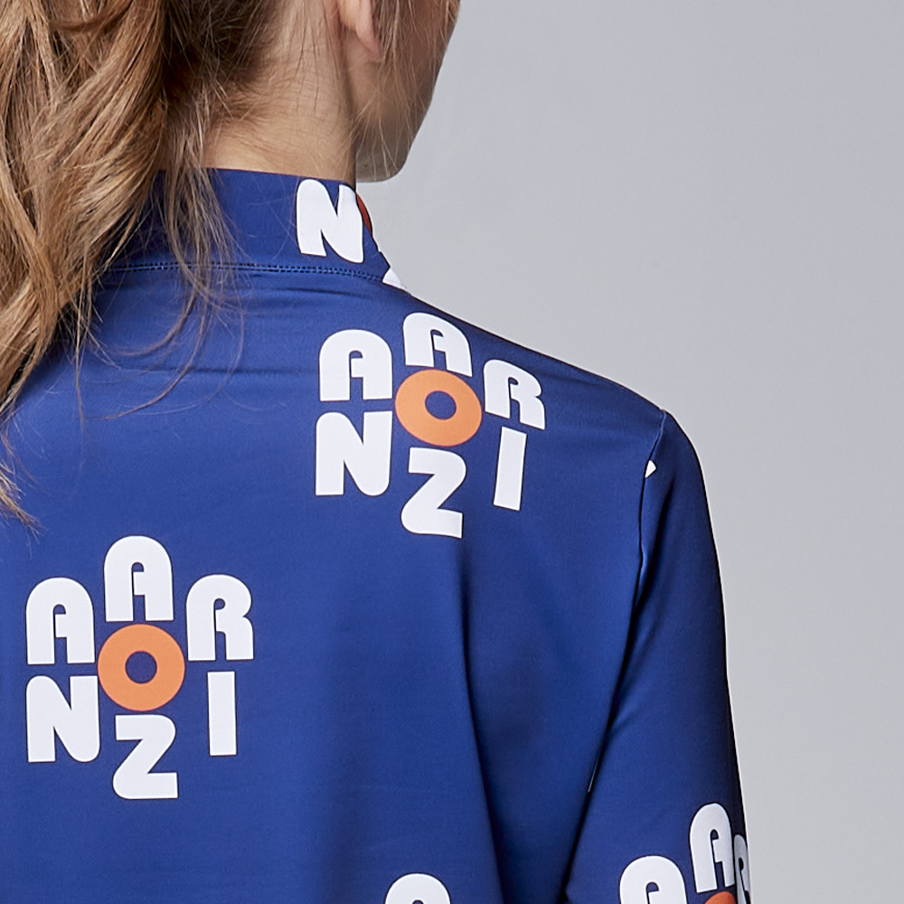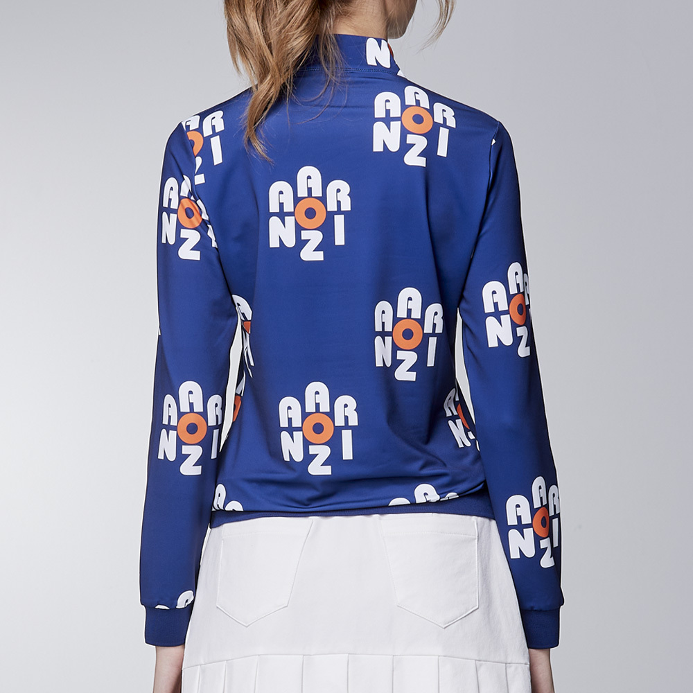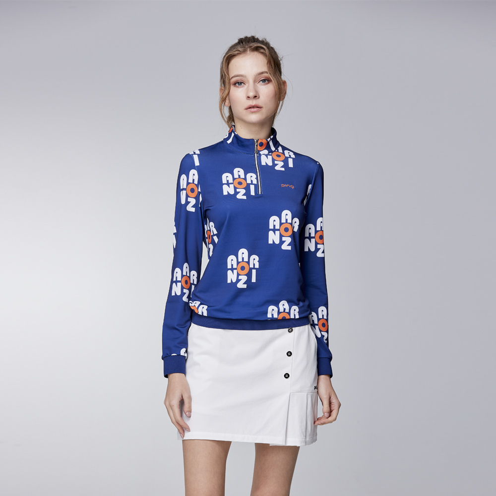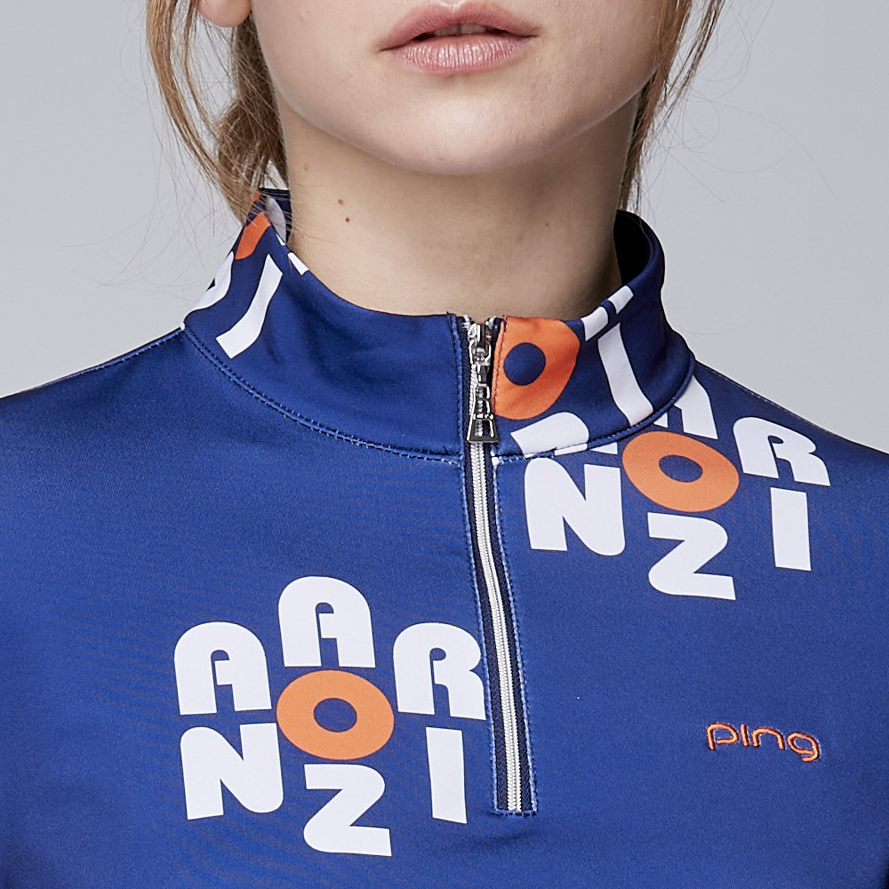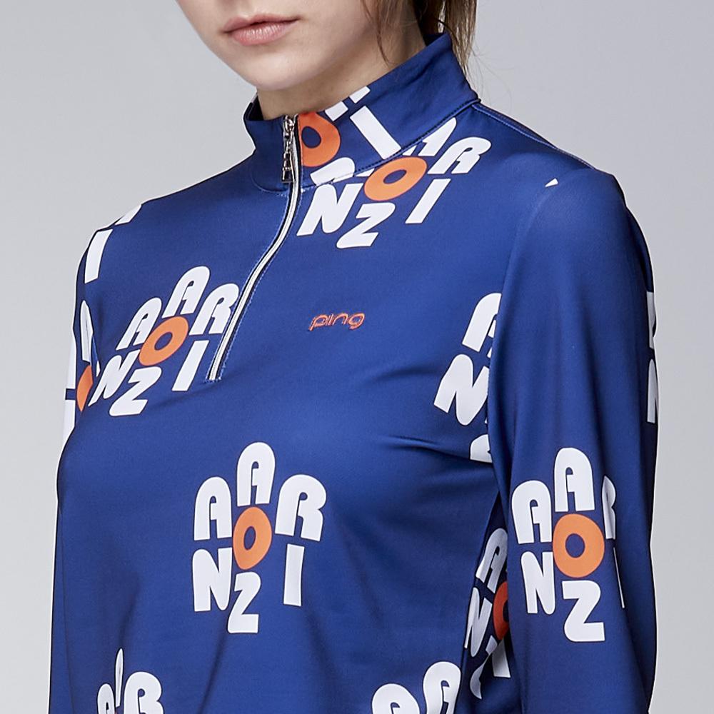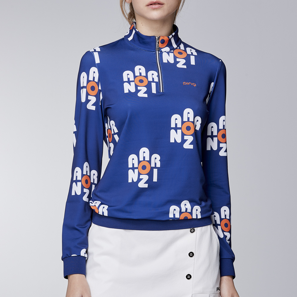【PING】女款字母印花吸濕排汗立領長袖POLO衫-深藍 / RA23214-58