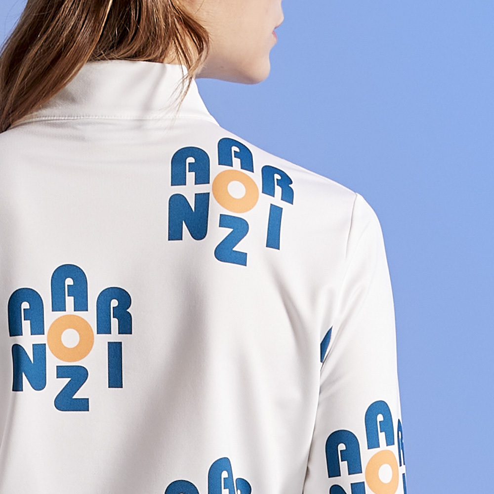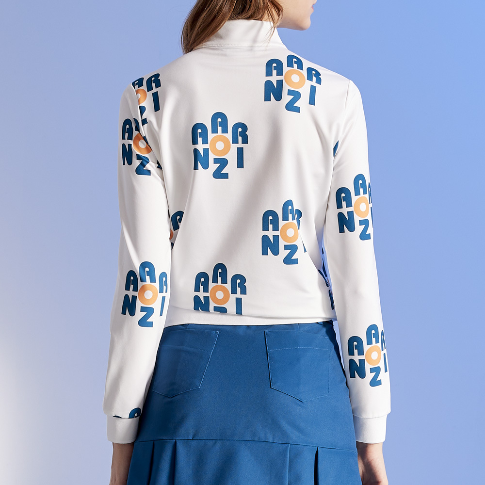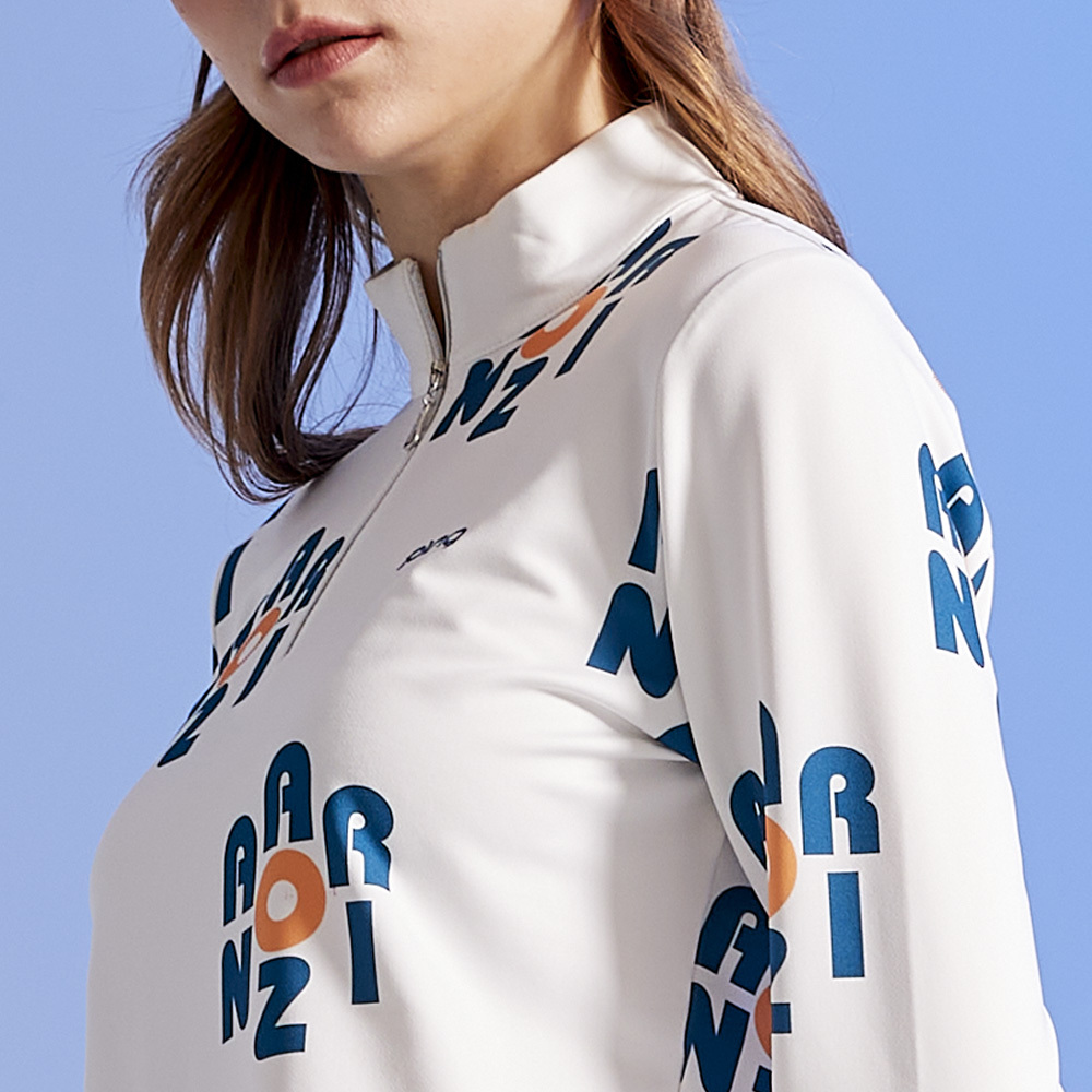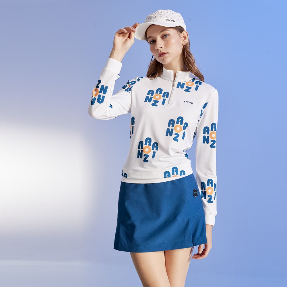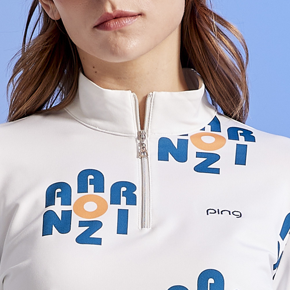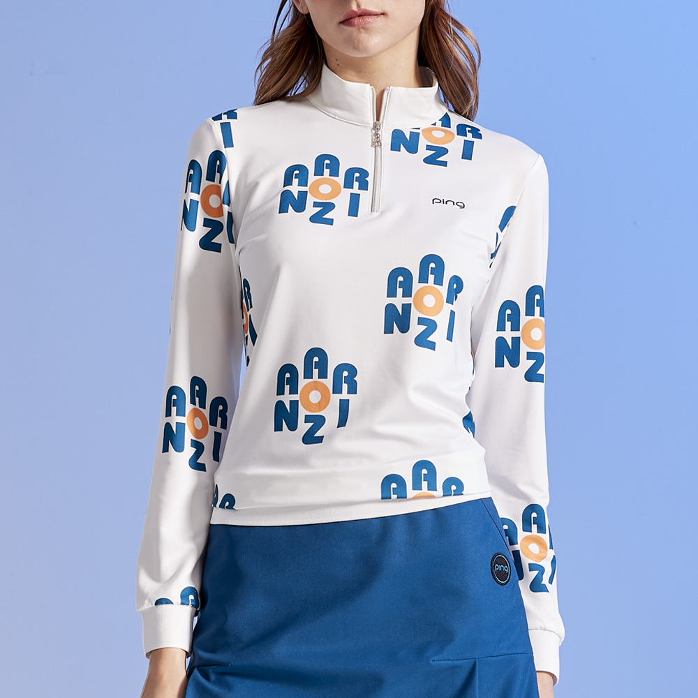 【PING】女款字母印花吸濕排汗立領長袖POLO衫-白 / RA23214-87