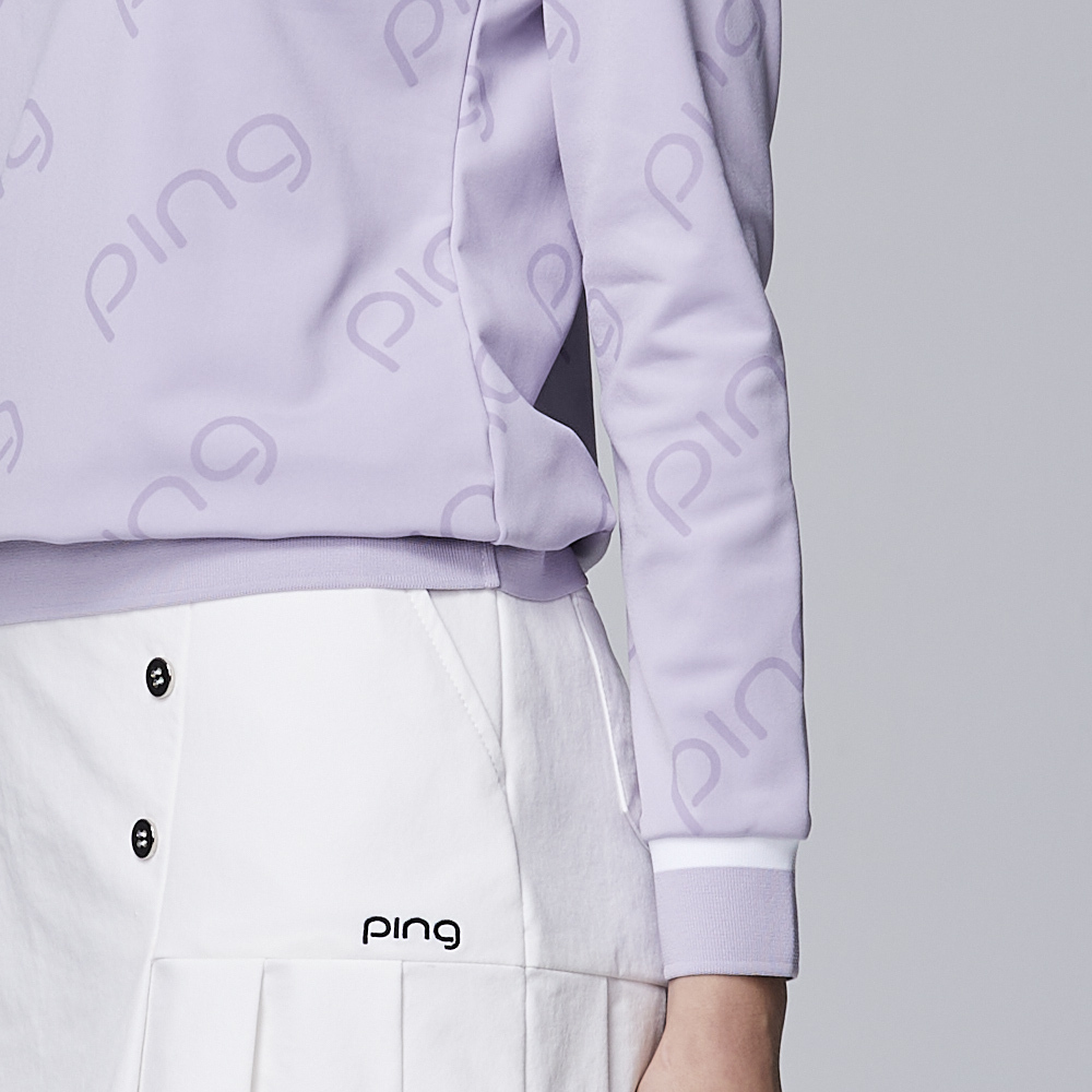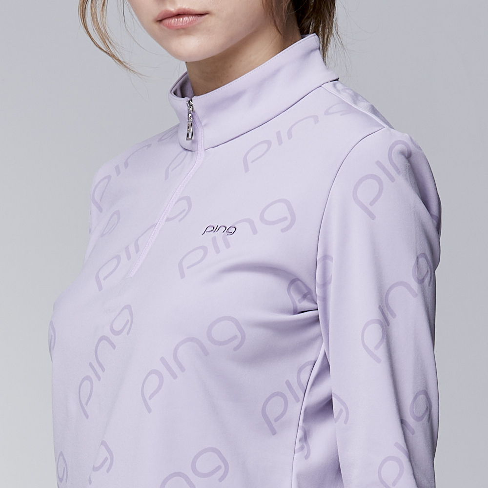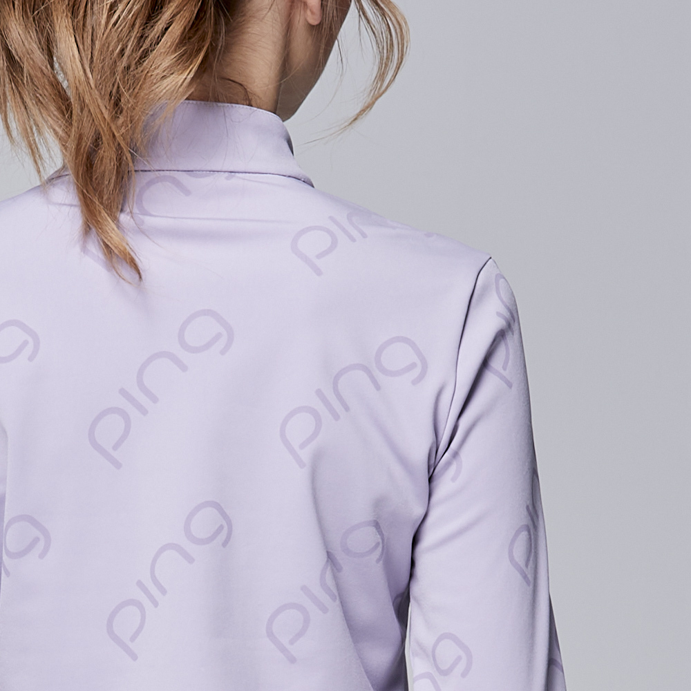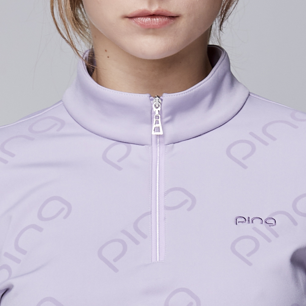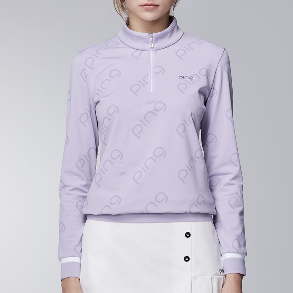 【PING】女款斜體LOGO立領長袖休閒POLO衫-淺紫 / RA23215-63