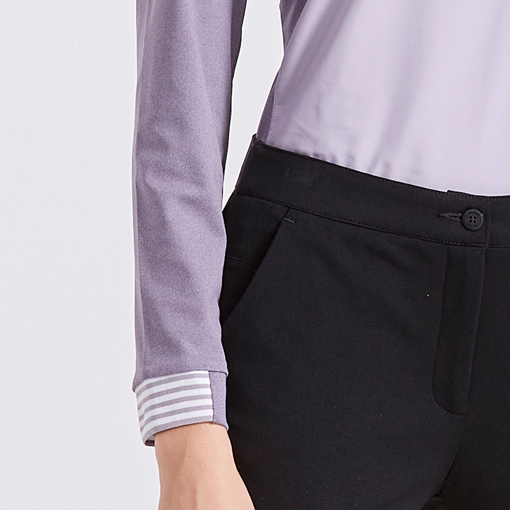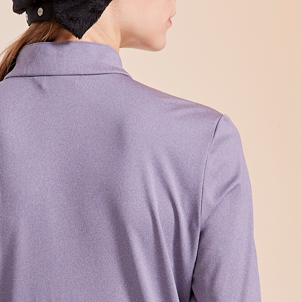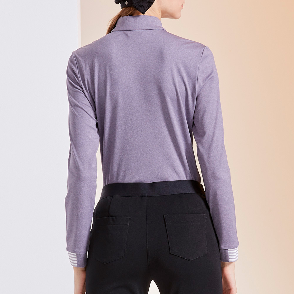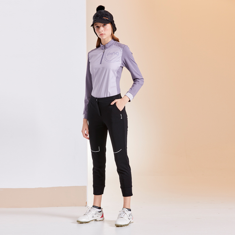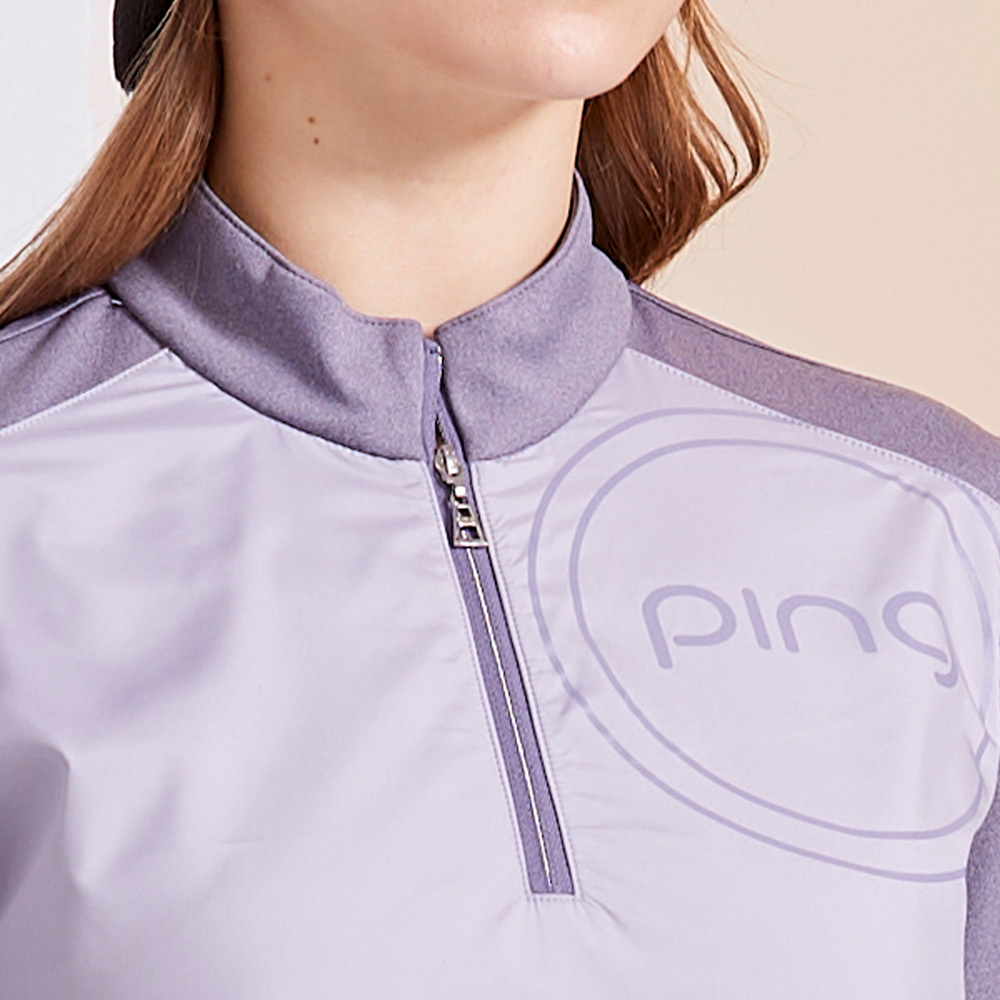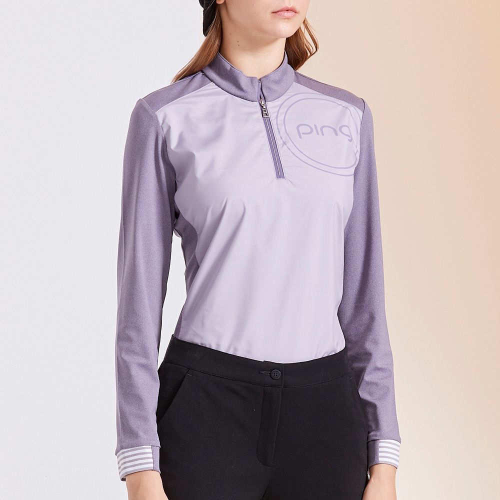 【PING】女款異素材剪接吸濕排汗立領長袖POLO衫-紫 / RA23216-66