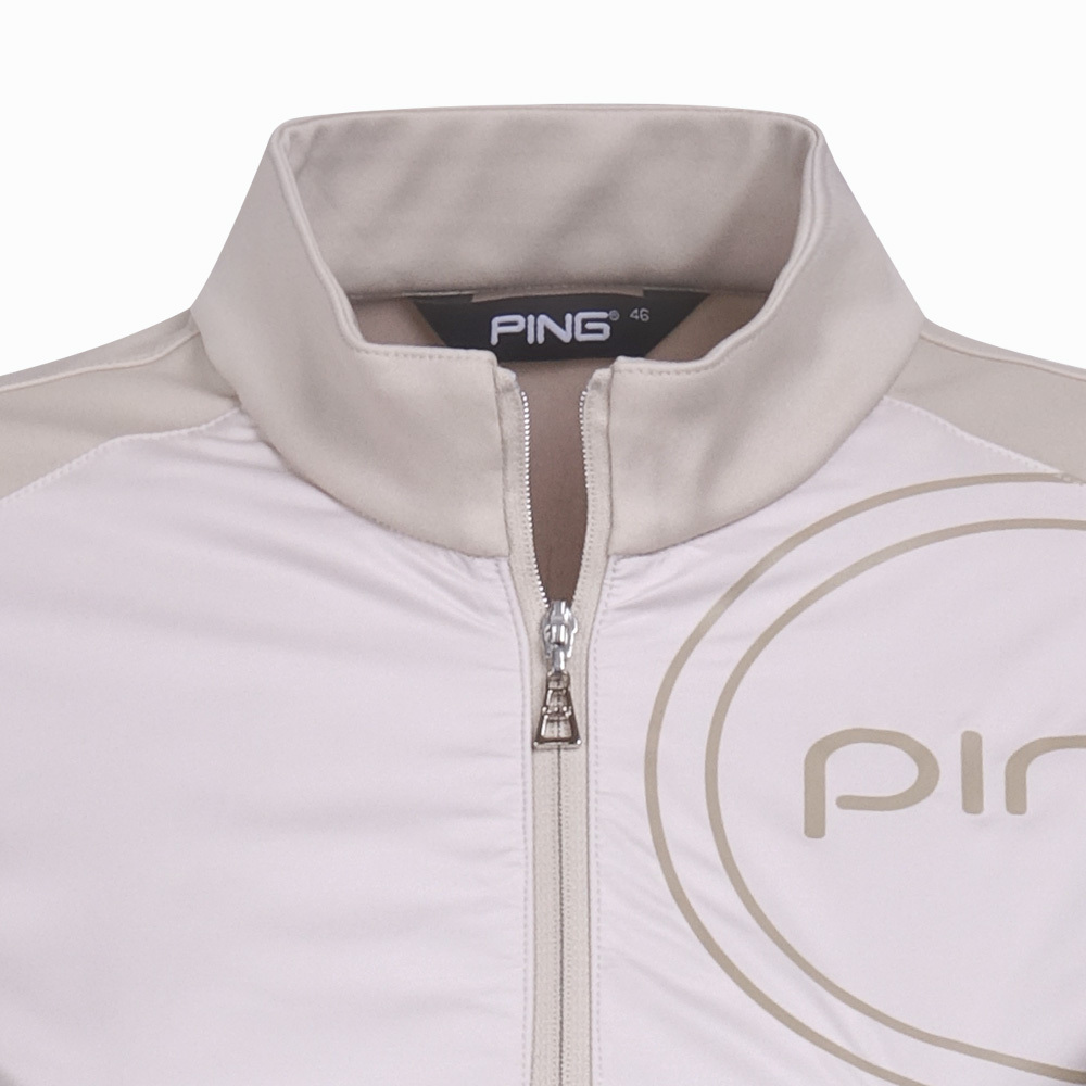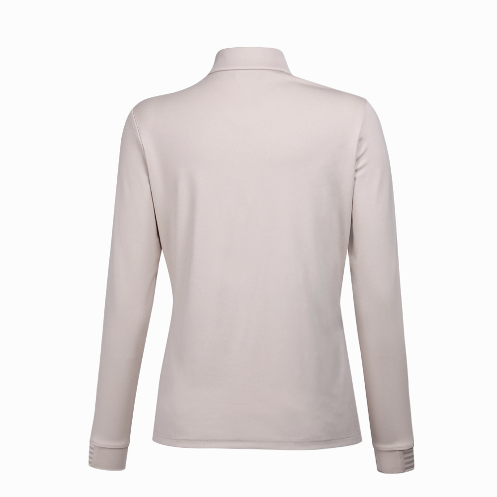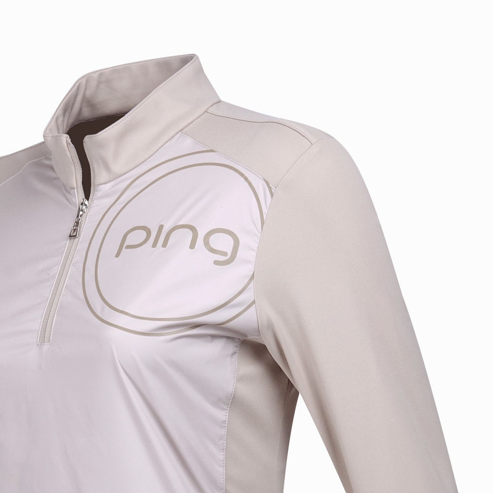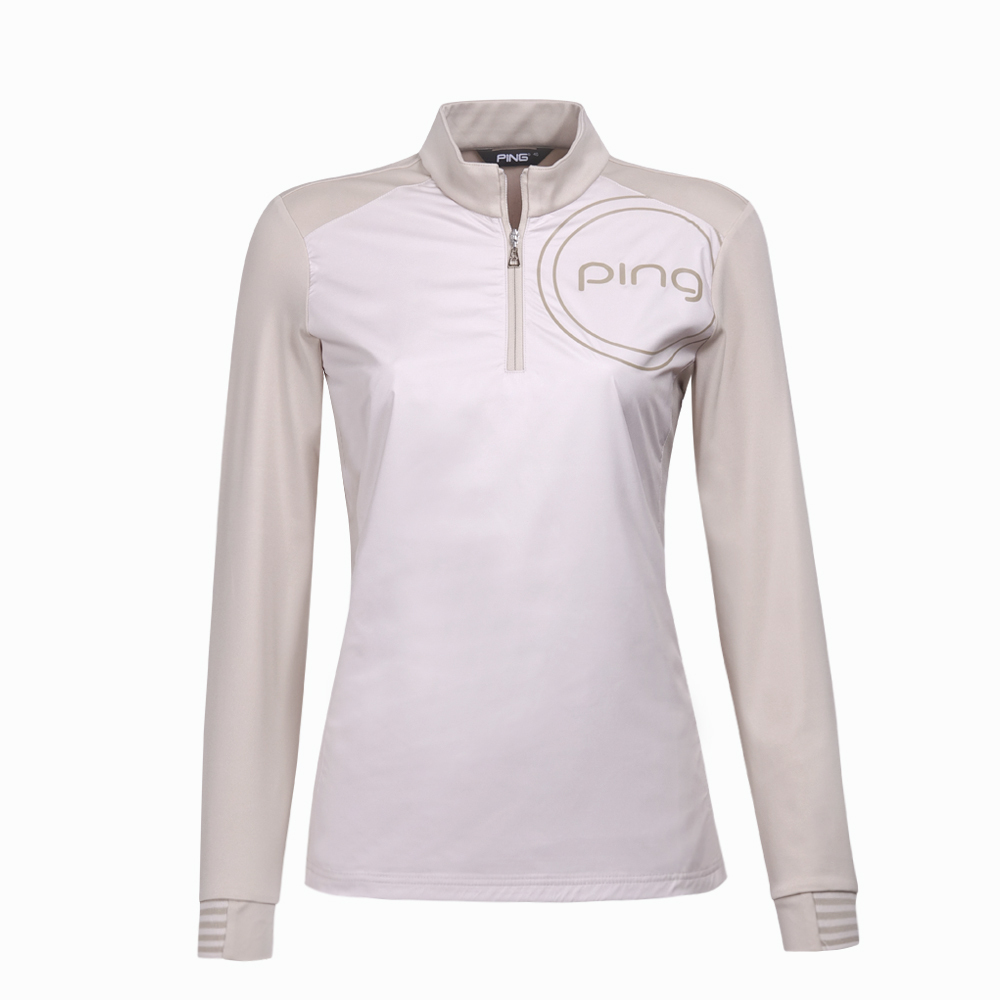 【PING】女款異素材剪接吸濕排汗立領長袖POLO衫-卡其 / RA23216-75