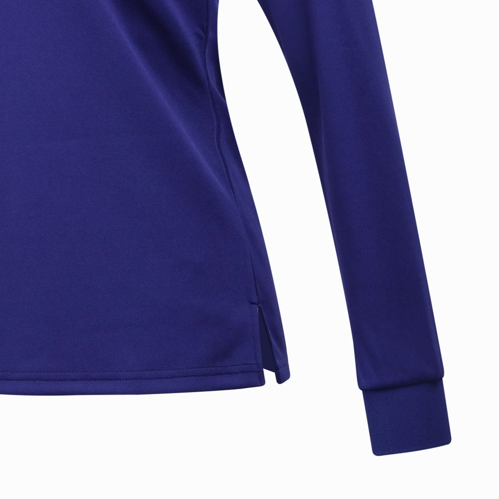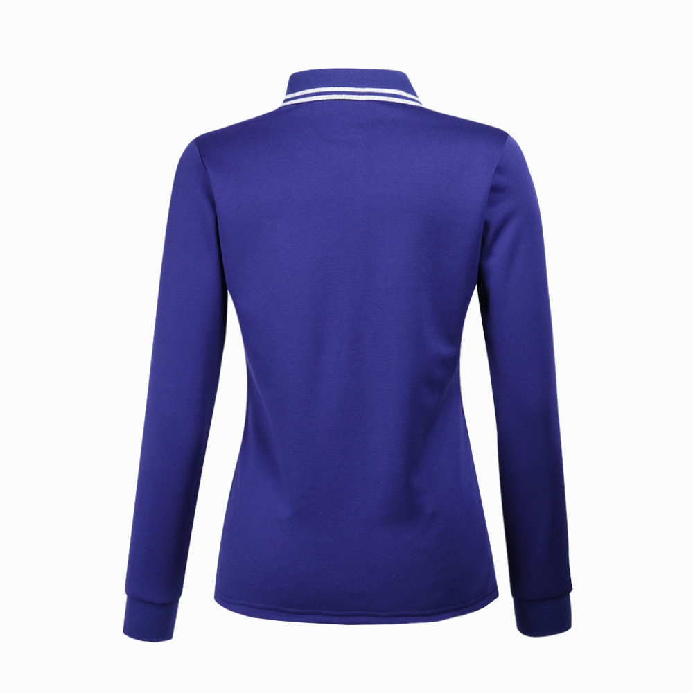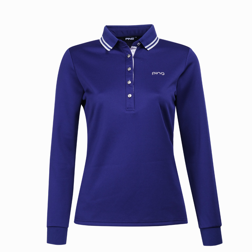 【PING】女款條紋領素面吸濕排汗薄長袖POLO衫-藍 / RA23290-56