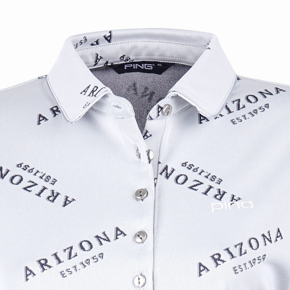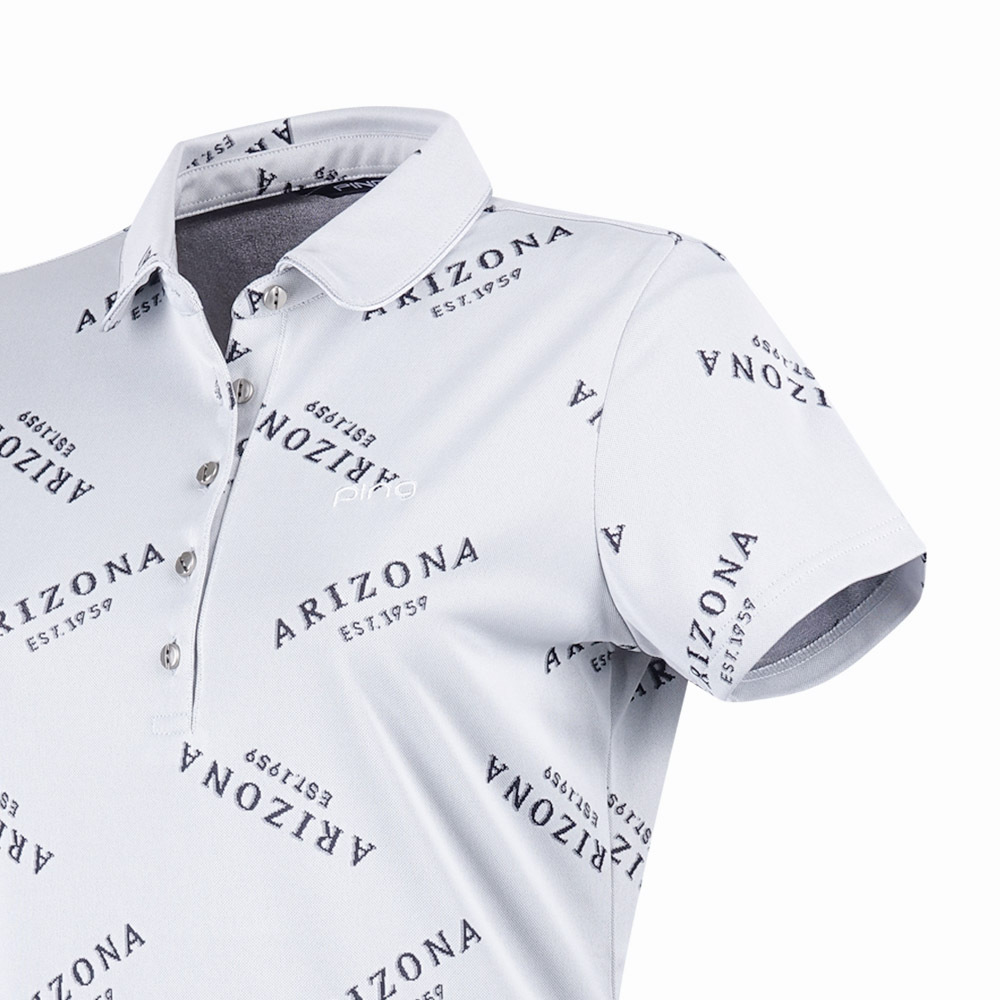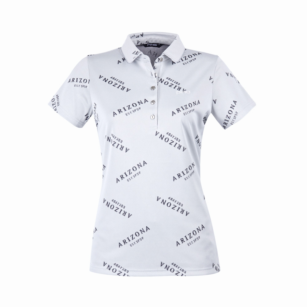 【PING】女款文字緹花吸濕排汗短袖POLO衫-灰 / RA24101-83