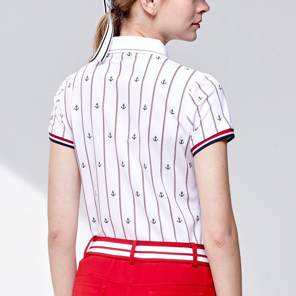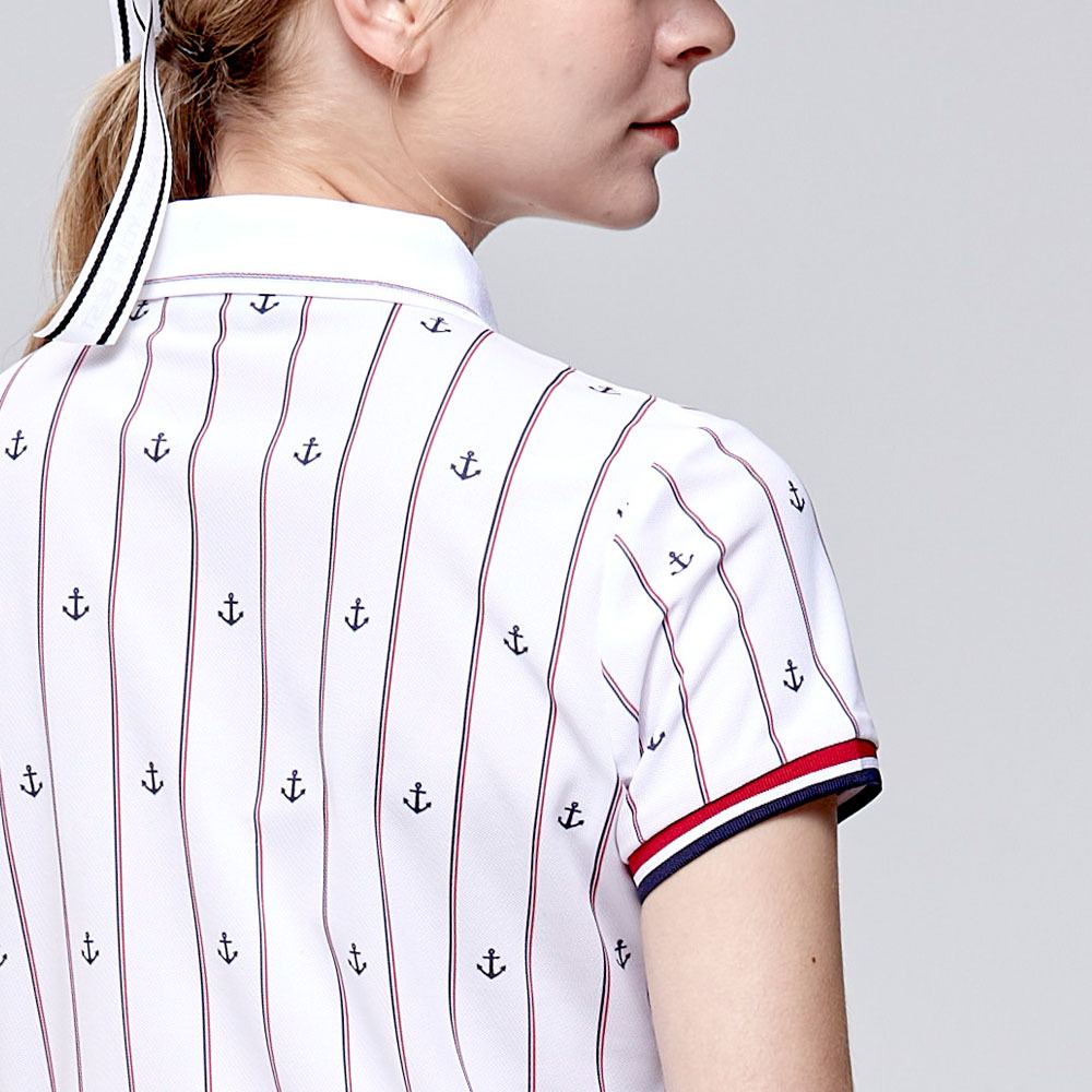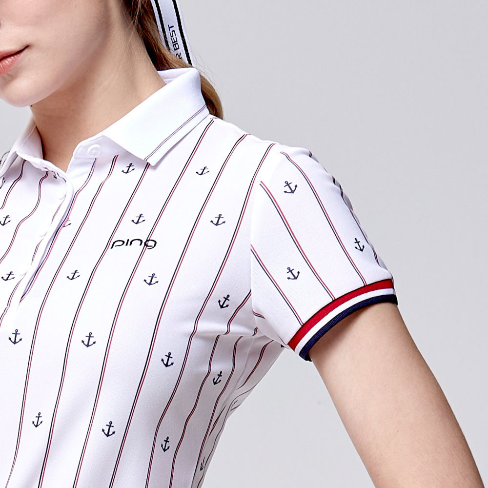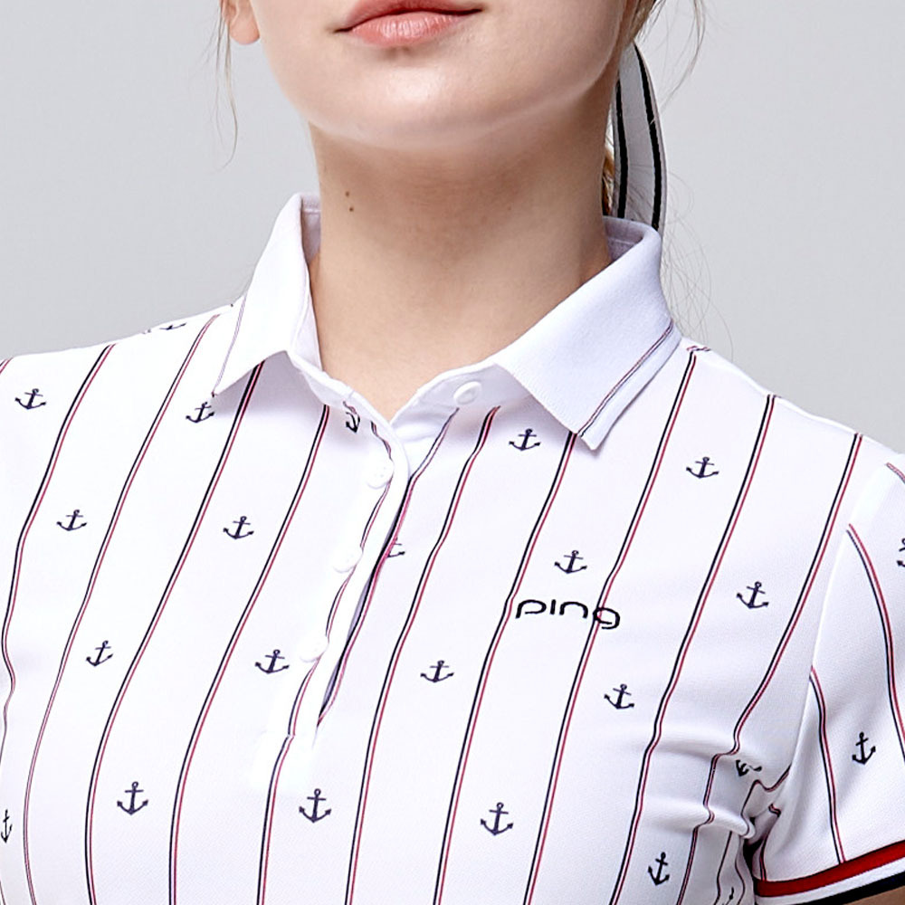 【PING】女款直條海錨吸濕排汗抗UV短袖POLO衫-白 / RA24107-87