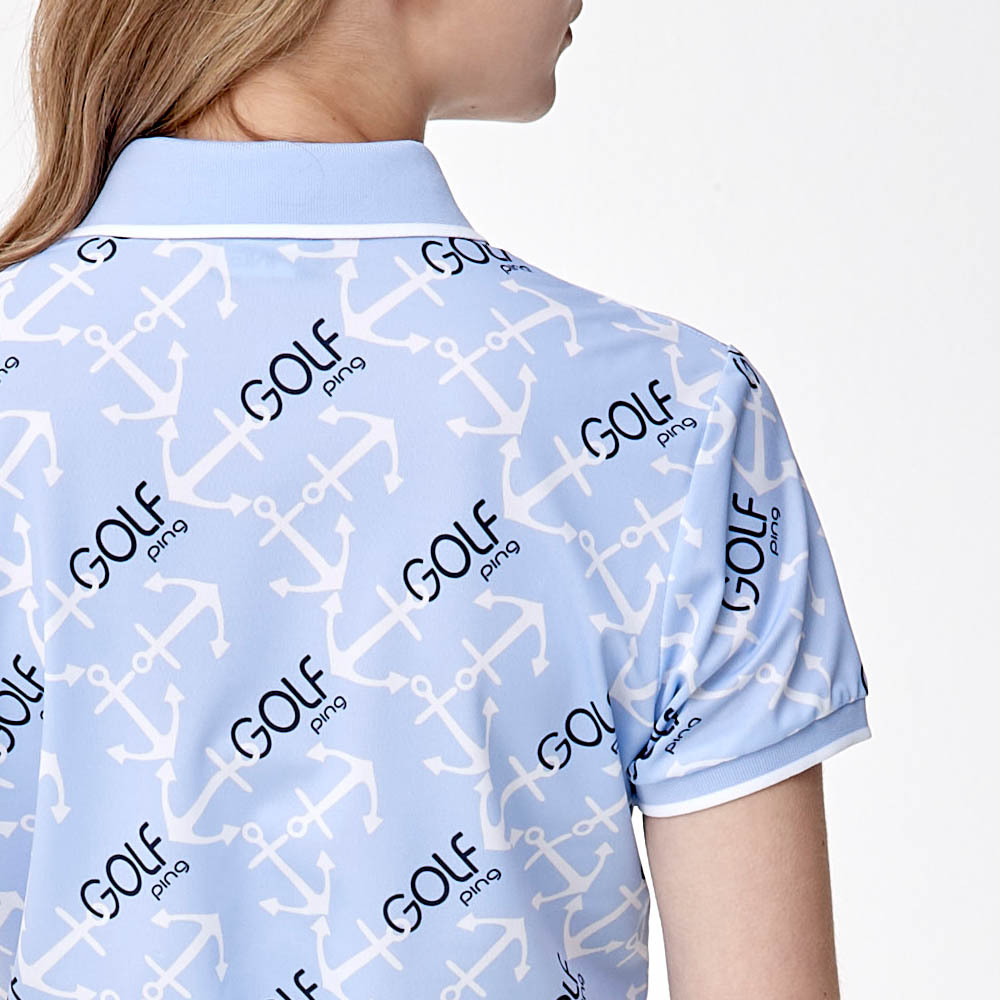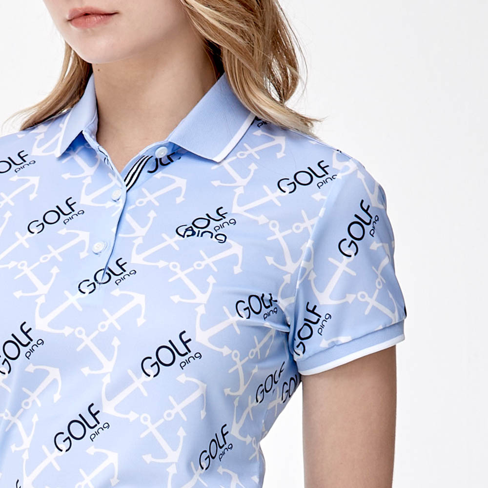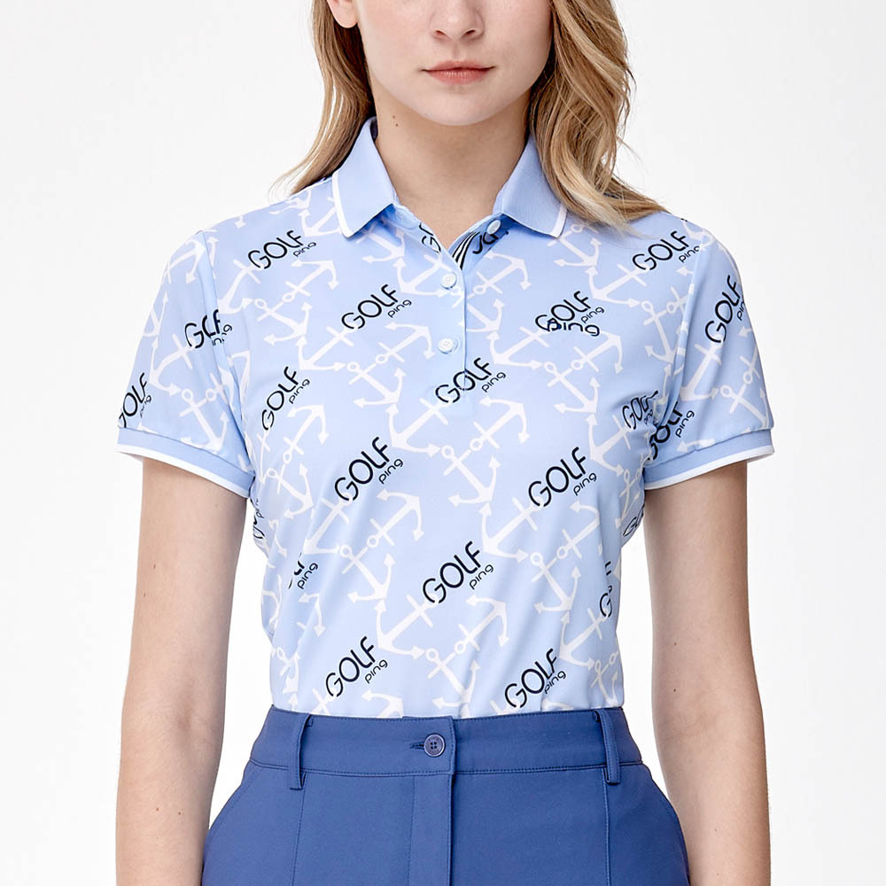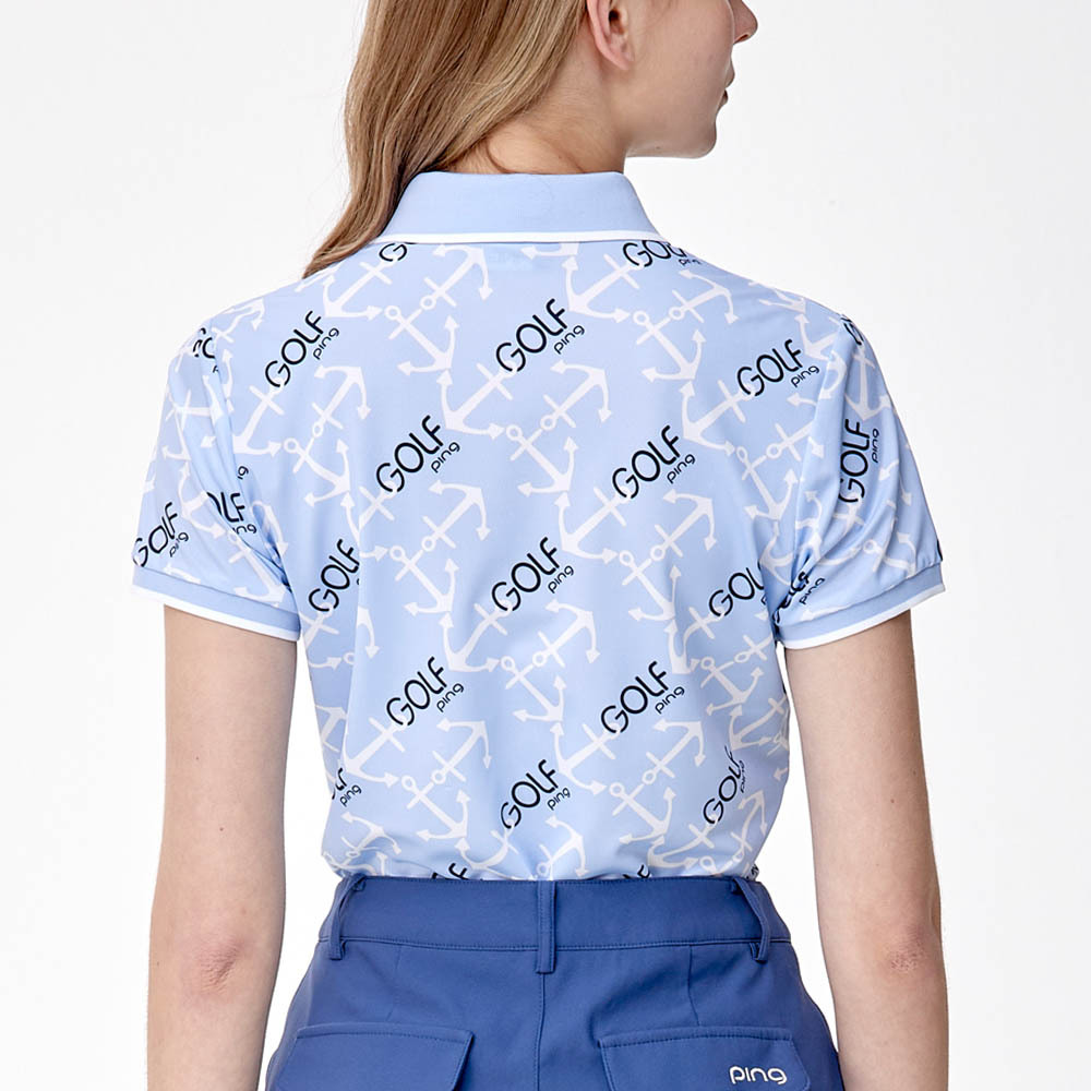 【PING】女款GOLF海錨吸濕排汗抗UV短袖POLO衫-藍 / RA24108-55