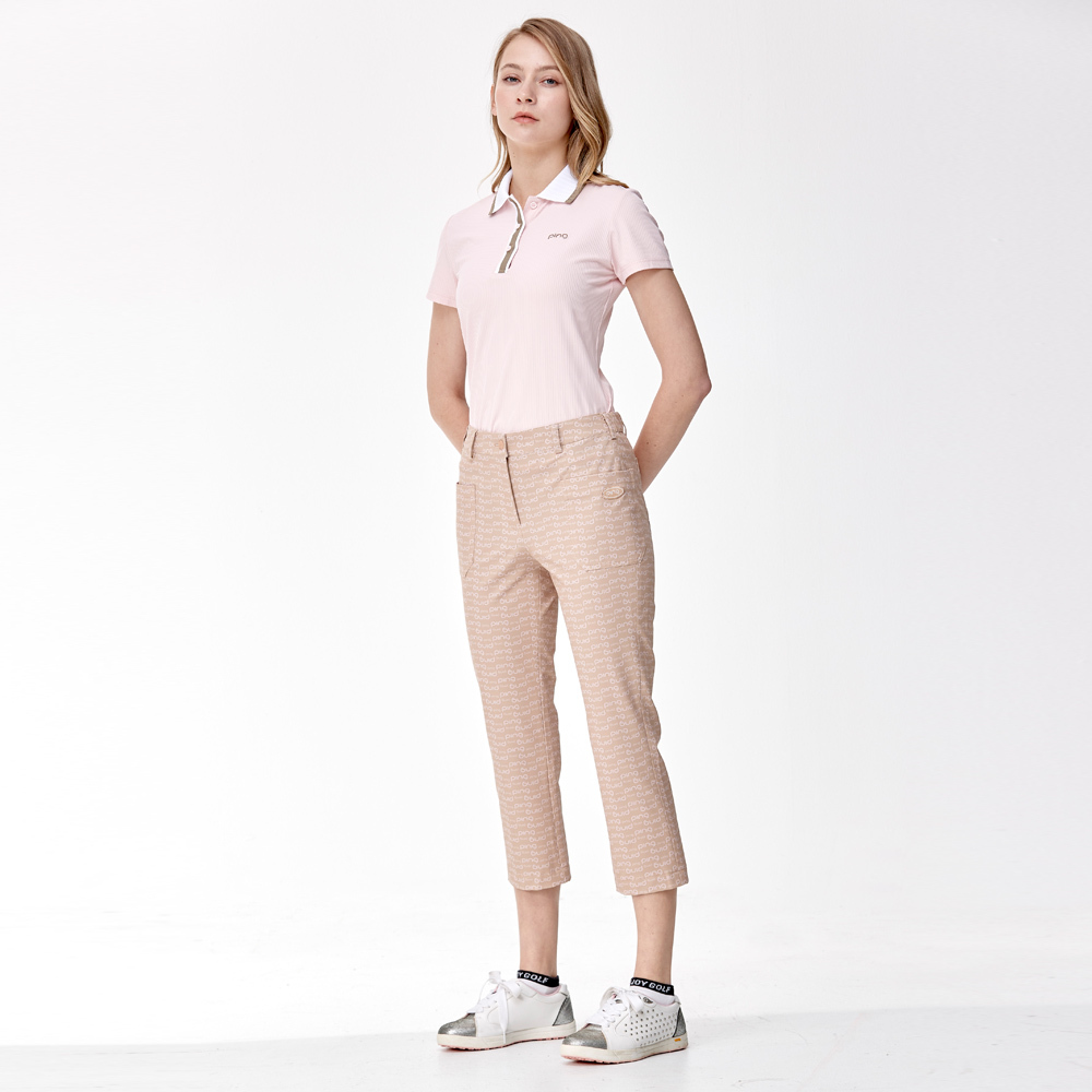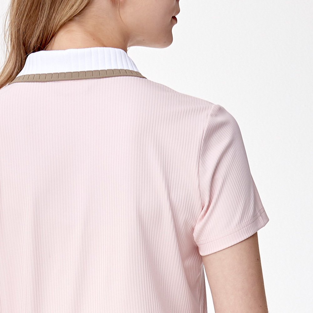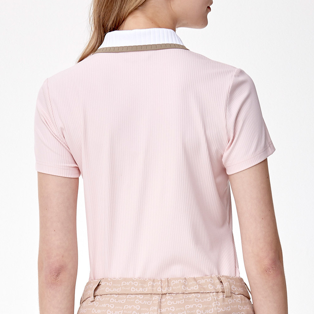 【PING】女款抽針羅紋高爾夫短袖POLO衫-粉橘 / RA24110-23