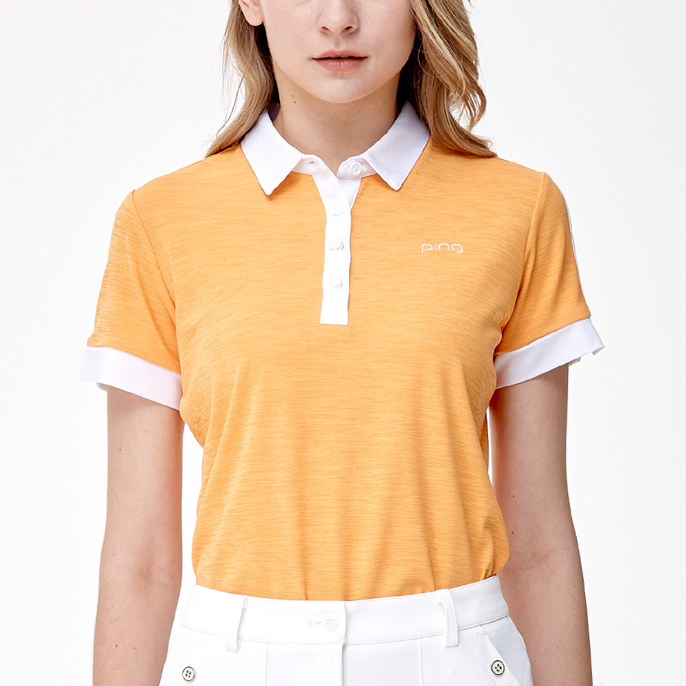 【PING】女款透氣吸濕排汗高爾夫短袖POLO衫-橘 / RA24111-25