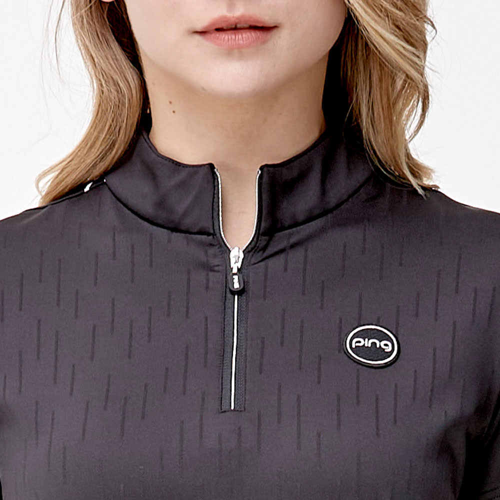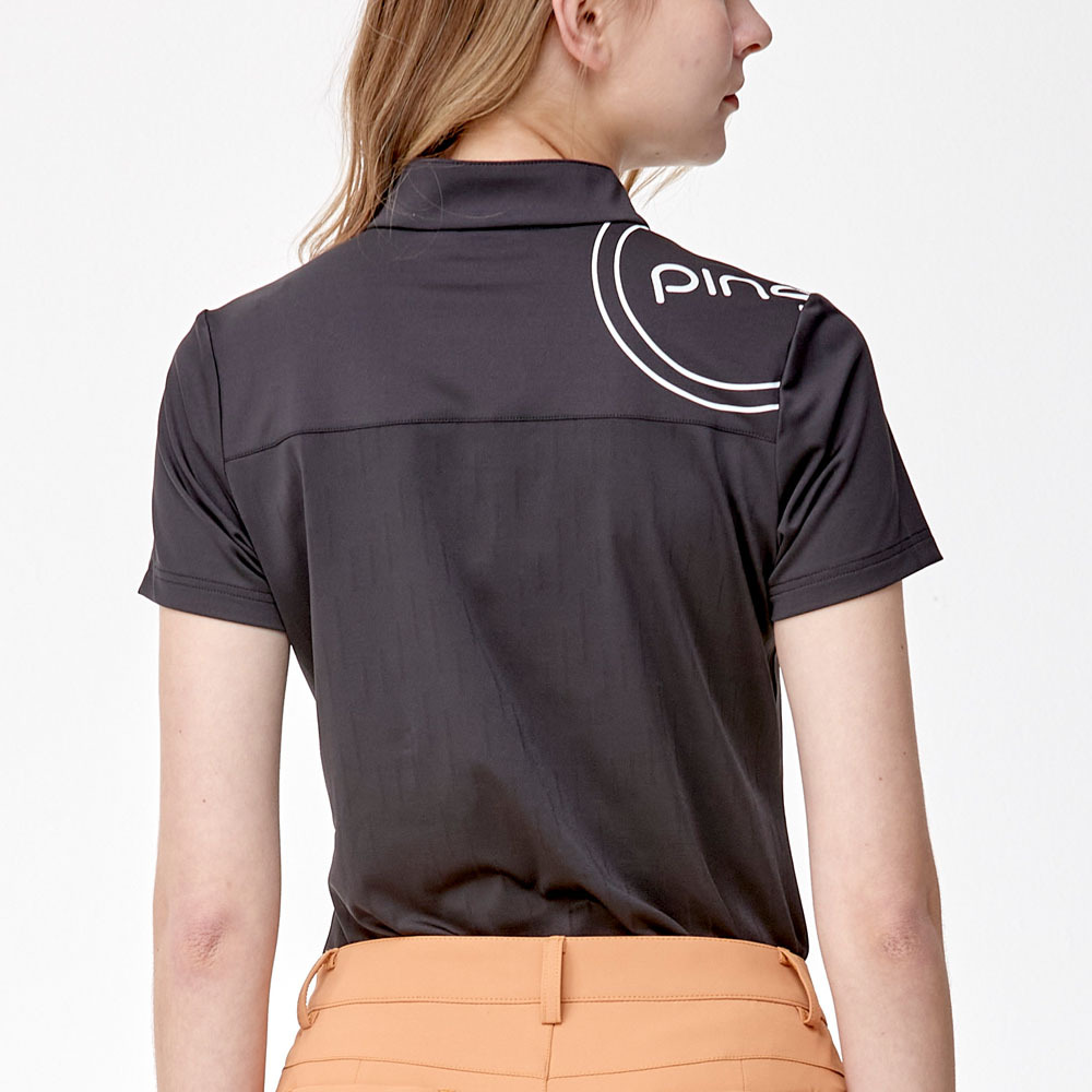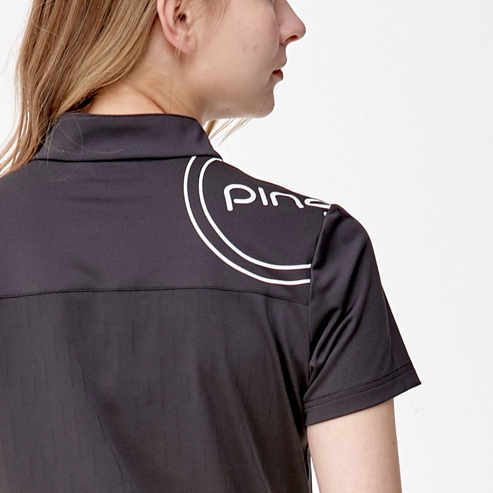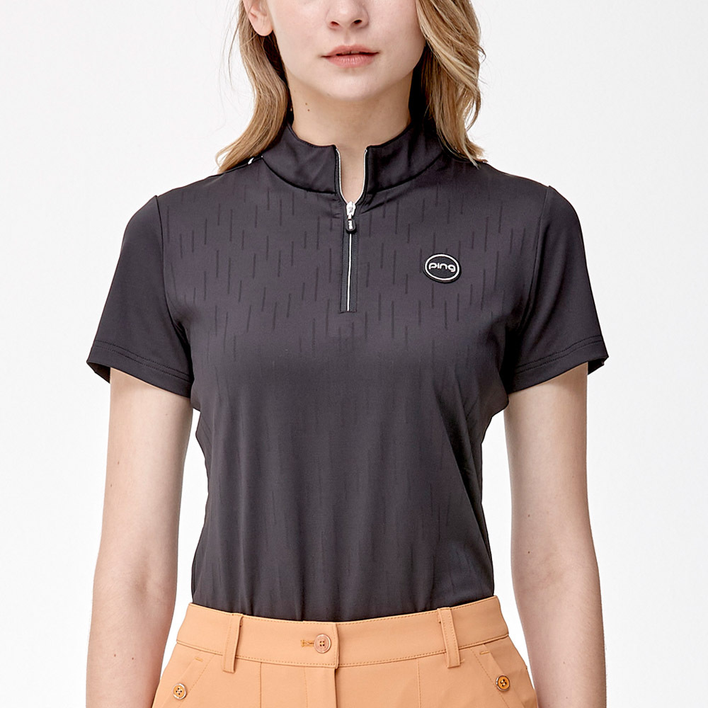 【PING】女款單面緹花吸濕排汗高爾夫立領短袖上衣-黑 / RA24118-88
