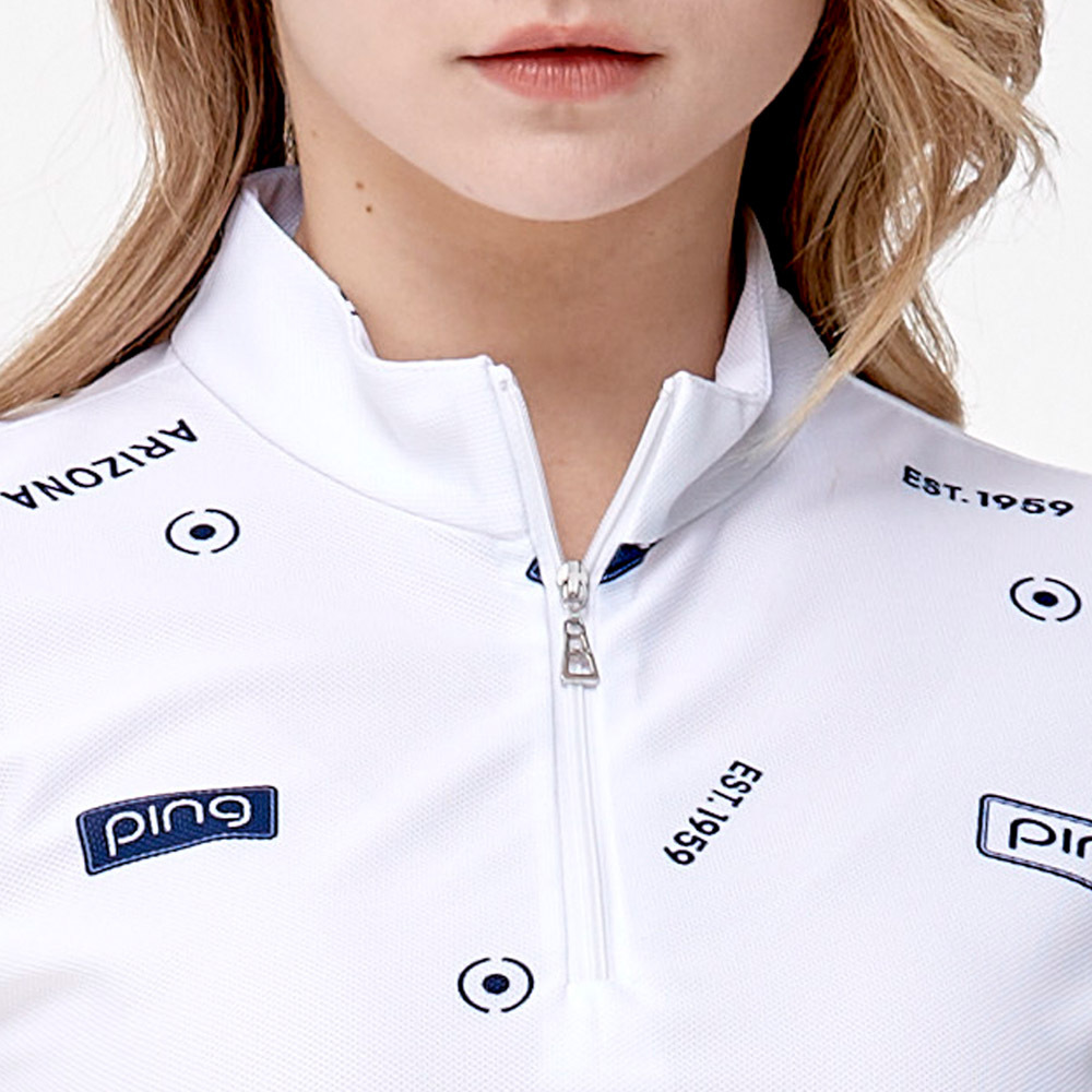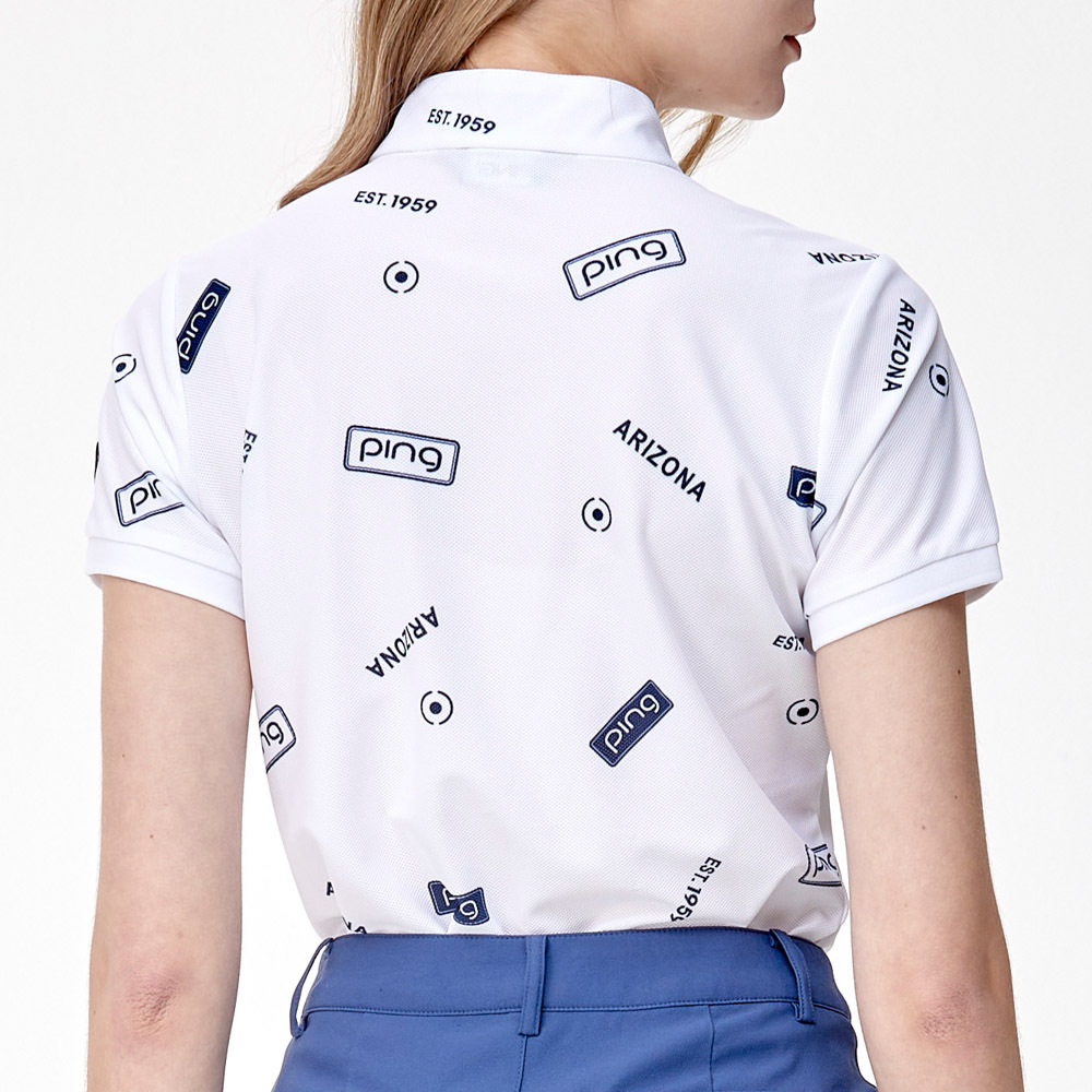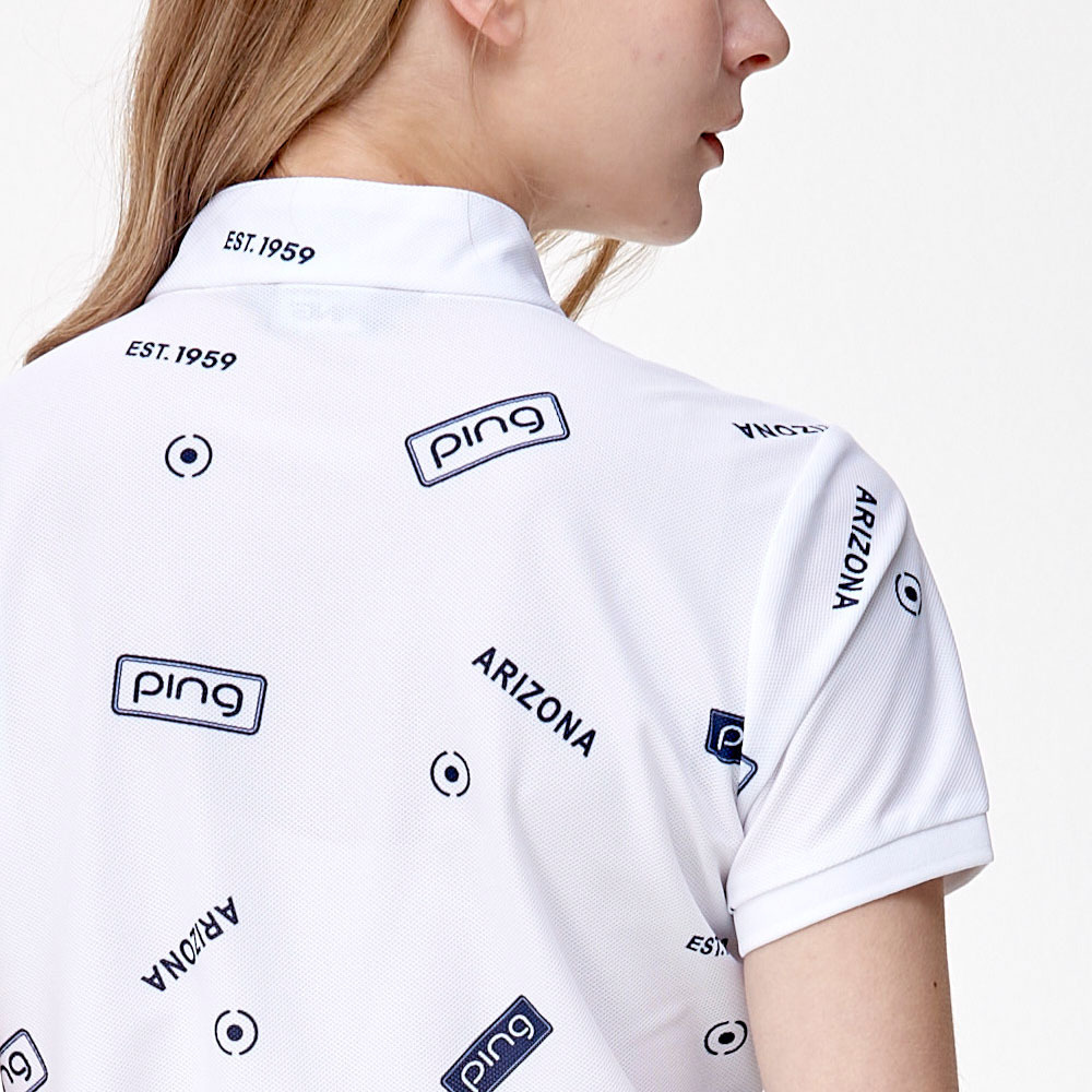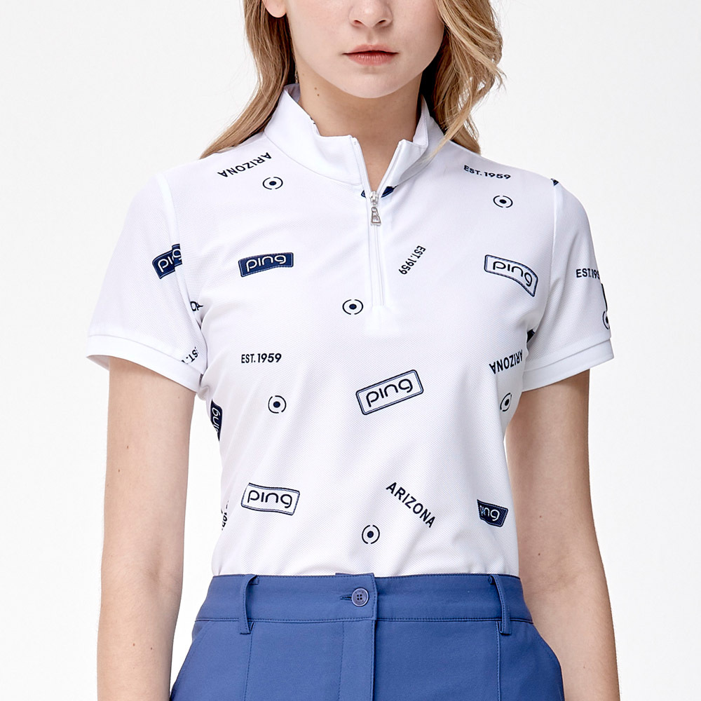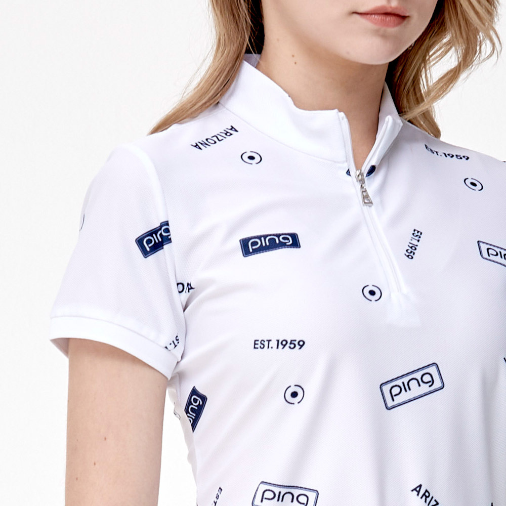 【PING】女款LOGO吸濕排汗高爾夫立領短袖上衣-白 / RA24123-87