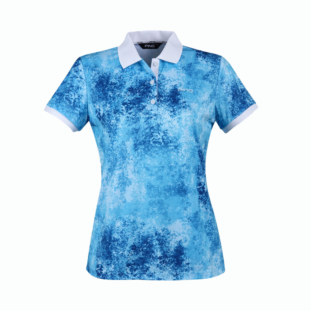 【PING】女款水漾吸濕排汗高爾夫短袖POLO衫-藍 / RA24192-55