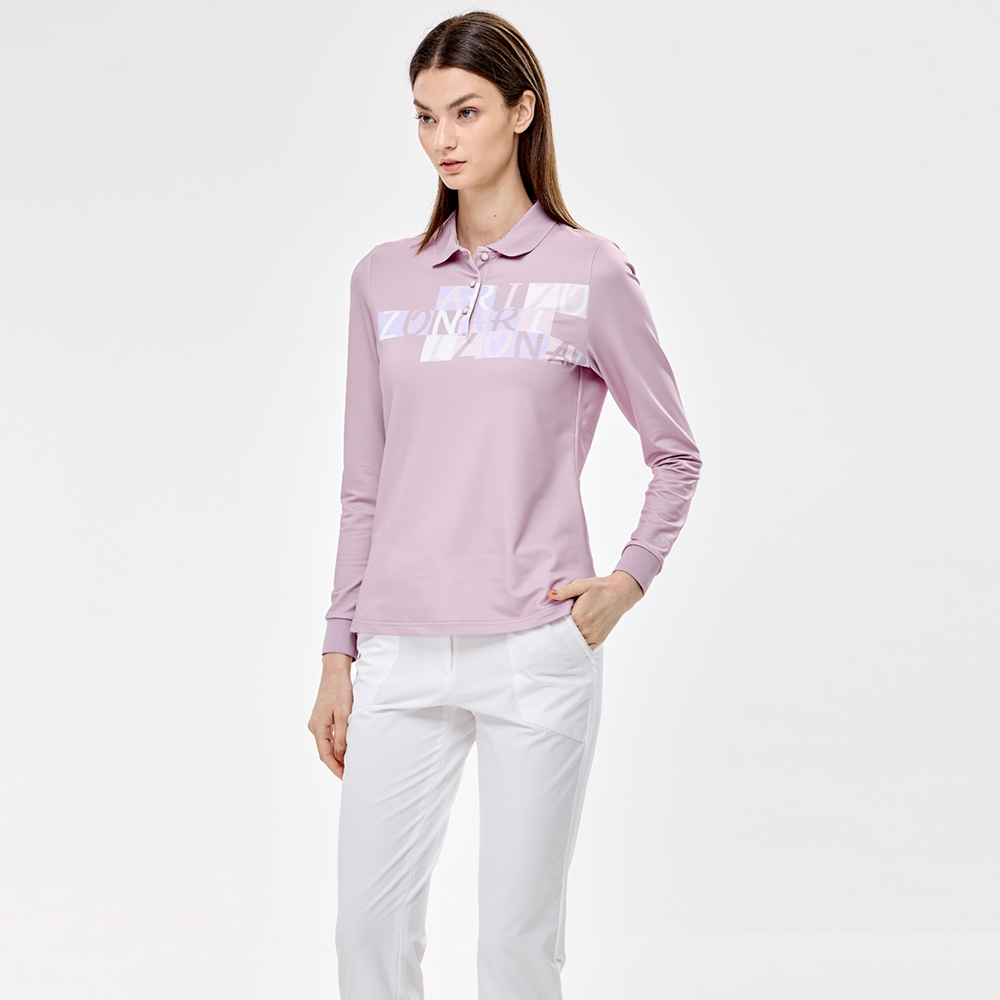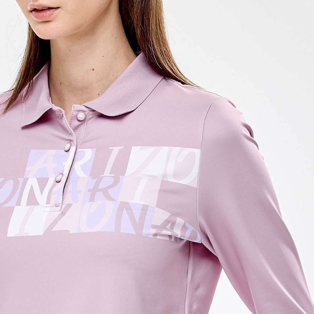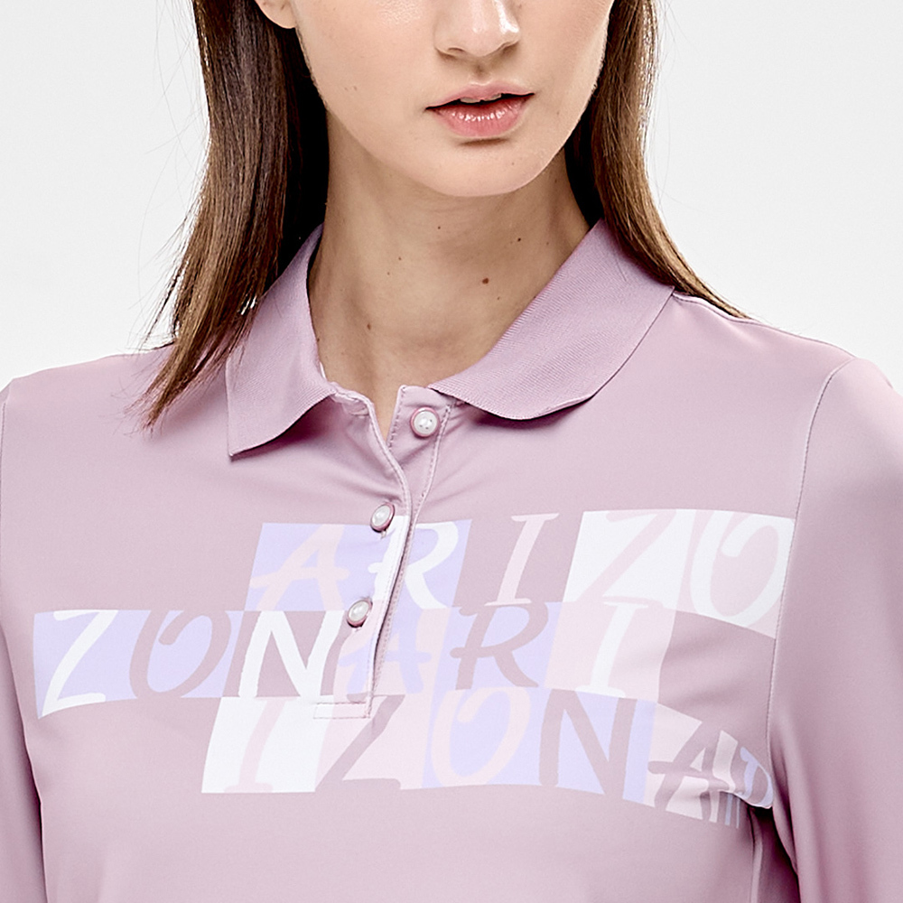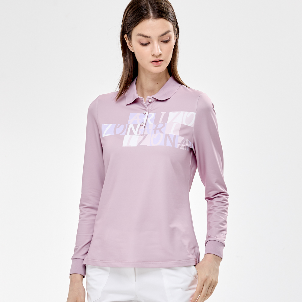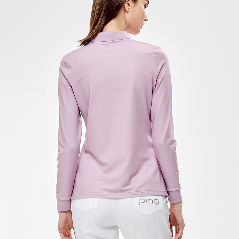 【PING】女款胸前字母吸濕排汗高爾夫薄長袖POLO衫-藕粉 / RA24201-15