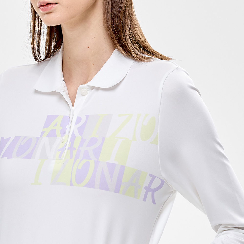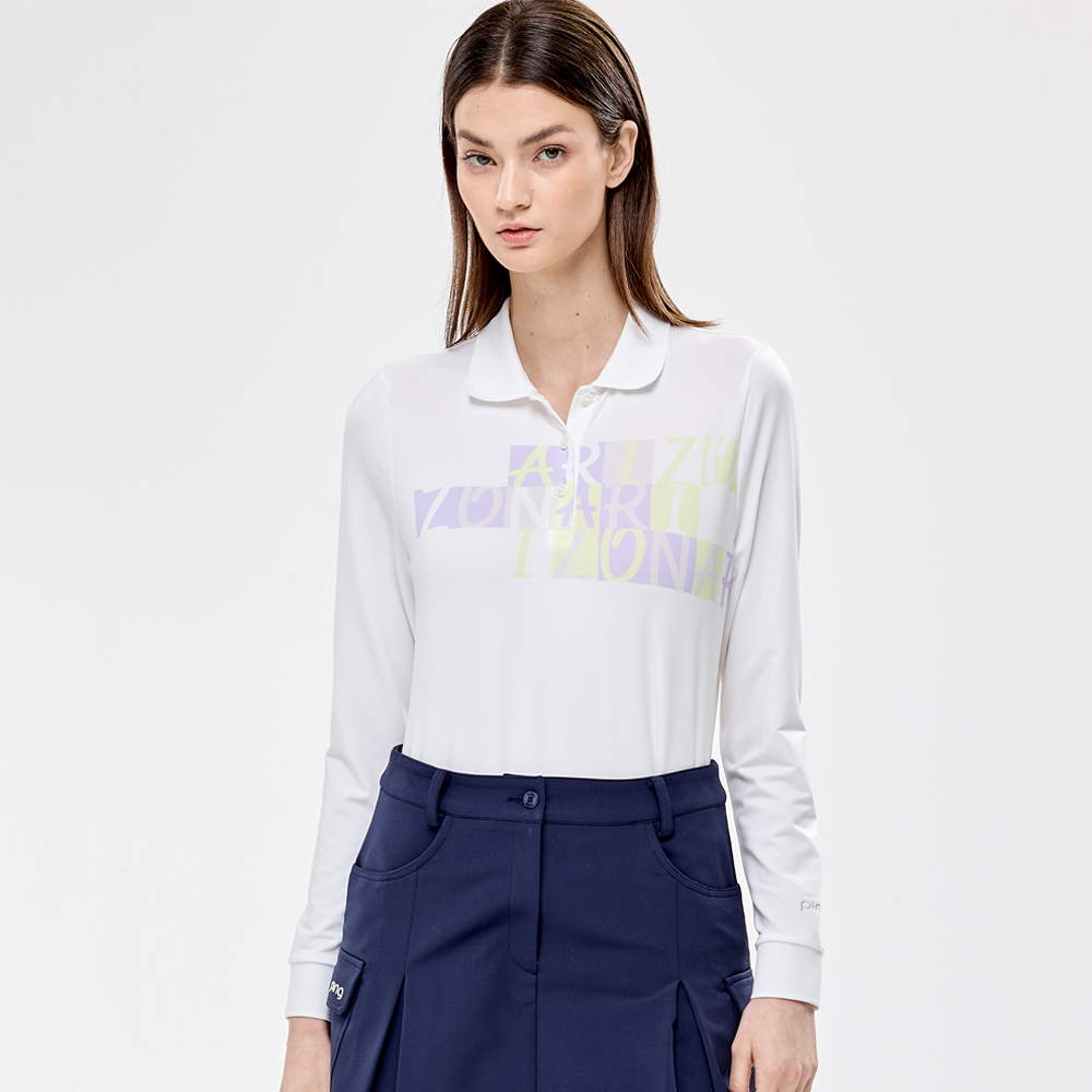 【PING】女款胸前字母吸濕排汗高爾夫薄長袖POLO衫-白 / RA24201-87