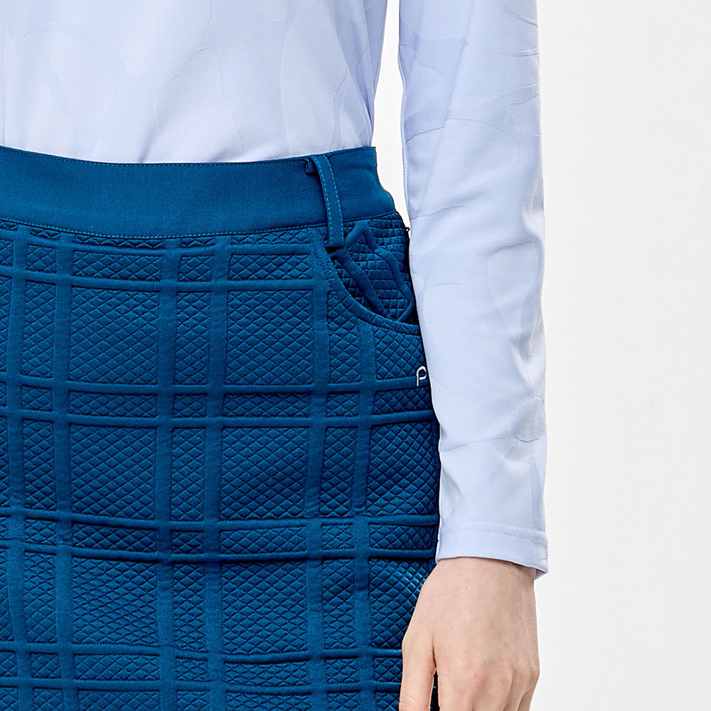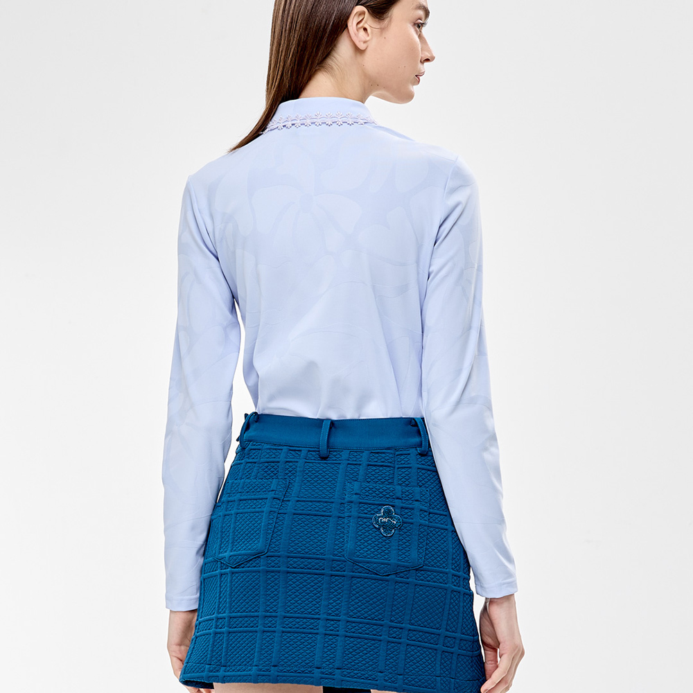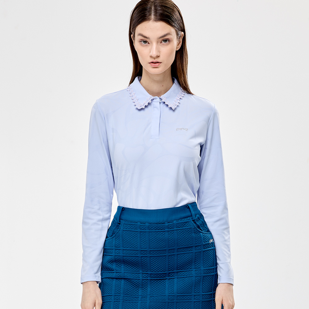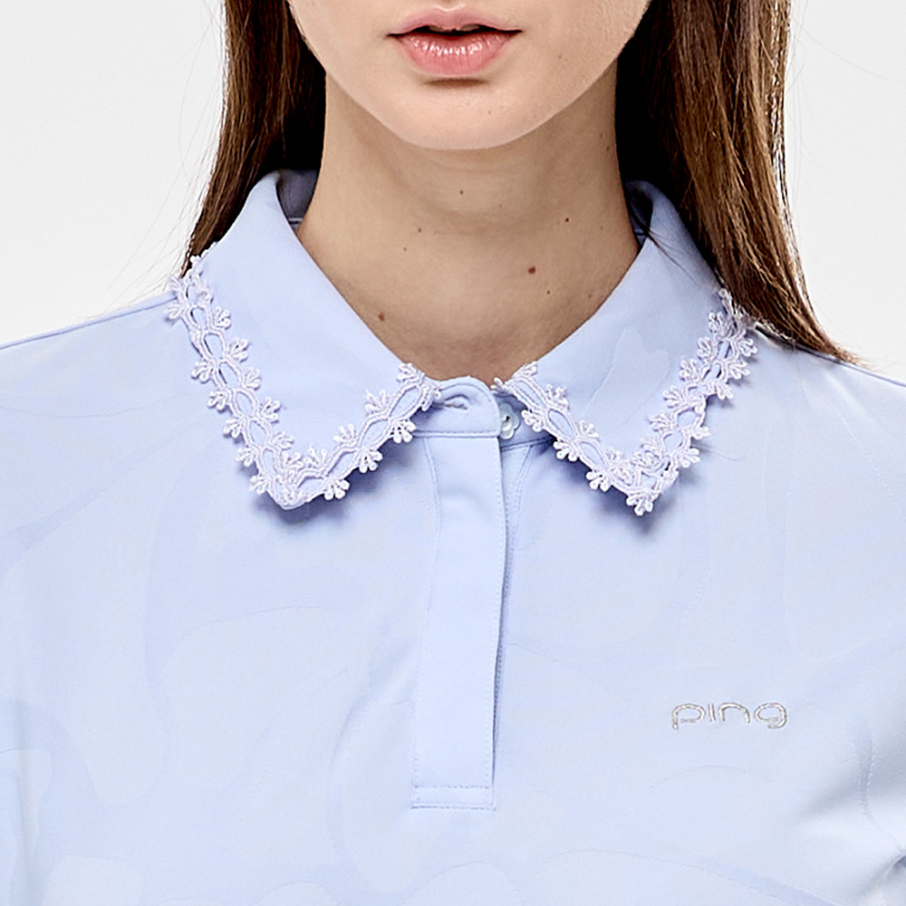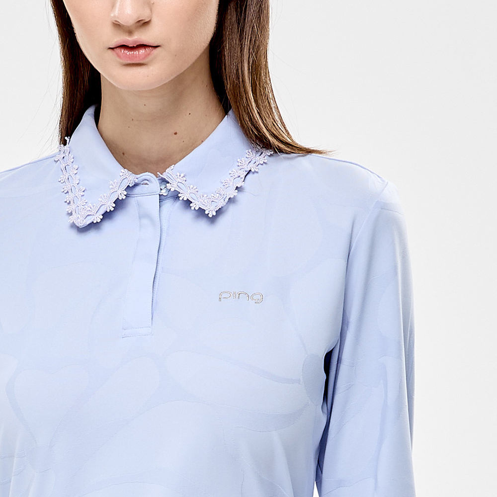 【PING】女款蕾絲領片緹花高爾夫薄長袖POLO衫-藍 / RA24206-53