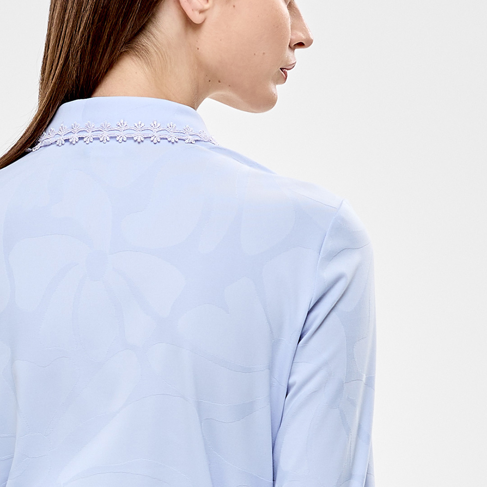 ●蕾絲領片細節,時尚又典雅