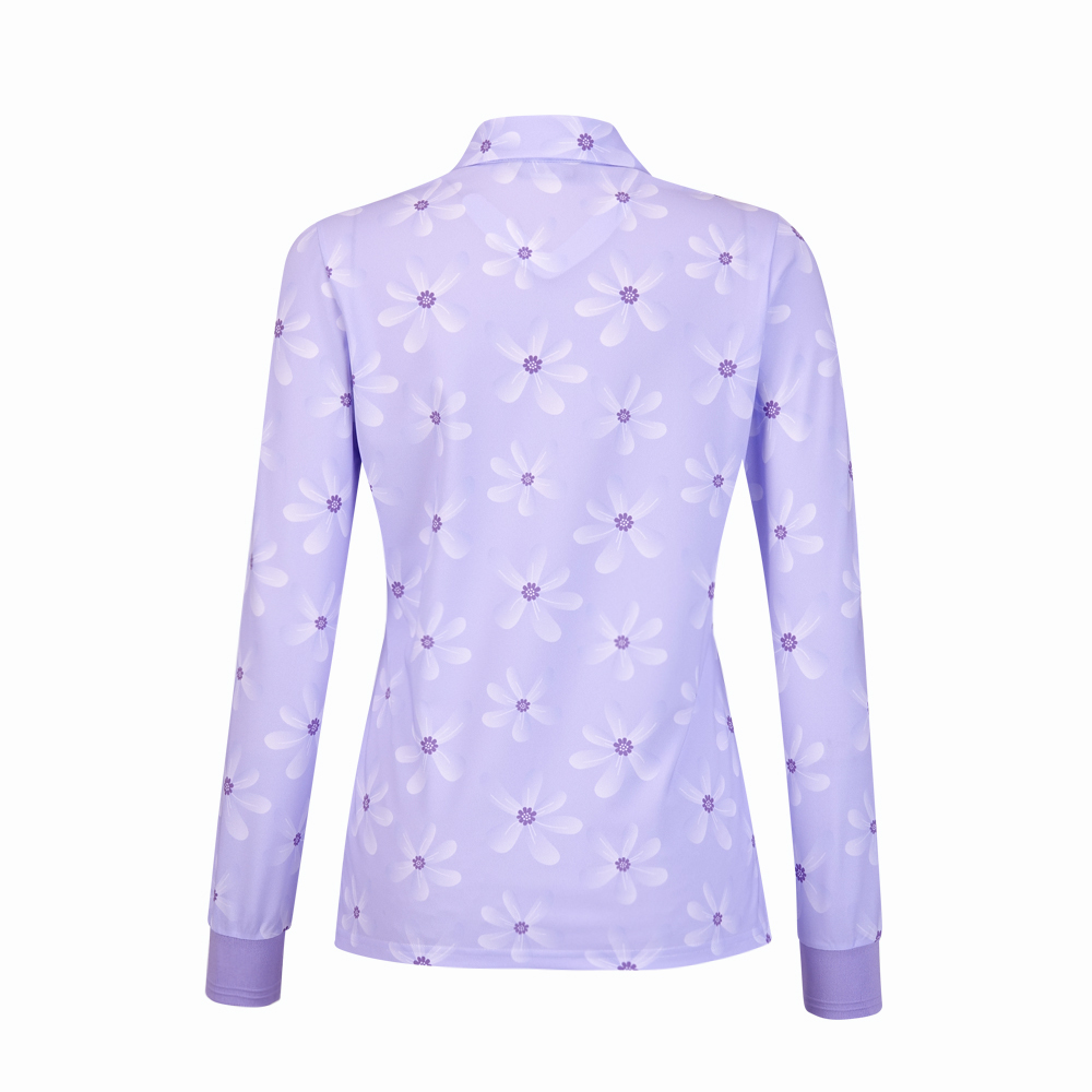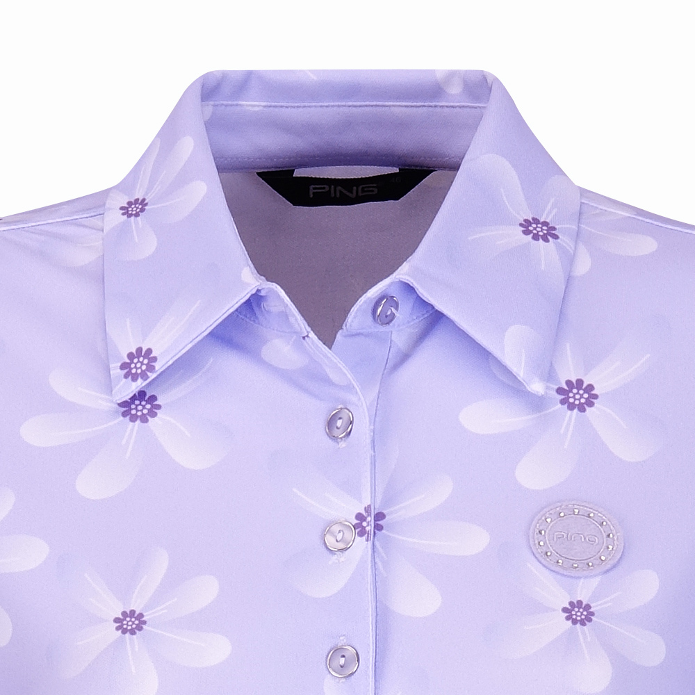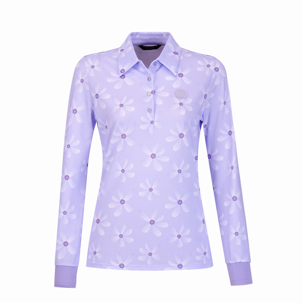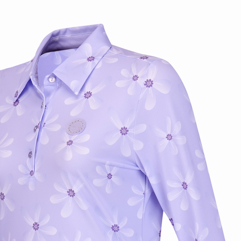 【PING】女款花朵高爾夫薄長袖POLO衫-淺紫 / RA24208-63