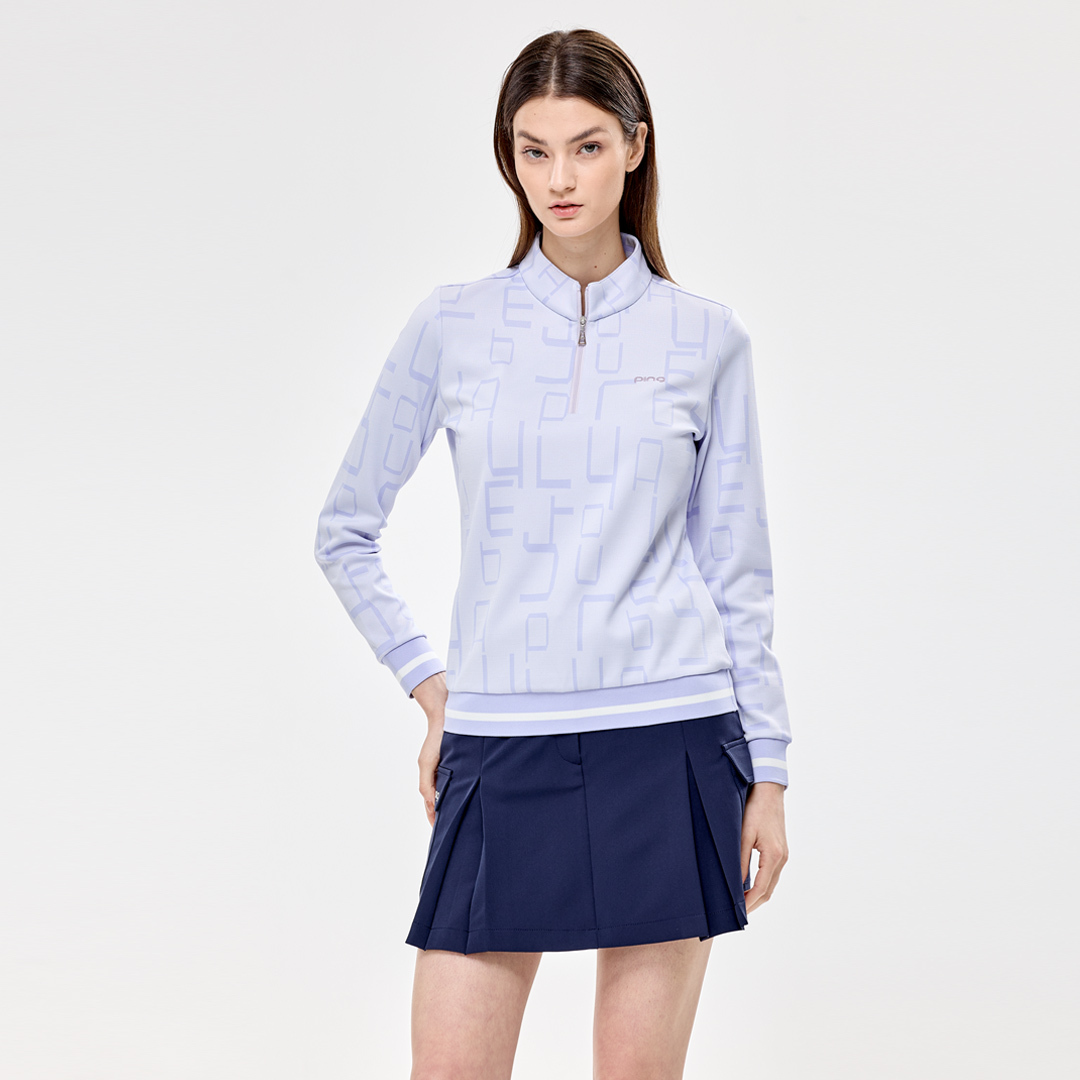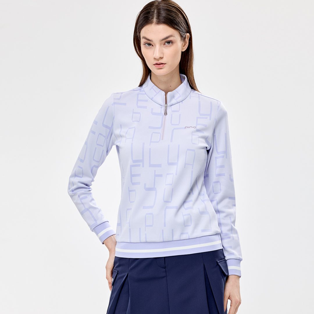 【PING】女款緹織字體下襬束口立領長袖刷毛上衣-淺紫 / RA24218-63