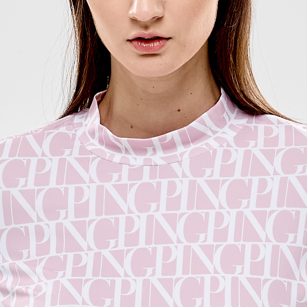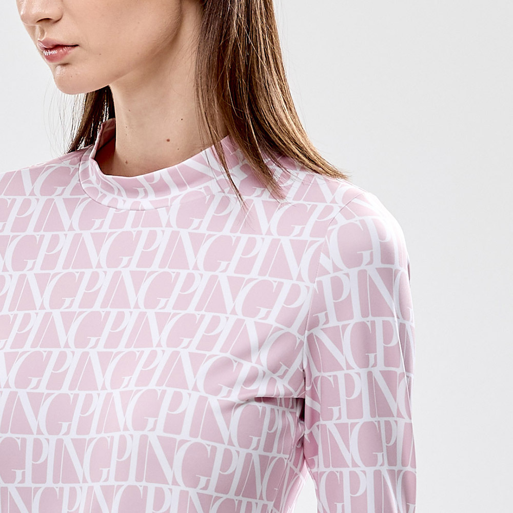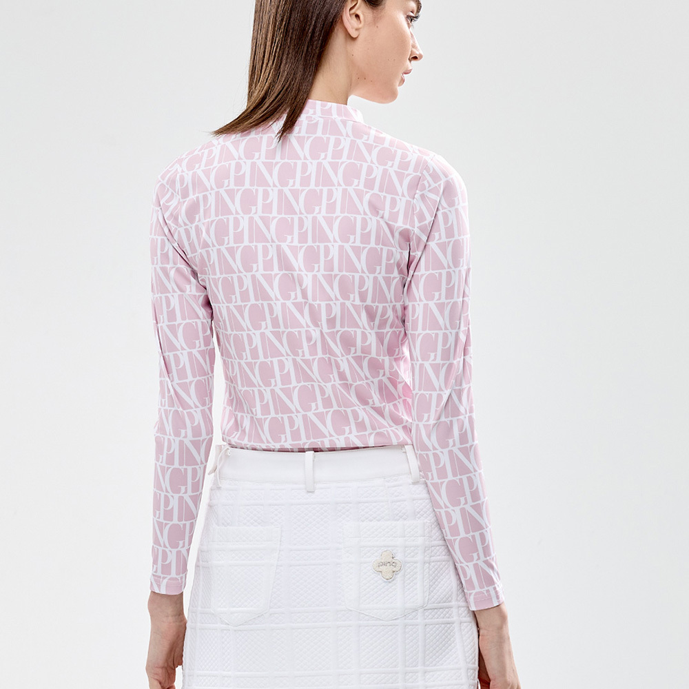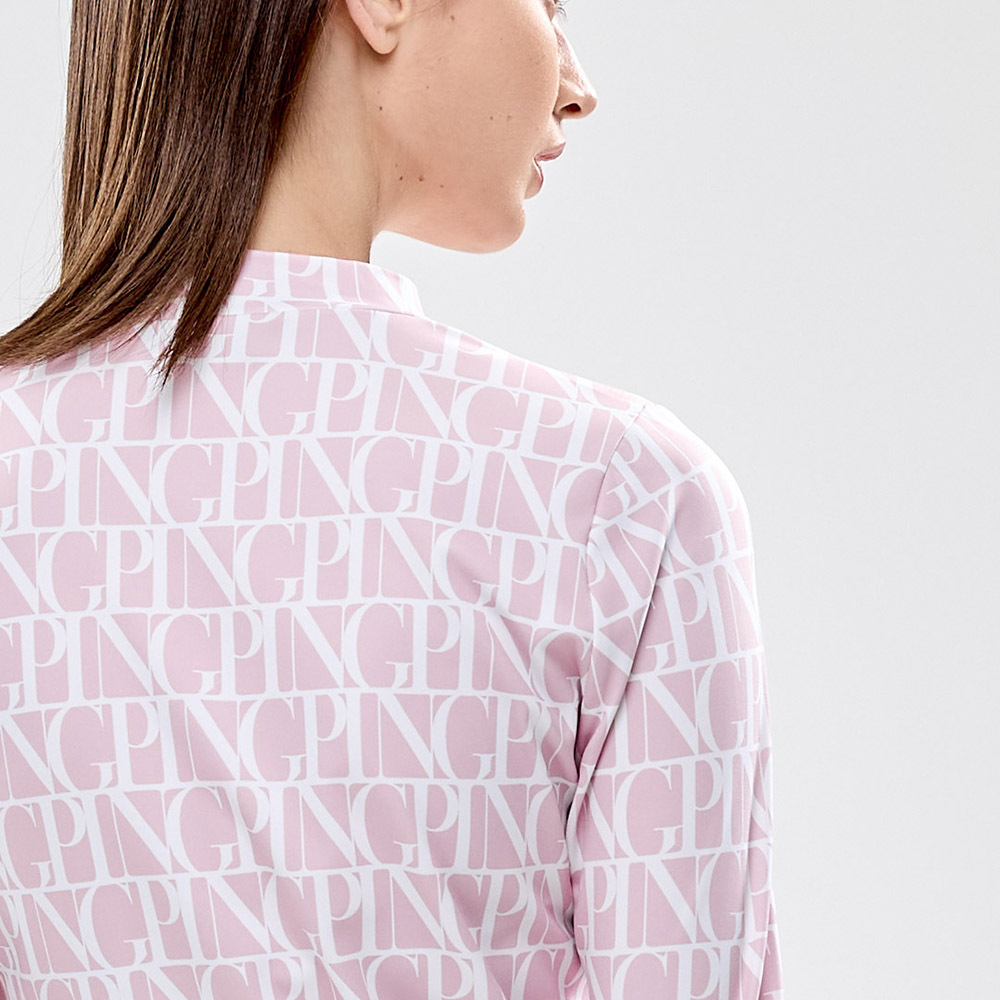 【PING】女款PING字吸濕排汗立領薄長袖上衣-粉 / RA24225-15