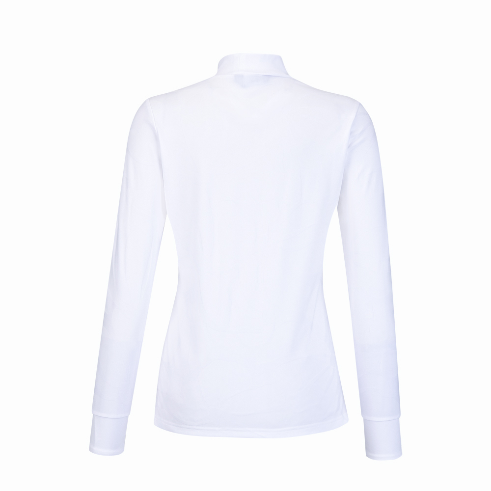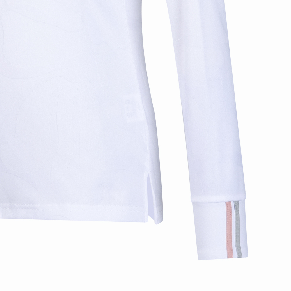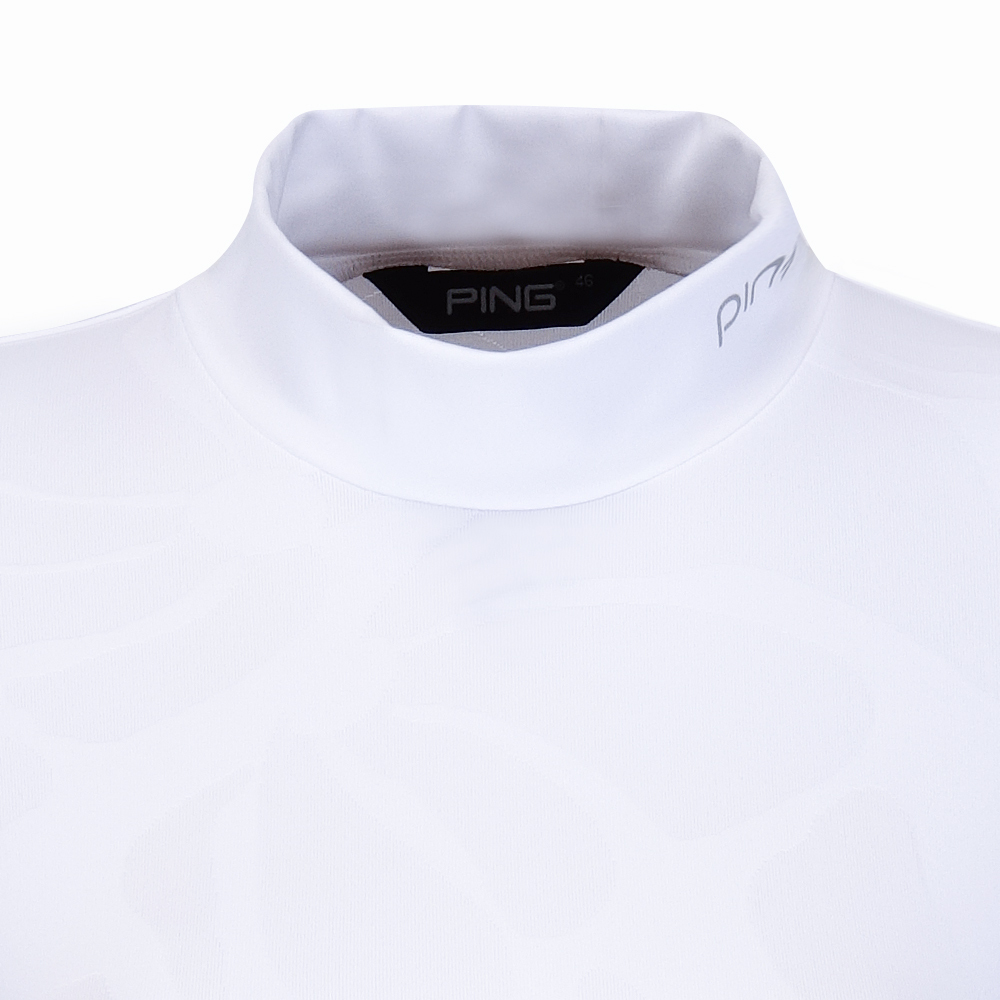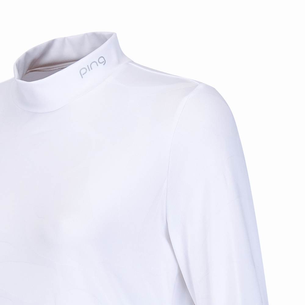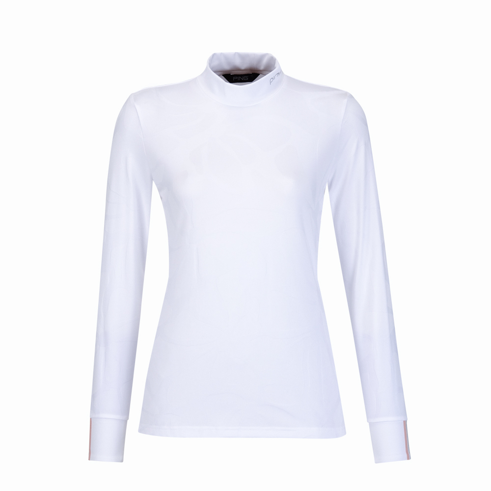 【PING】女款緹花吸濕排汗抗UV高領薄長袖上衣-白 / RA24226-73