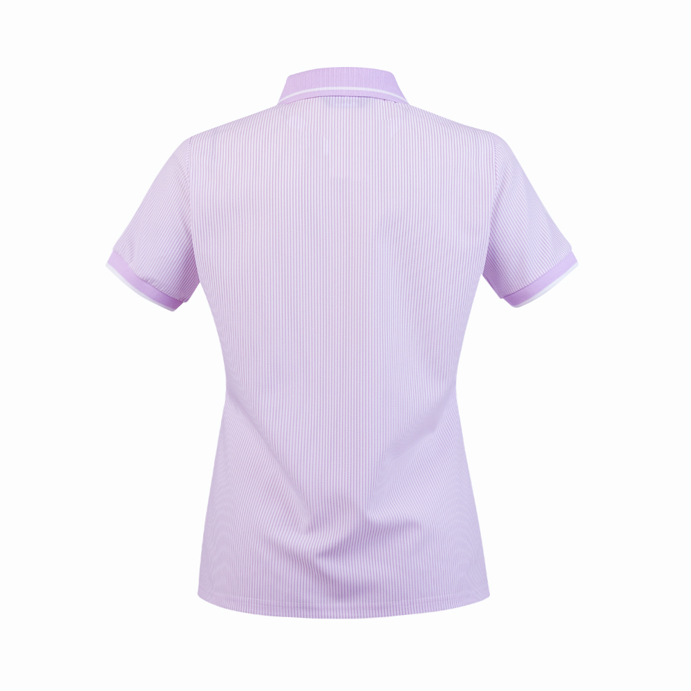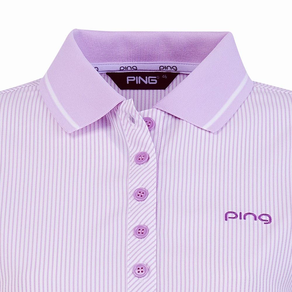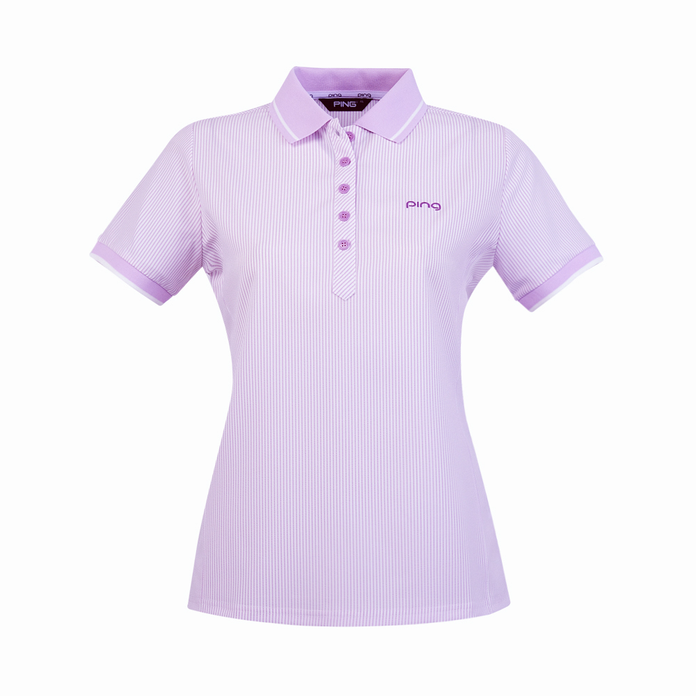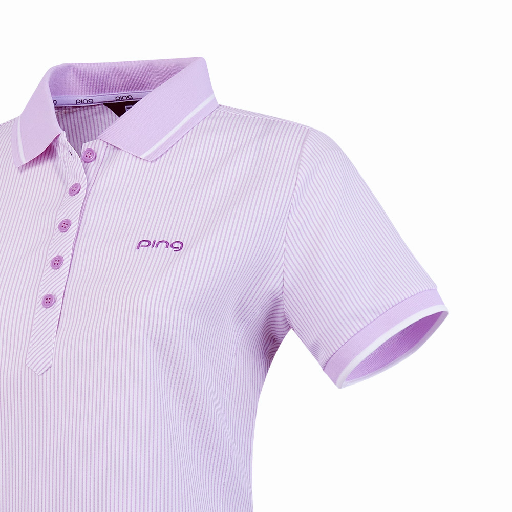 【PING】女款直條紋涼感短袖POLO衫-桃紅 / RA25101-16