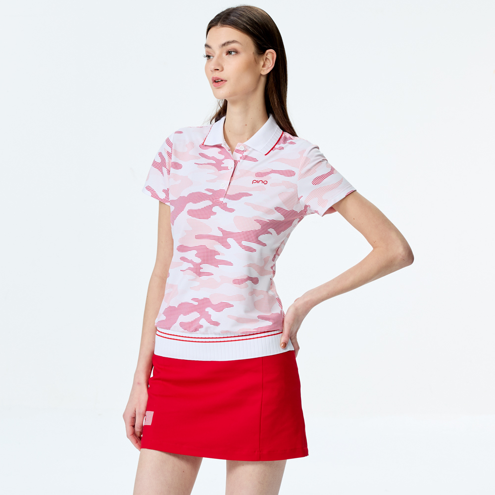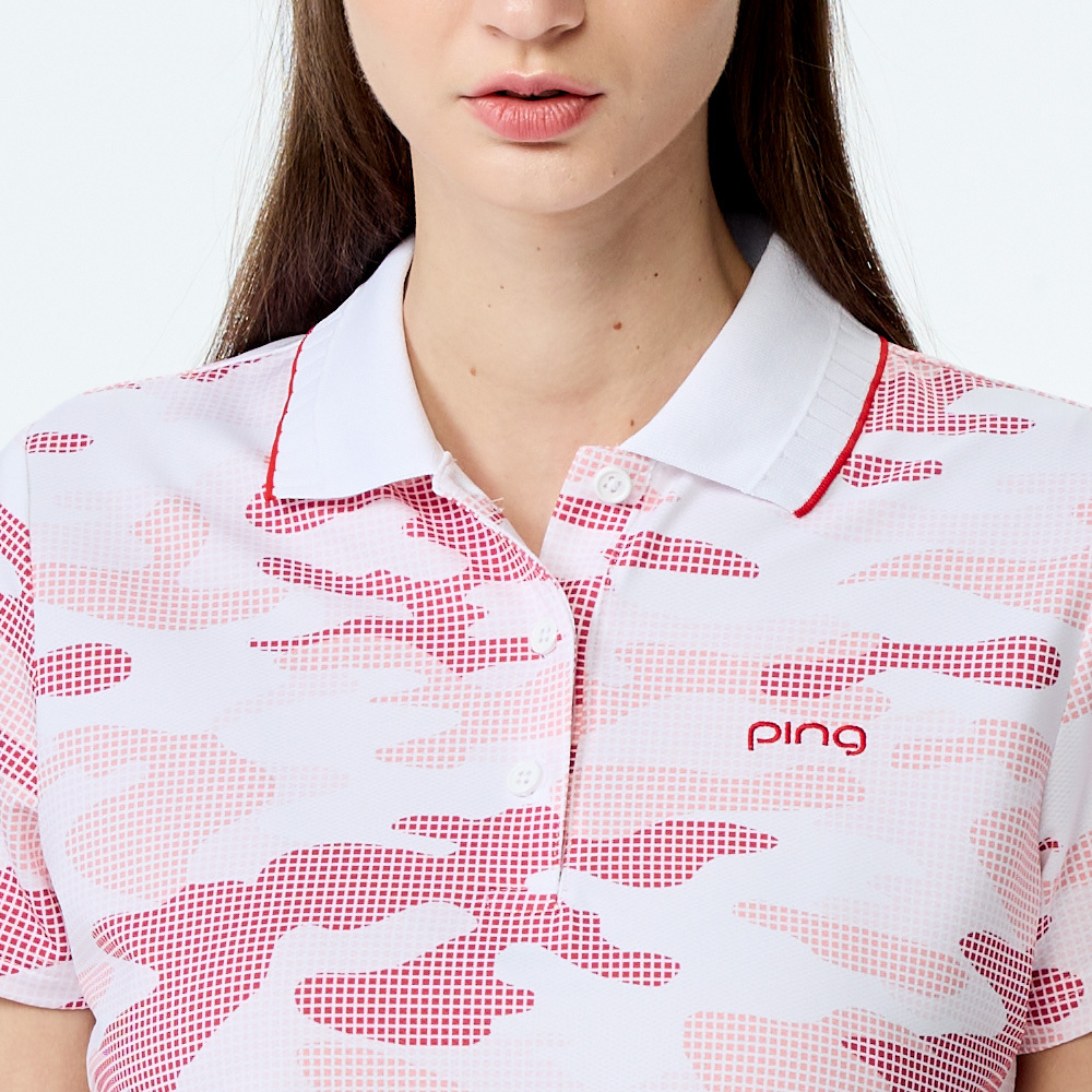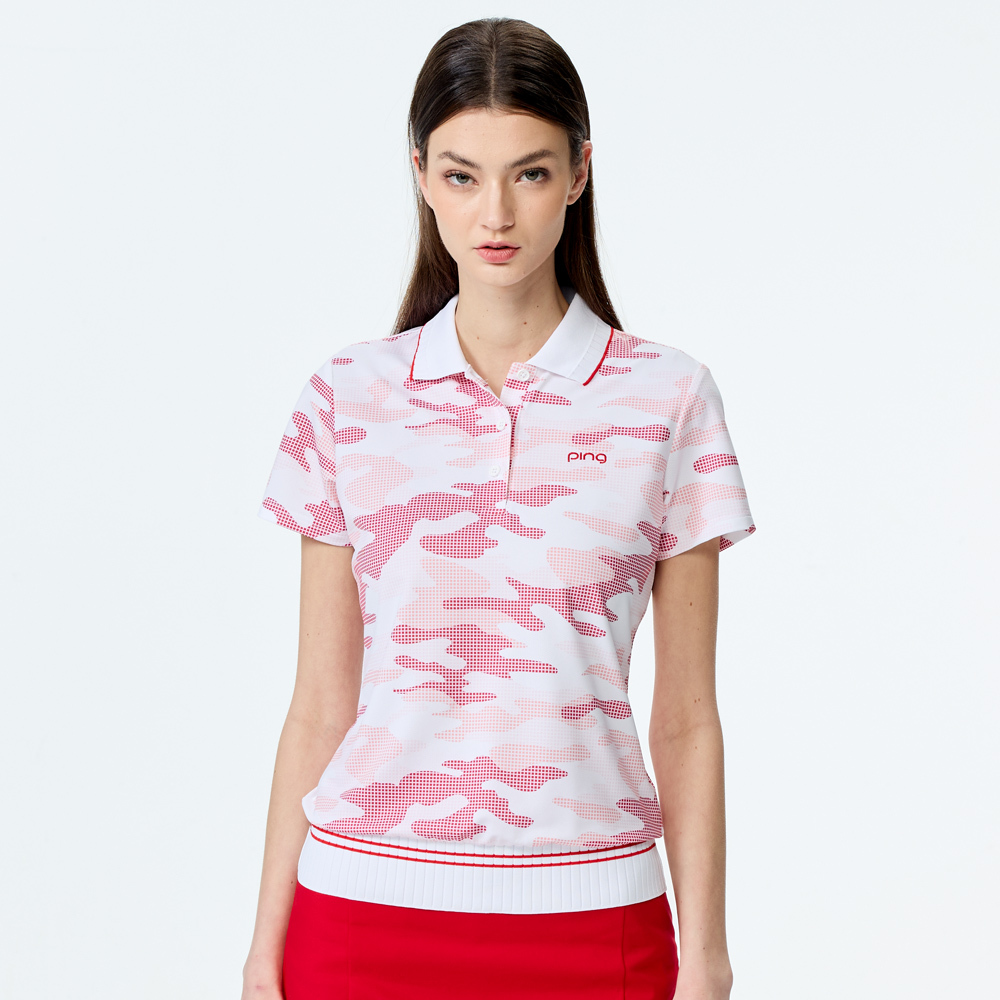 【PING】女款迷彩抗UV高爾夫短袖POLO衫-紅 / RA25105-18