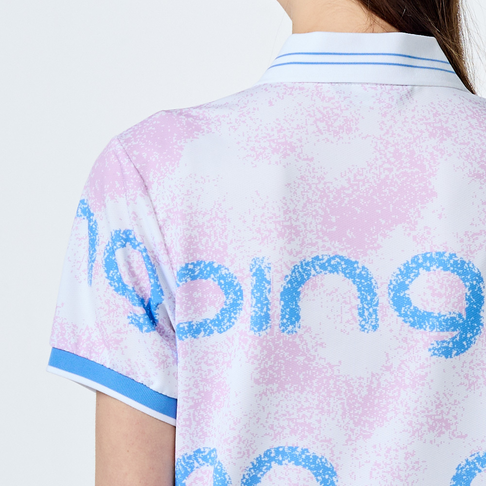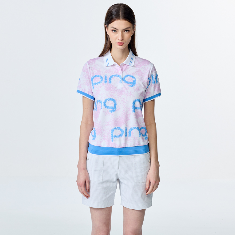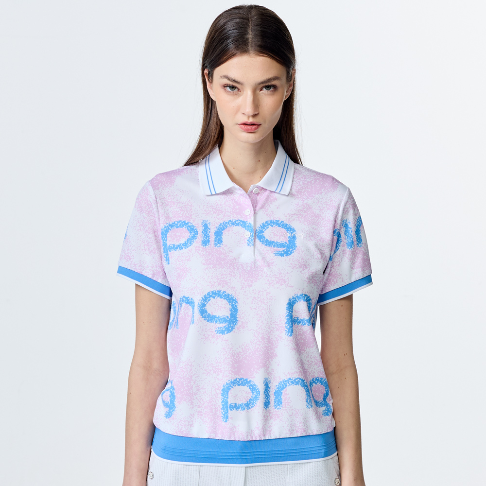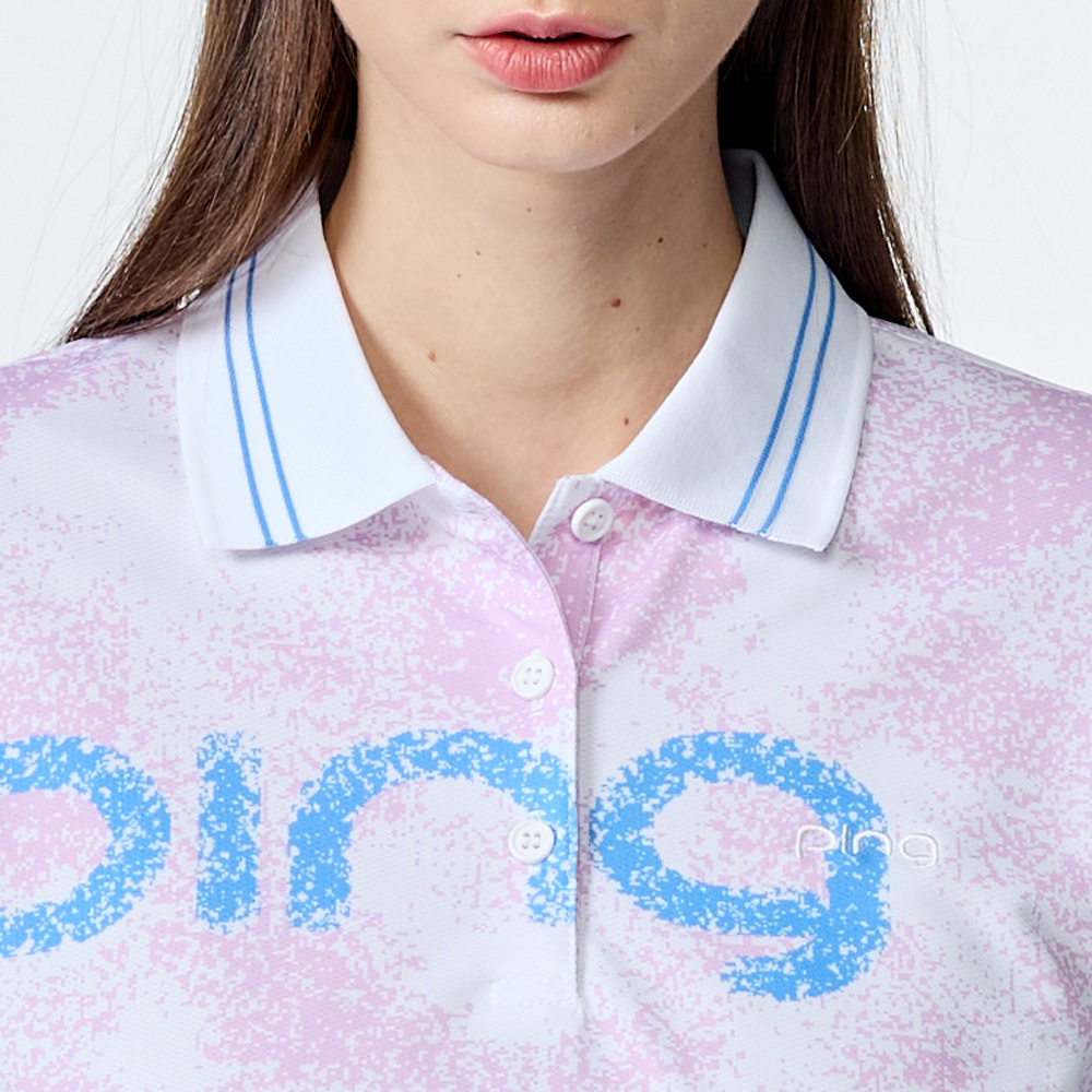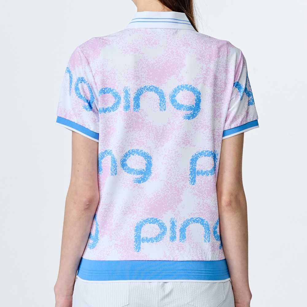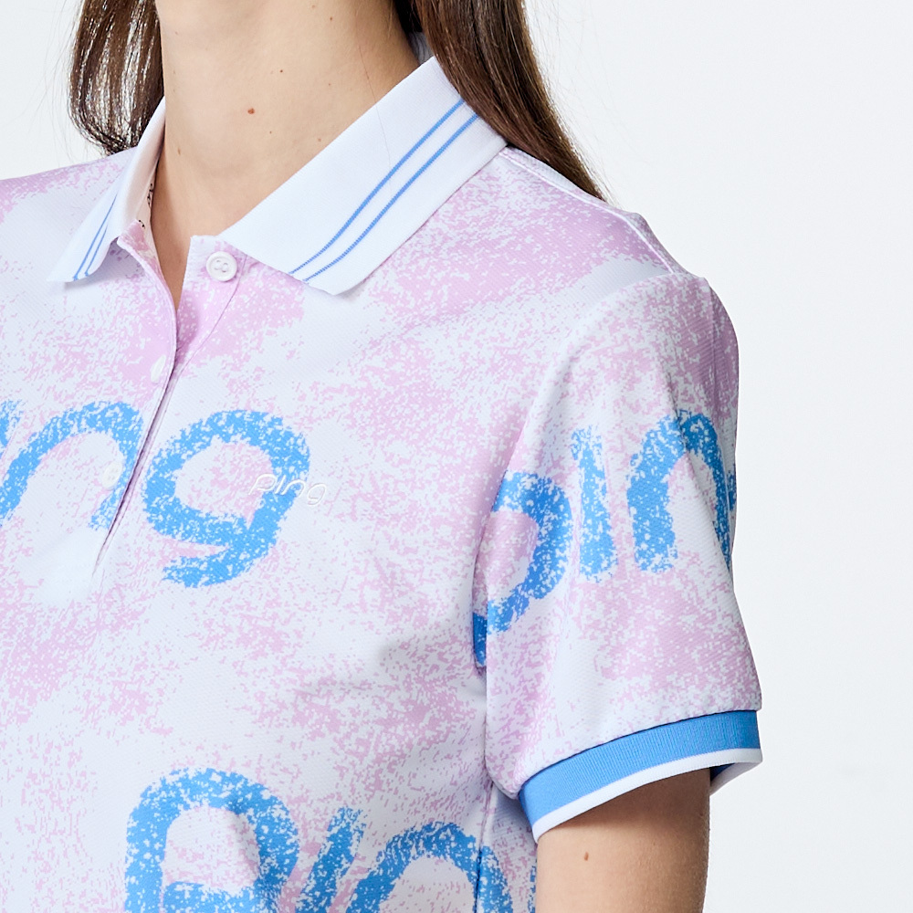 【PING】女款噴砂PING字抗UV短袖POLO衫-粉 / RA25107-15