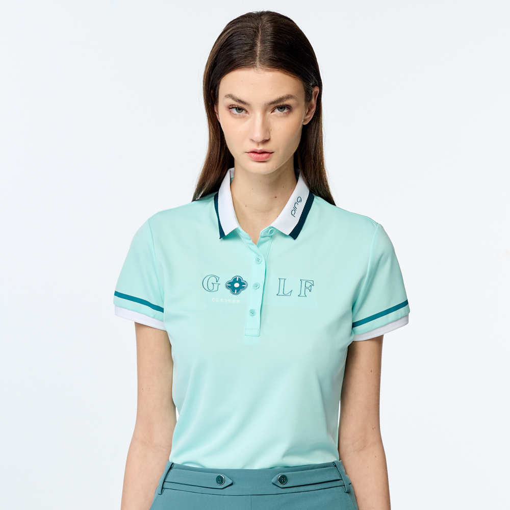 【PING】女款立體花朵抗UV高爾夫短袖POLO衫-綠 / RA25111-45