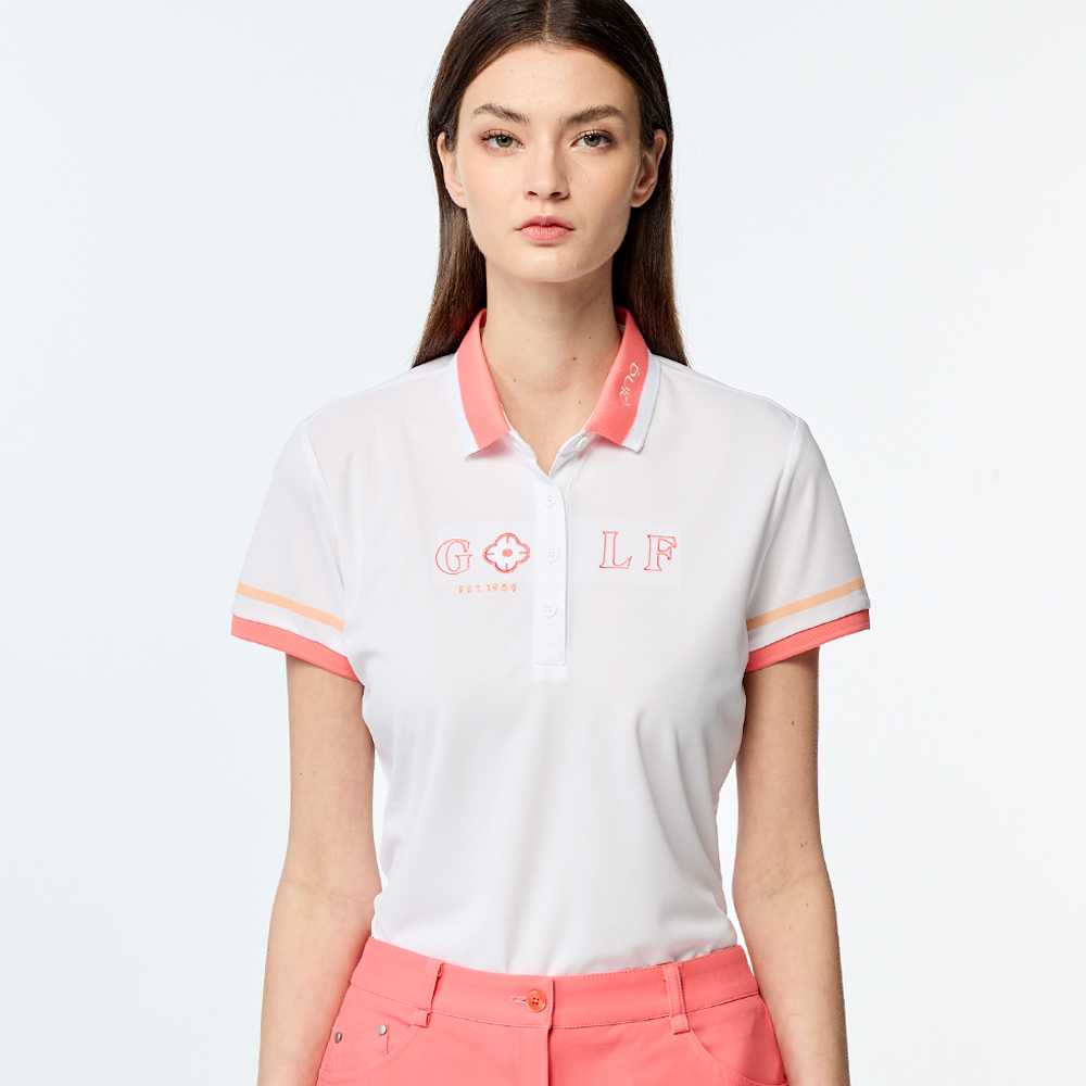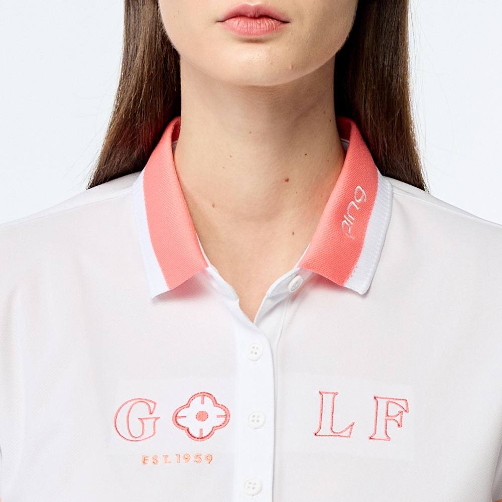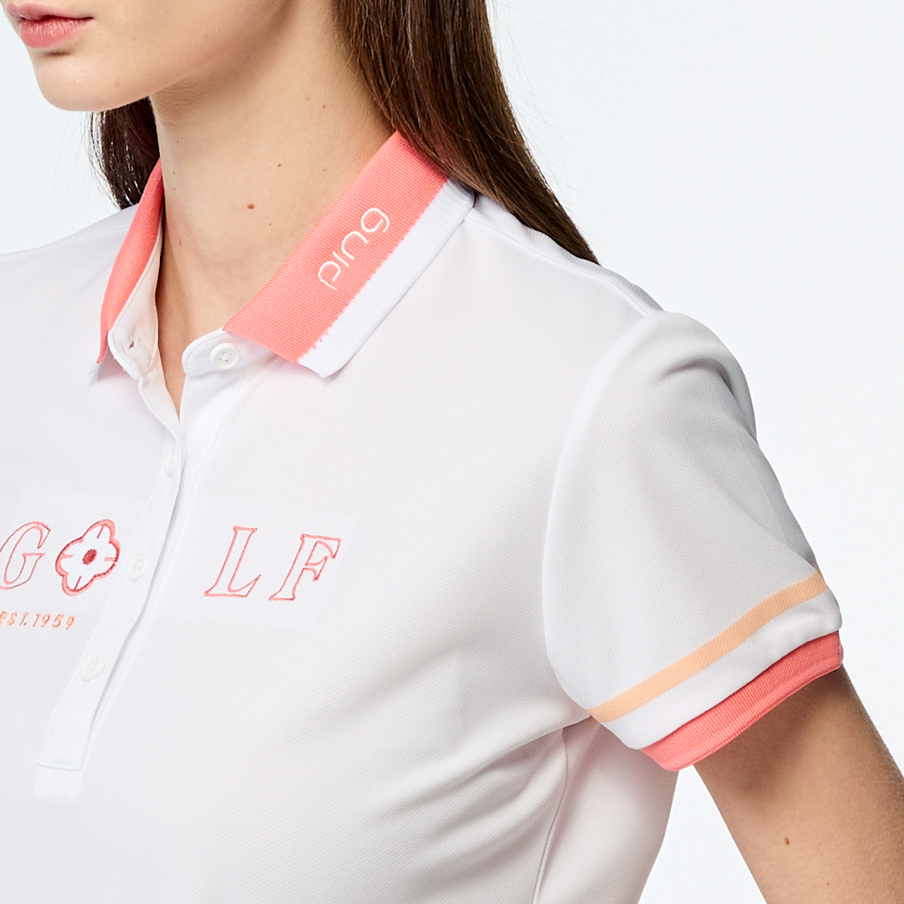 【PING】女款立體花朵抗UV高爾夫短袖POLO衫-白 / RA25111-87