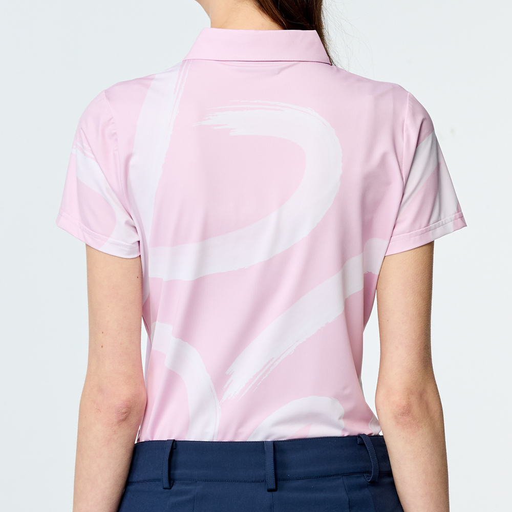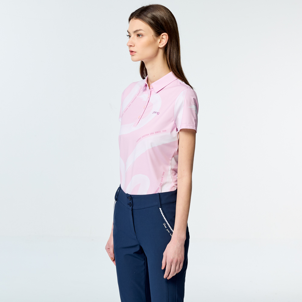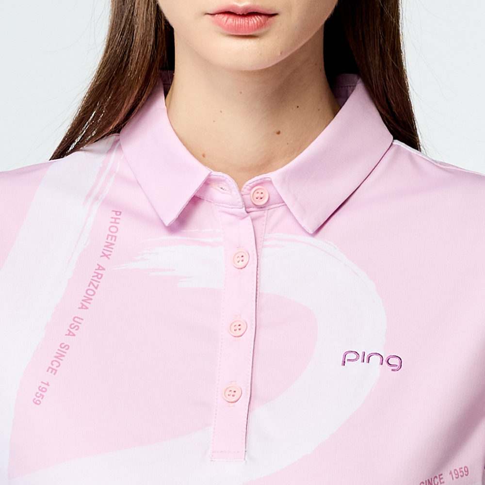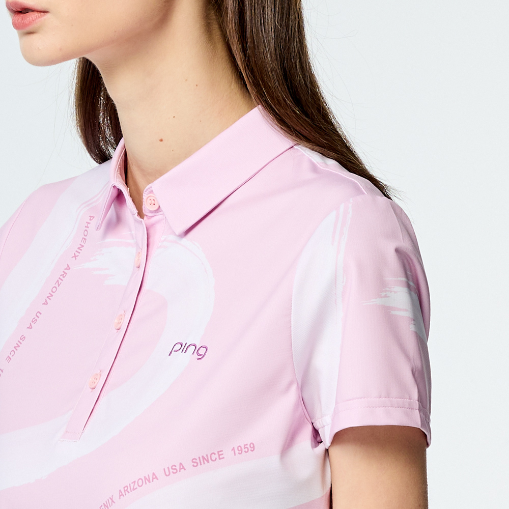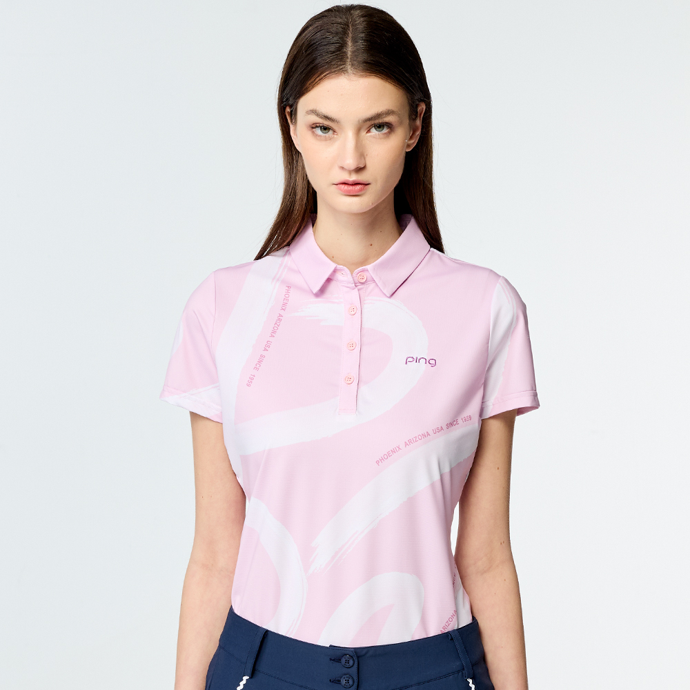 【PING】女款水彩筆刷涼感高爾夫短袖POLO衫-粉紅 / RA25113-13