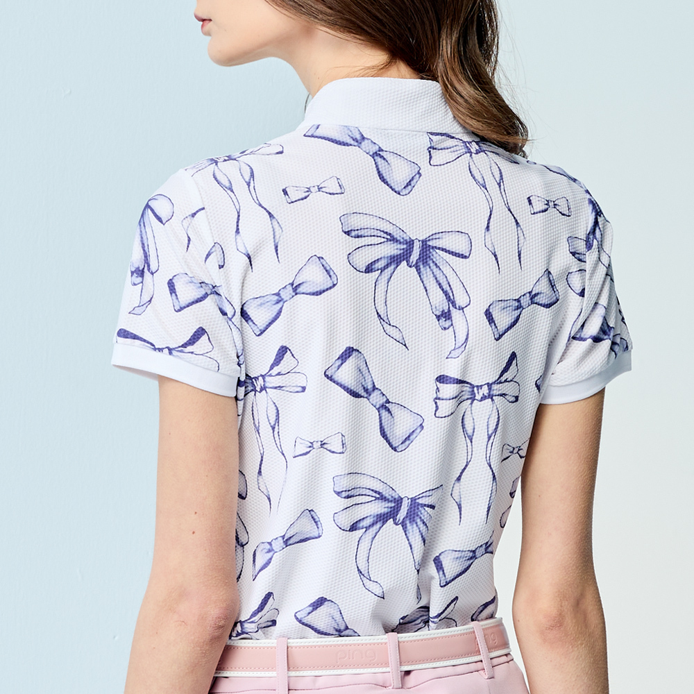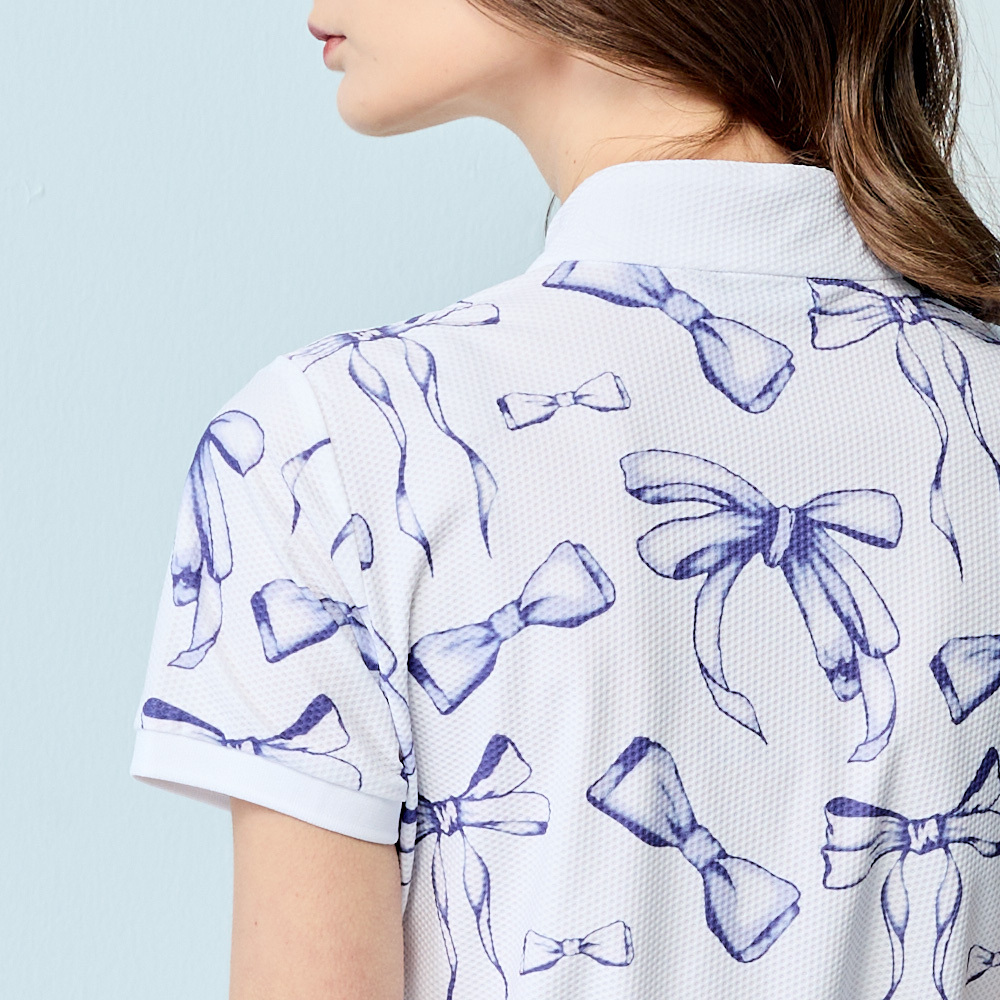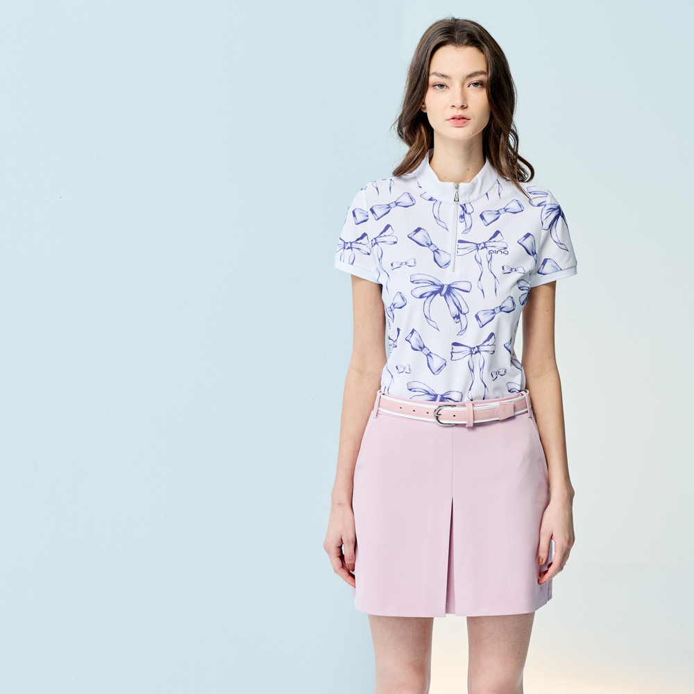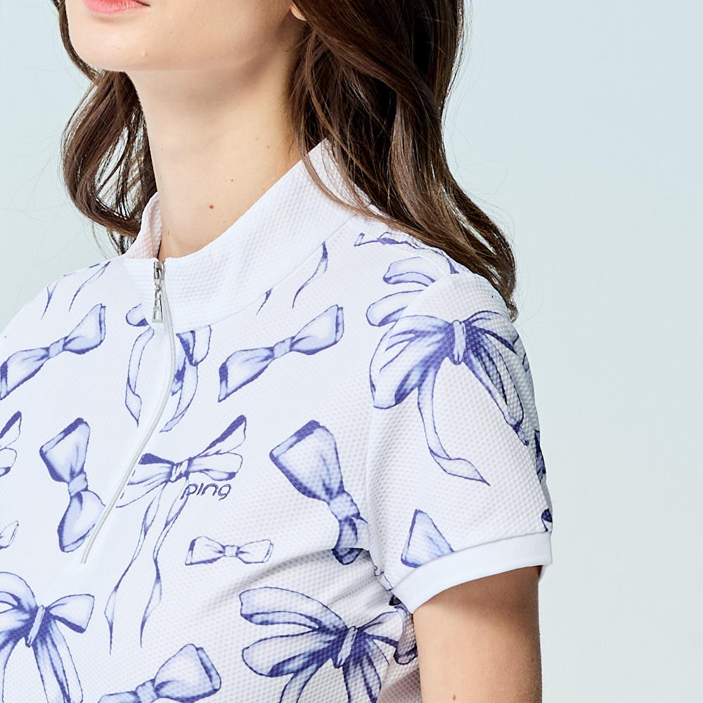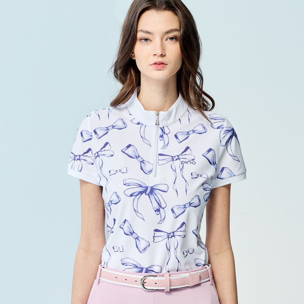 【PING】女款蝴蝶結抗UV高爾夫短袖立領上衣-藍 / RA25117-56